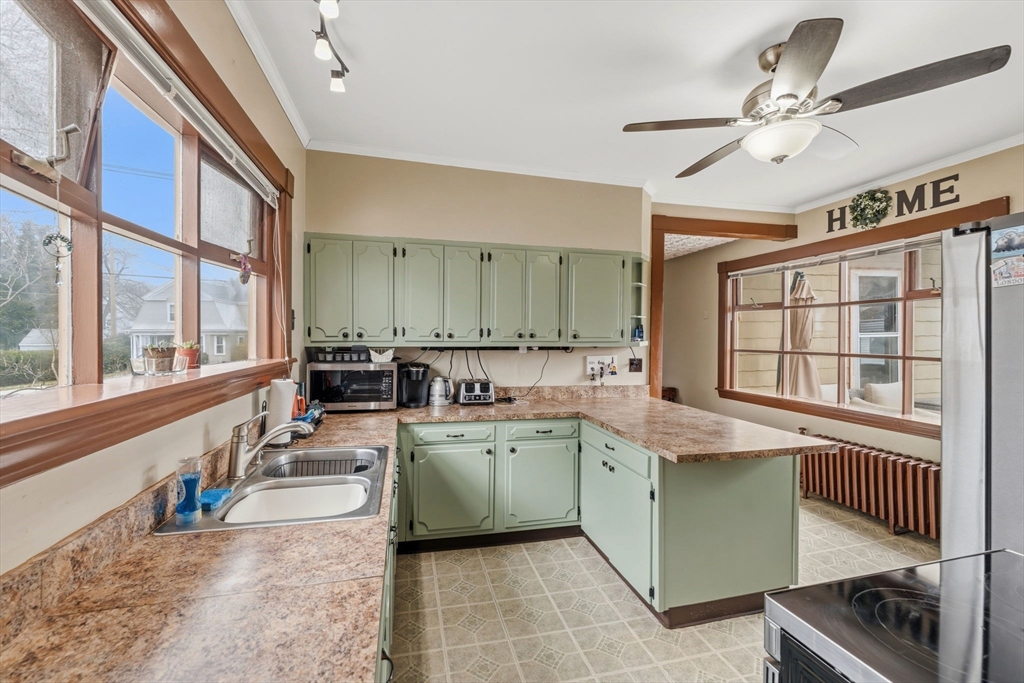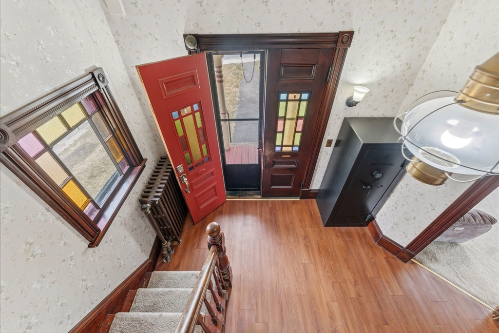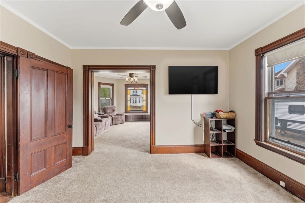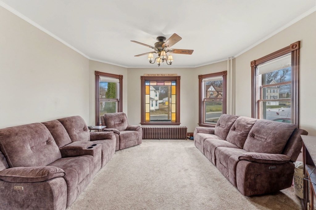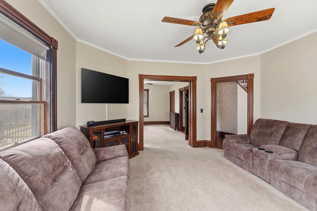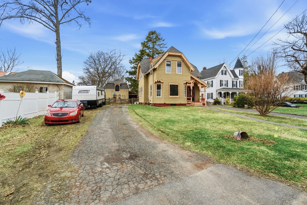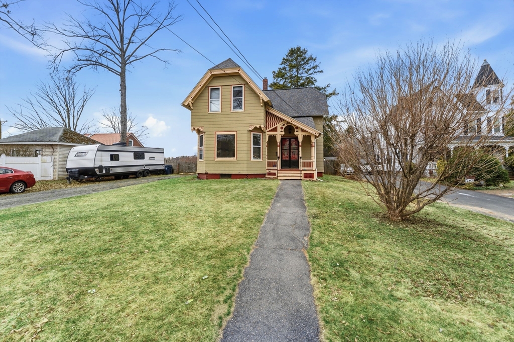 Charming 3 Bed/1.5 Bath Queen Anne (circa 1880) with HUGE 2-story Carriage House on a Spacious Lot! You'll fall in love with the stained glass, custom trim/woodwork, pocket doors in the double parlor AND the many options with the carriage house! Enter in the double front doors into your double parlor (living room & family room) which flows into your large dining room. Your kitchen is in the rear of the home with 2 bay windows. A half bath w/laundry rounds out the 1st floor. Upstairs boasts a large primary bedroom, a good-sized 2nd bedroom, 3rd bedroom w/bonus room & full bath. Your yard is amazing which includes a large deck, backyard and (of course) the 2-story carriage house. Perfect for a possible home business, workshop, storage, convert to a garage for cars/toys OR explore options to make nto an ADU (in-law)! Toss in a newer architectural shingled roof (2019), town water/sewer & natural gas heat and you'll fall in love! Previous buyer's loss is your gain! Don't miss your chance!
