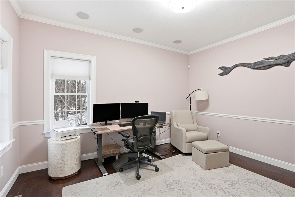 Custom-built Colonial offering four levels of living in a private, retreat-like setting surrounded by beautiful landscaping & hardscaping. A welcoming farmer’s porch leads into a light-filled open floor plan featuring 9-foot ceilings & rich hardwood floors throughout. The gourmet kitchen is equipped with granite countertops, stainless steel appliances including a double-oven range, a large center island & walk in pantry. French doors in the dining area open to an entertainment-sized patio for seamless indoor-outdoor living.The spacious family room features a gas fireplace, while a private home office provides the perfect 1st -floor workspace. Upstairs, the primary suite offers cathedral ceilings, 2 walk-in closets & a spa-like bath complete with a tiled shower & soaking tub. The 3rd level includes a private fourth bedroom with a full bath, ideal for guests, an au pair suite, or an additional office. A finished lower level provides excellent bonus space or a playroom.Showings begin 4/10