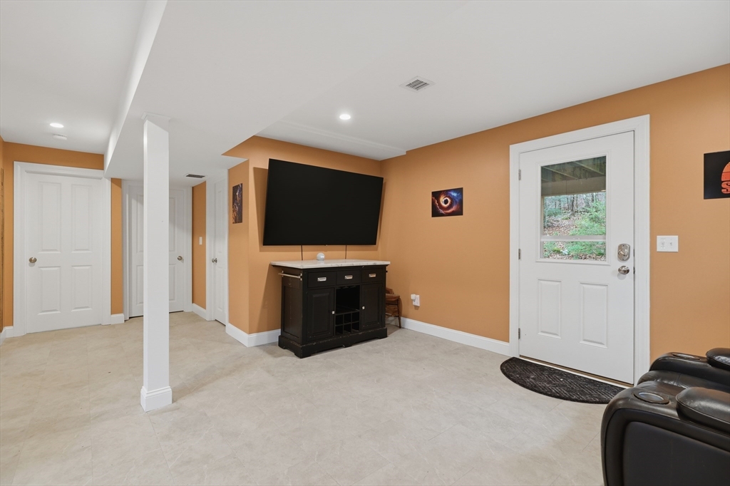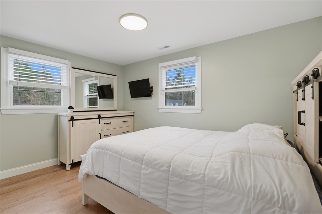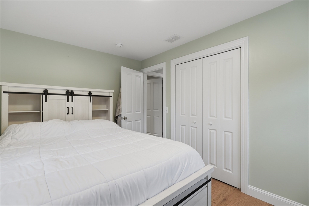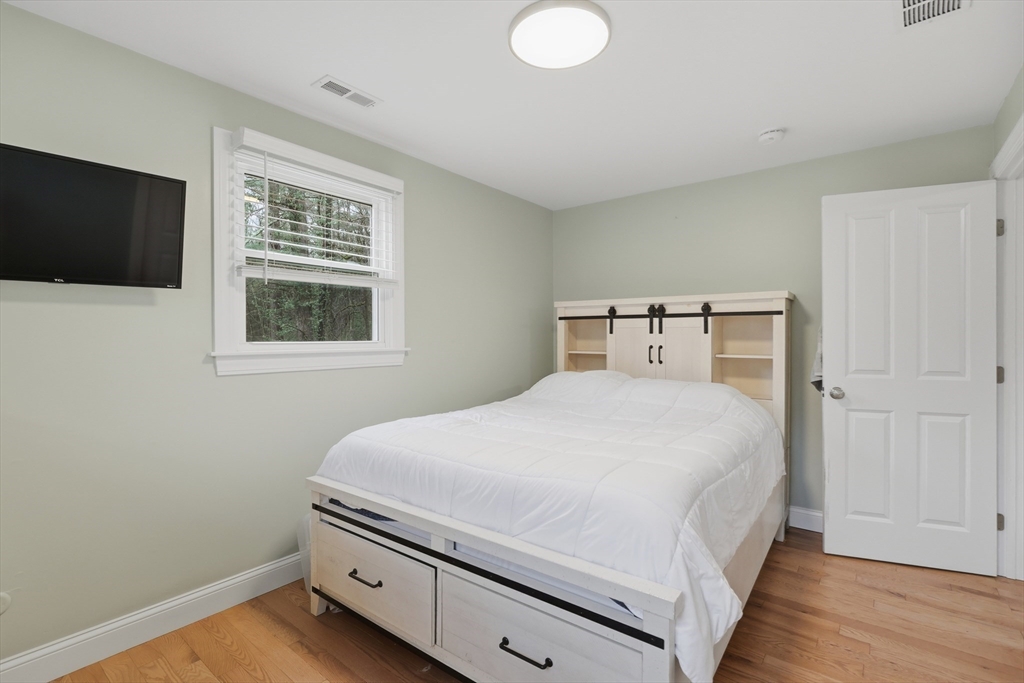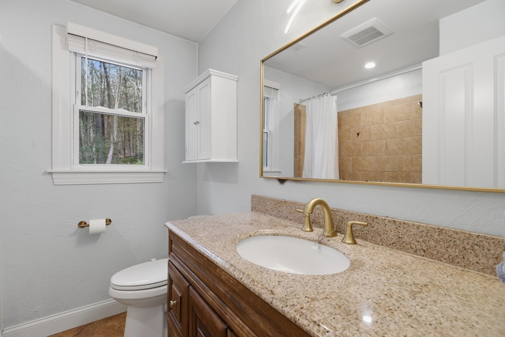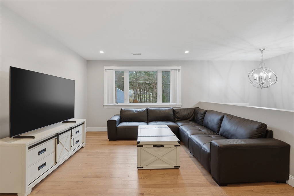 Tucked away on a dead-end street in a highly sought-after Sturbridge neighborhood, this inviting raised ranch offers the perfect blend of comfort & style. The main level features a sleek, open kitchen w/ stainless steel appliances, granite countertops, abundant cabinet space, a center island with pendant lighting and breakfast bar, classic subway tile backsplash, and access to the back deck—ideal for entertaining. A bright living room with hardwood floors and a picture window fills the space with natural light, while three good-sized bedrooms offer ample closet space. The finished lower level expands your living area with a cozy family room complete with a pellet stove and a private home office or fourth bedroom. Outside, enjoy a picturesque setting with a bubbling brook and charming bridge, along with a back deck, storage shed, attached garage, and plenty of off-street parking. New roof (2023), new furnace, water heater, and central A/C (2023), new kitchen (2023), & many more updates.