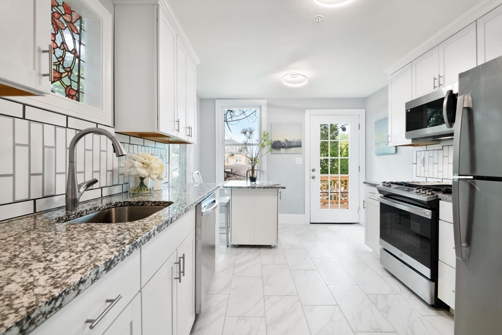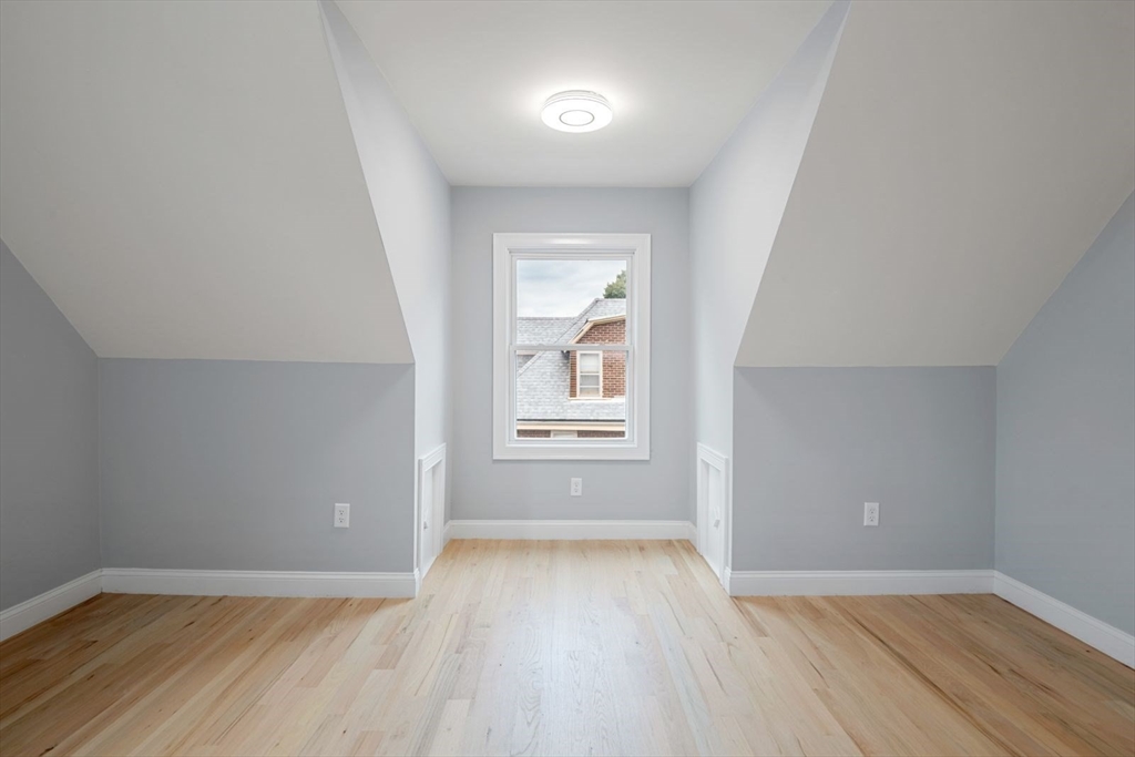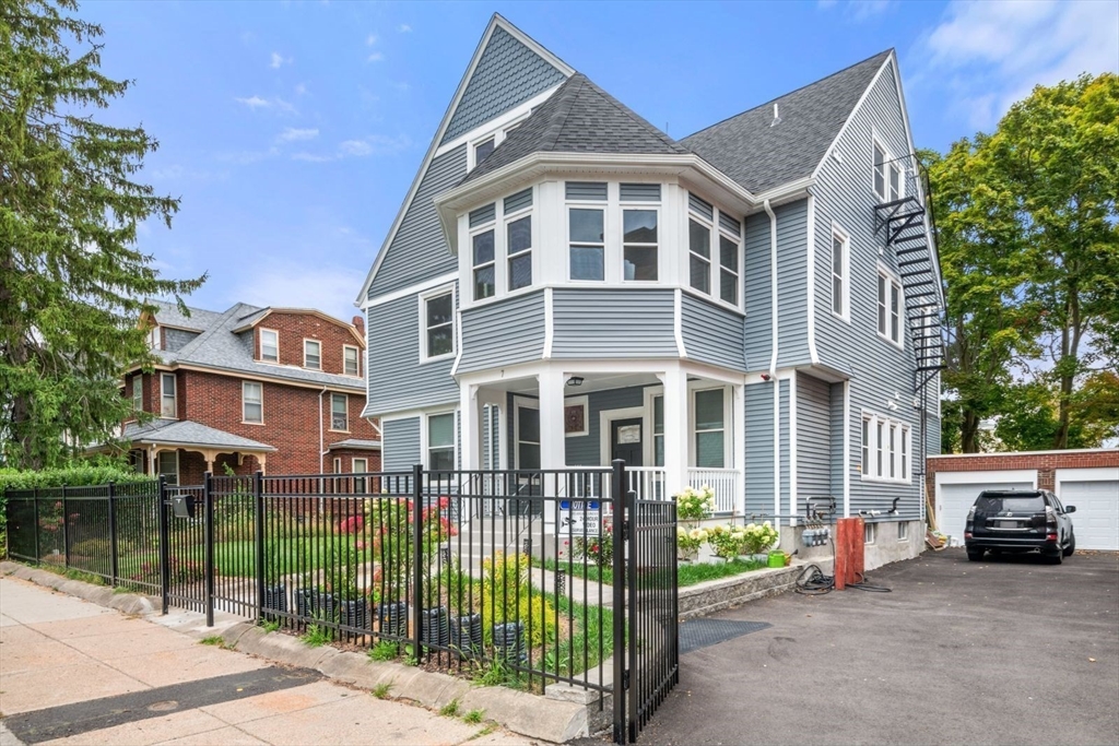 PENTHOUSE DUPLEX in family neighborhood. Tasteful 2025 complete renovation works well for professionals, any growing family and roommates. A thoughtful floor plan ,open concept 3-4-bedroom + home office, 2 full bath home surrounded by landscaped gardens, private walk-out deck primed for piping gas to grill in all seasons. Custom upgrades :intricate woodwork, crown molding, built out cabinetry contemporary kitchen w/ stainless steel/stone, invites dinner parties all 4 seasons. Includes 1 pking and electric charger , as well as new fire alarm system, new electric as well as sewer lines, designed by owner/developer. Additional storage available for 20k, additional basement $100k that come along with this new build in a historical Victorian home. Garage rt $35k left $25k