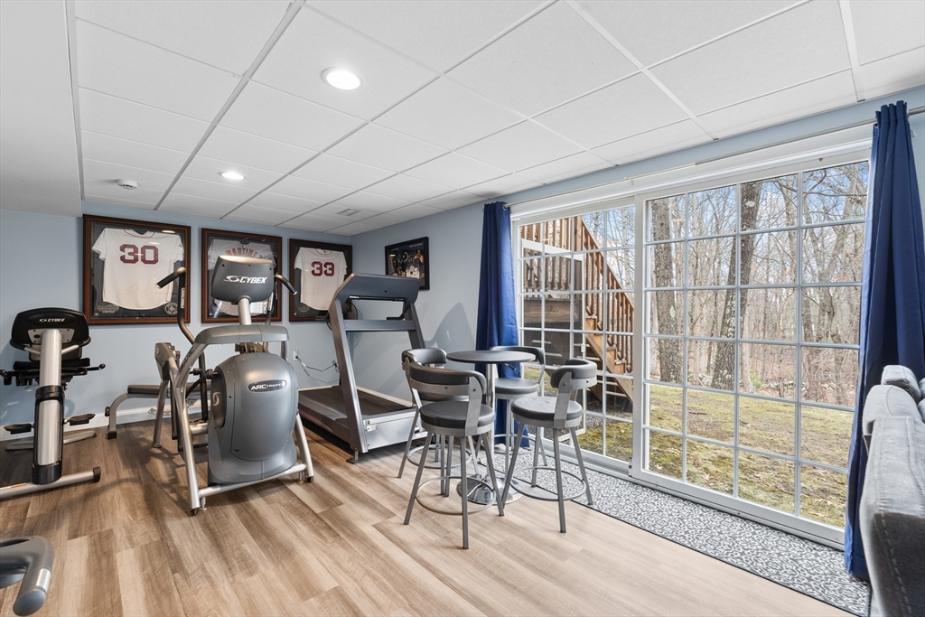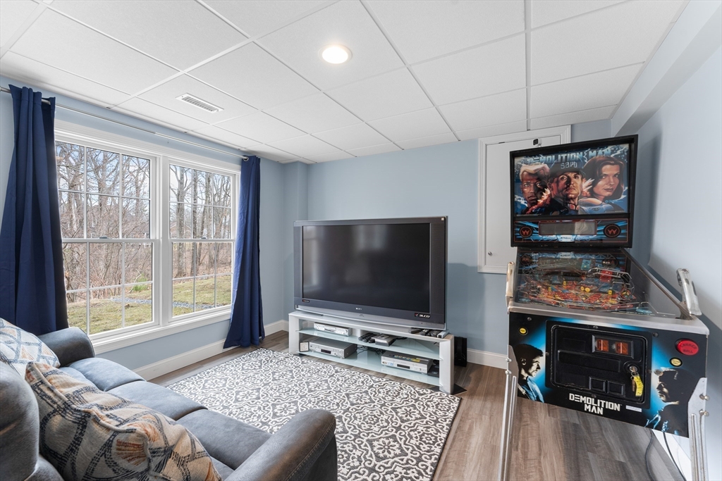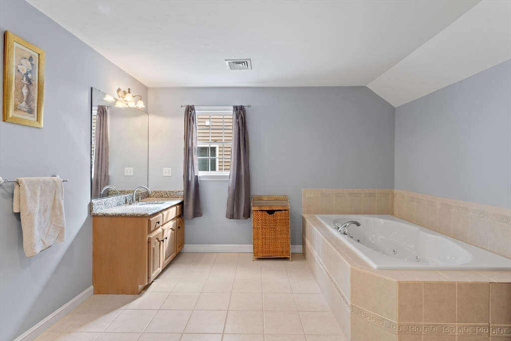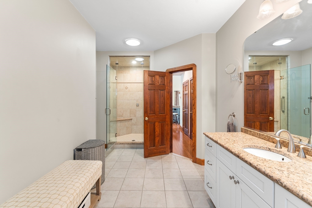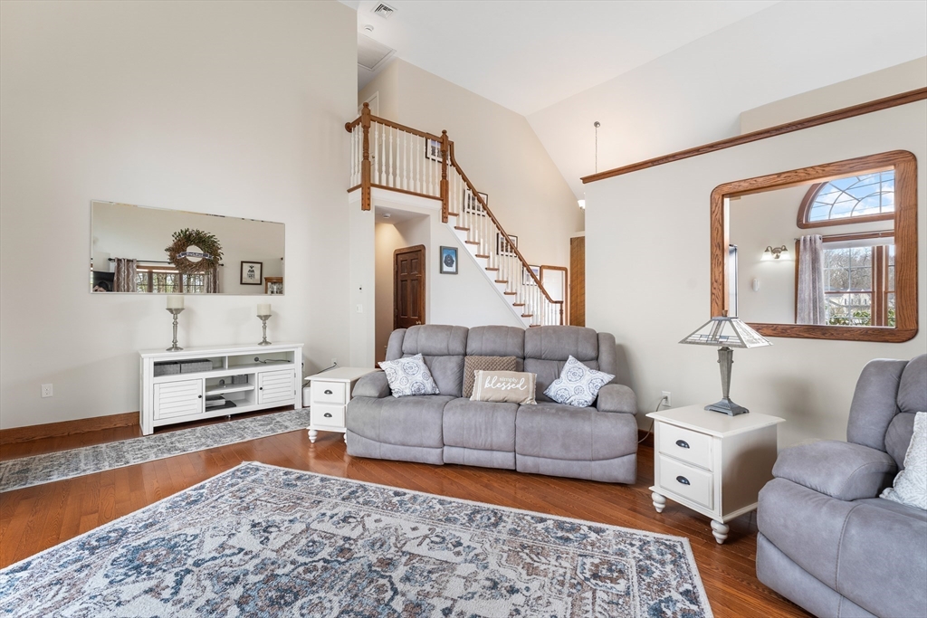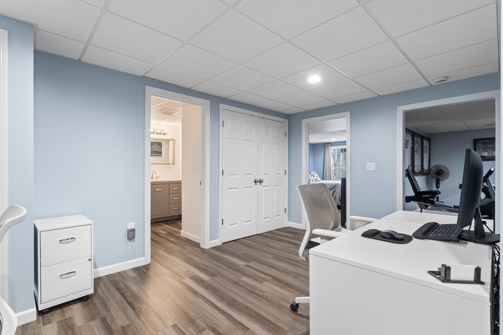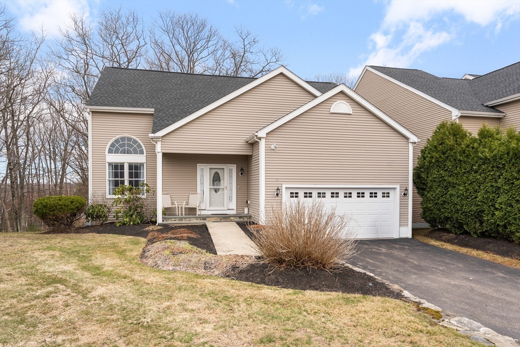 Unique opportunity to own a beautiful detached condominium in highly desirable Granite Woods. This freestanding end unit offers a first-floor primary bedroom with adjacent bath and a stunning tiled steam shower for a spa-like retreat. The 2nd floor features an oversized bedroom with an en-suite bath and relaxing Jacuzzi tub. The recently finished walk-out basement provides excellent additional living space with a family room, home office, three-quarter bath, storage area and potential third bedroom. Two car garage featuring coated floor. Almost 2800 sq ft of living area presents a unique opportunity for single-family living with condominium benefits. Major updates include a new roof (2024) and all new flooring (2023).Enjoy a fantastic location within walking distance to shopping, walking and biking trails, just 2 miles to Route 495 and only 9 miles to the Mass Pike. A rare find offering space, comfort, and convenience—this home must be seen to be truly appreciated.
