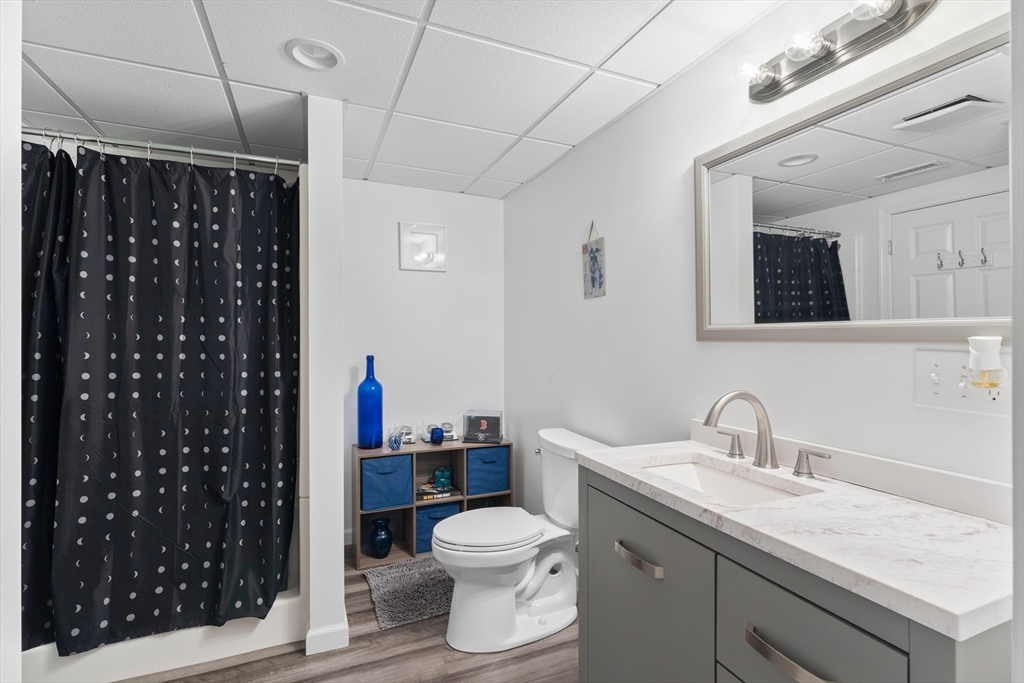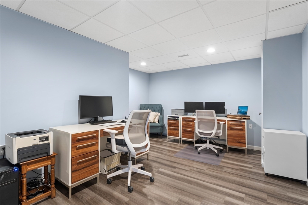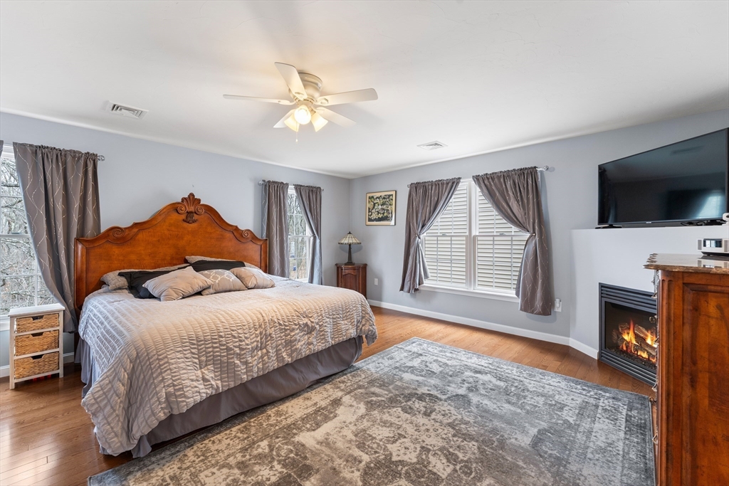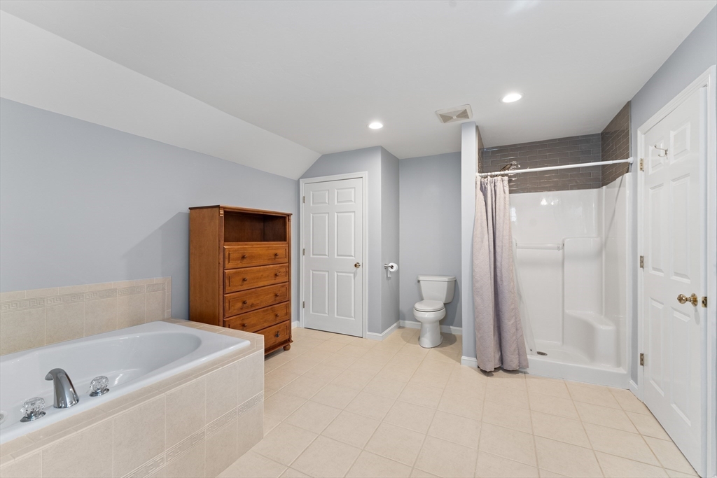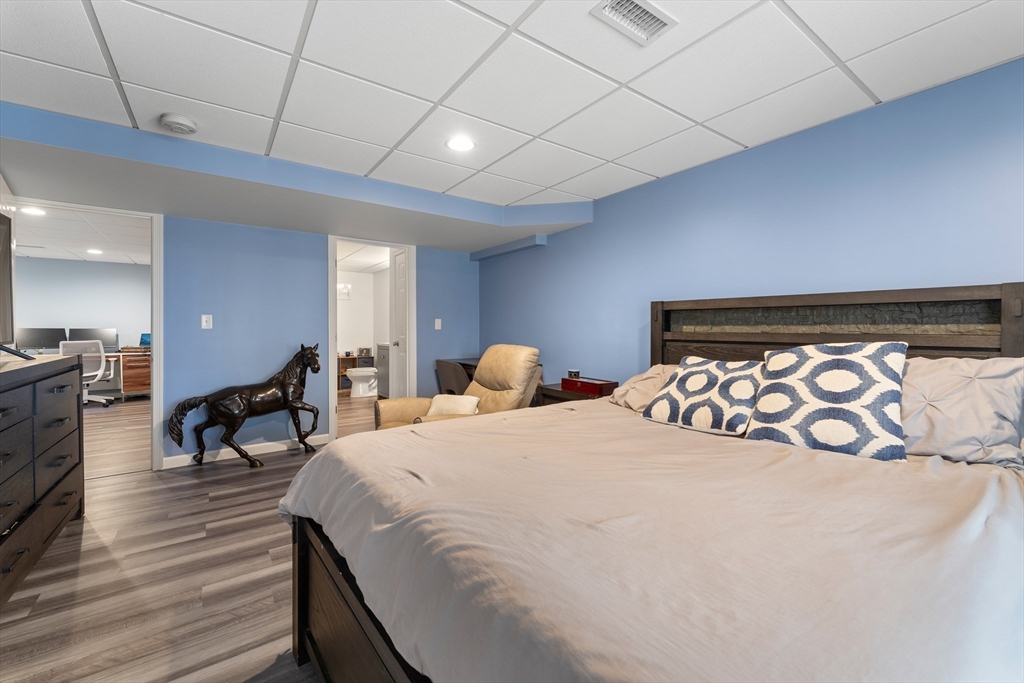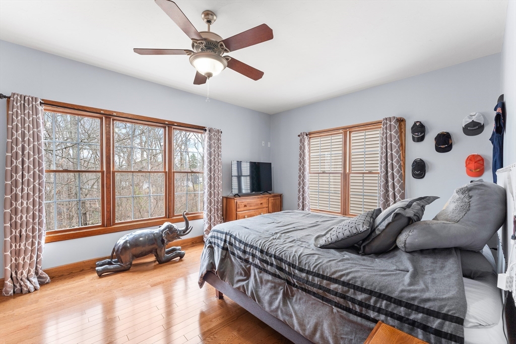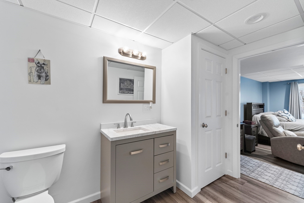 Unique opportunity to own a beautiful detached condominium in highly desirable Granite Woods. This freestanding end unit offers a first-floor primary bedroom with adjacent bath and a stunning tiled steam shower for a spa-like retreat. The 2nd floor features an oversized bedroom with an en-suite bath and relaxing Jacuzzi tub. The recently finished walk-out basement provides excellent additional living space with a family room, home office, three-quarter bath, storage area and potential third bedroom. Two car garage featuring coated floor. Almost 2800 sq ft of living area presents a unique opportunity for single-family living with condominium benefits. Major updates include a new roof (2024) and all new flooring (2023).Enjoy a fantastic location within walking distance to shopping, walking and biking trails, just 2 miles to Route 495 and only 9 miles to the Mass Pike. A rare find offering space, comfort, and convenience—this home must be seen to be truly appreciated.