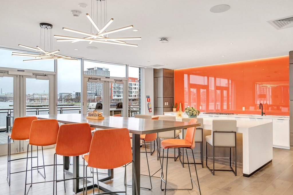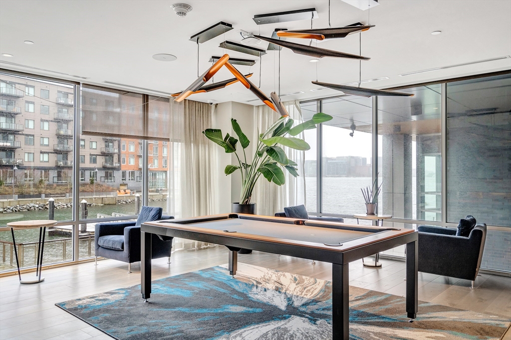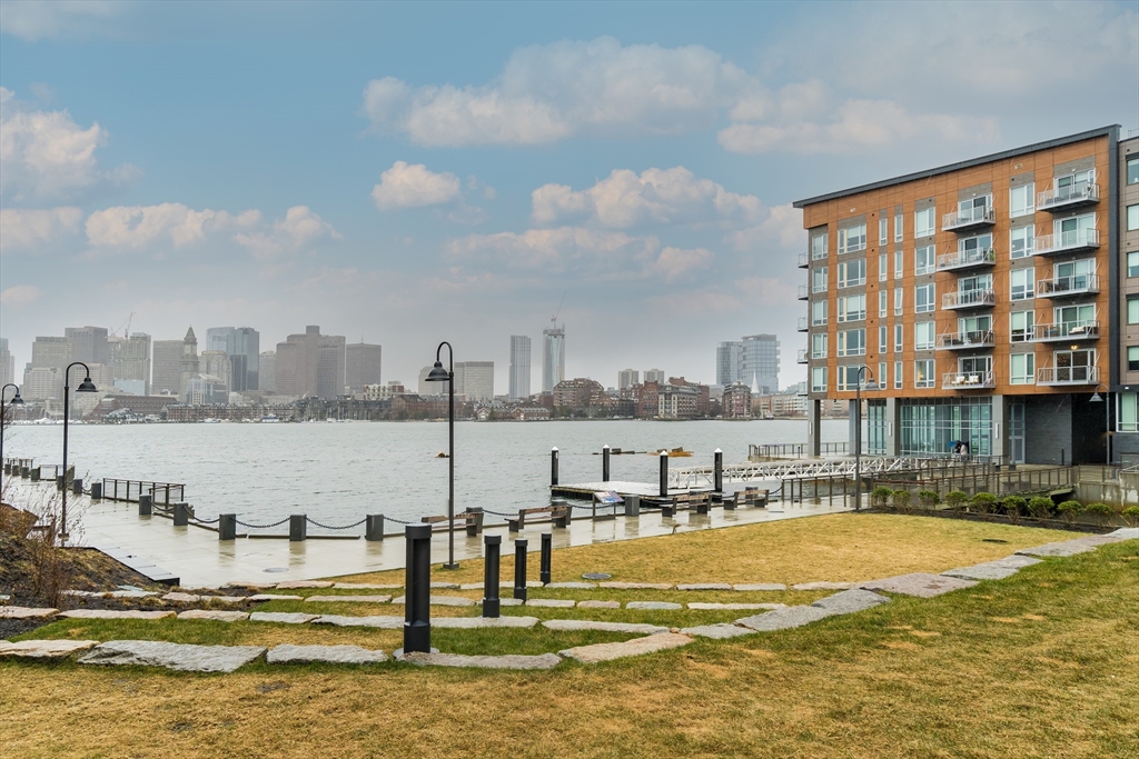 Newer Construction with stunning water views! Slip45! Direct Water views from every room of Boston Harbor & city Skyline! Full service 24/7 concierge Luxury building! This spacious 1BD/1BA features an open concept floor plan, engineered hardwood floors throughout, high gloss cabinetry, a Bosch appliance package, generous closet space. Tons of sunlight through the oversized windows. Large Balcony looking out over the Harbor and Tall Ship! Building amenities include a fitness center, club room w/ billiard room & shuffleboard, several lounges, lobby w/24-hour concierge, outdoor grill area, dog park, and on-site bike storage and zip car. 2 minutes to the T and 1 stop to Aquarium. Be in the North end in 6 minutes! East Boston Greenway great for biking & jogging is steps away along with Reelhouse restaurant, Piers Park, ICA Annex, The Shipyard with DownEast Cider all an easy walk.
