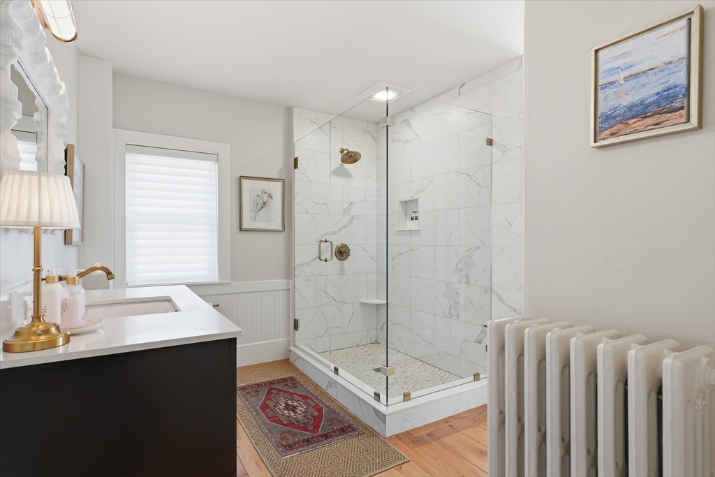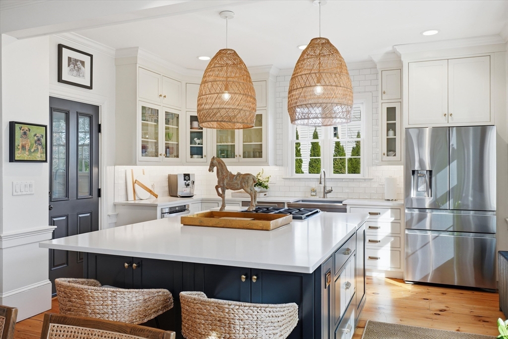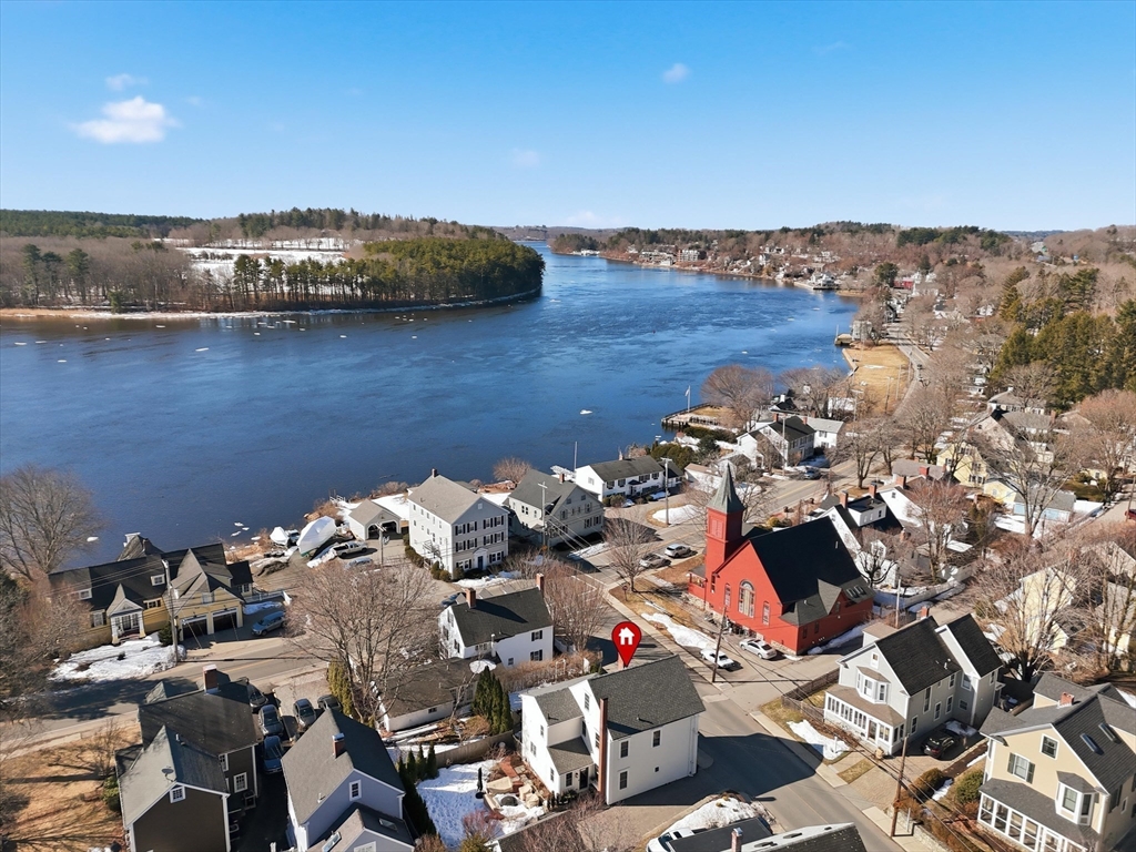 An elegant Greek Revival residence circa 1850, thoughtfully & completely renovated to blend historic charm w modern sophistication. This 3 bdrm home showcases exquisite period details, including wide pine floors, original moldings, & soaring ceilings, creating a timeless & dramatic living environment. At the heart of the home is a stunning chef’s kitchen, designed for both beauty & function, premier appliances, custom cabinetry & and expansive island perfect for entertaining. The gracious living rm offers a wood burning fireplace. Enjoy a seamless connection to the outdoors w a delightful 3-seasoned porch, offering serene seasonal views of the Merrimack River. Prof landscaped grounds provide a private retreat, complete with an intimate patio, elegant pergola, & an irrigation system. Located just steps from Alliance Park, a luxury marina and restaurant, the Lowell Boat Shop and minutes from downtown Newburyport. A rare offering where historic elegance meets modern luxury.