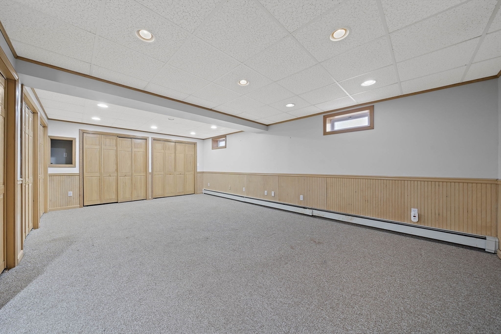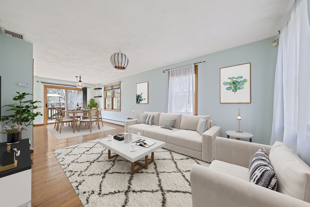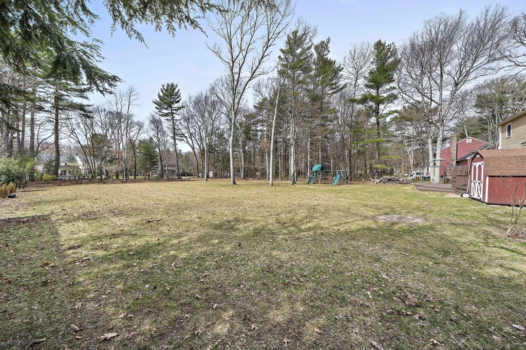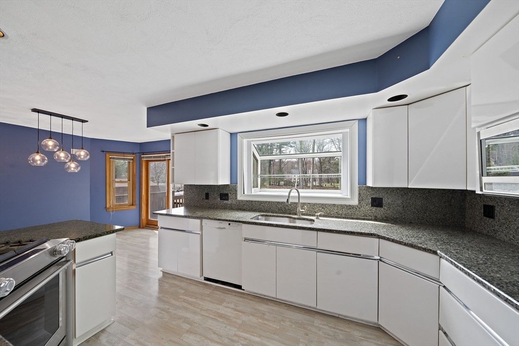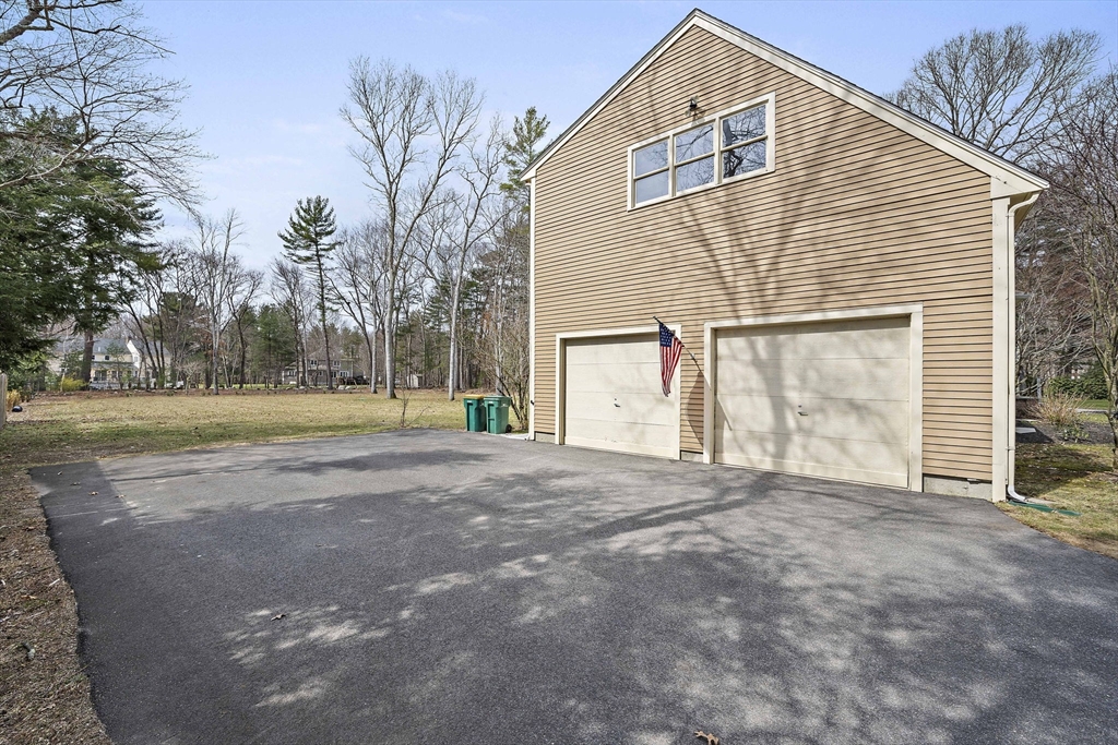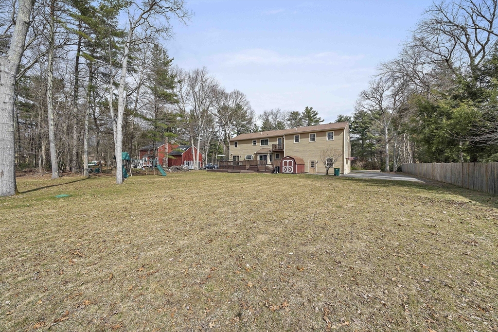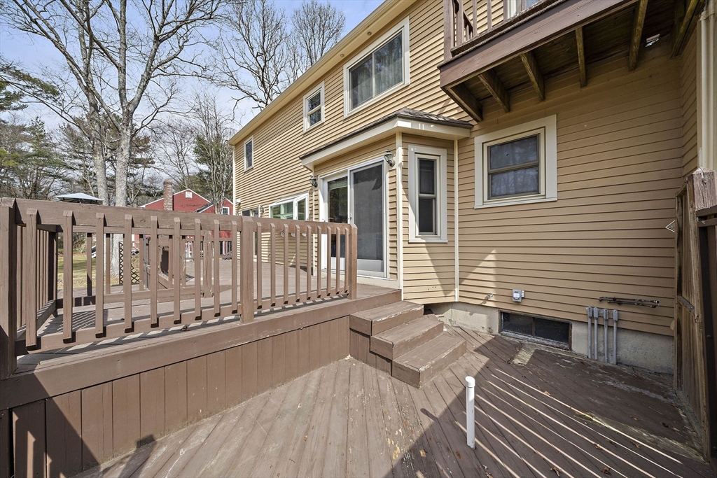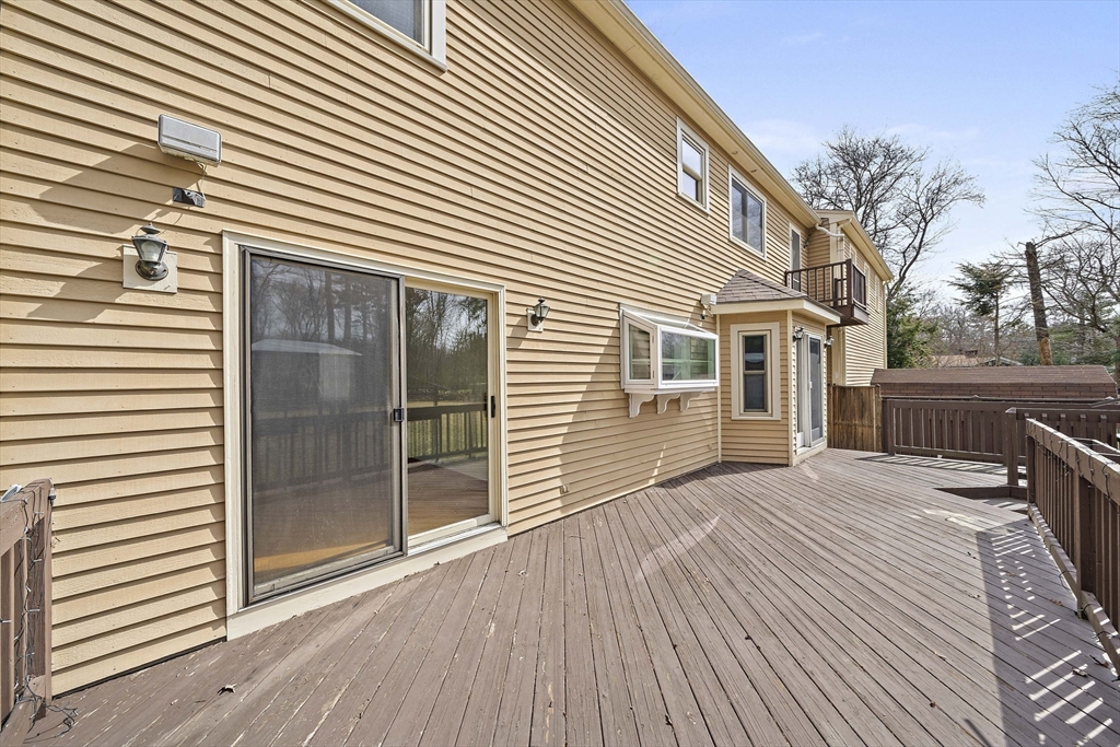 Tucked away in a desirable cul-de-sac neighborhood, this custom cape offers the perfect blend of charm and space on a gorgeous level lot just shy of an acre. Featuring 8 rms, 3 bedrooms and 2.5 baths, this home includes an inviting open foyer, abundant natural light and a comfortable layout. The kitchen offers a center island, granite countertops, stainless steel appliances and a dining area with sliders to a deck overlooking the expansive yard. The family rm features a beautiful fireplace. The living room/dining room area are perfect for all your entertaining. The primary suite includes skylights, a Juliet balcony and a bath with jacuzzi tub and shower. Two additional spacious bedrooms and finished basement provide flexible living space. The oversized 2 car garage with an unfinished room above is great for the hobbyist or future expansion. A short distance to the T and major routes for easy commuting. Don't miss your chance to own this exceptional property!