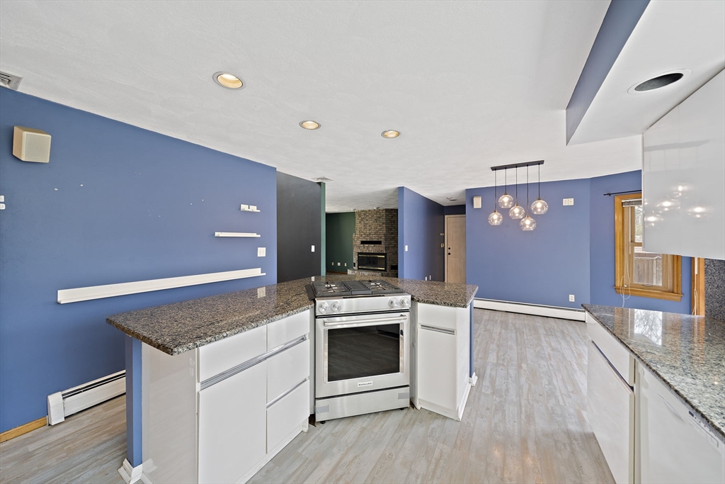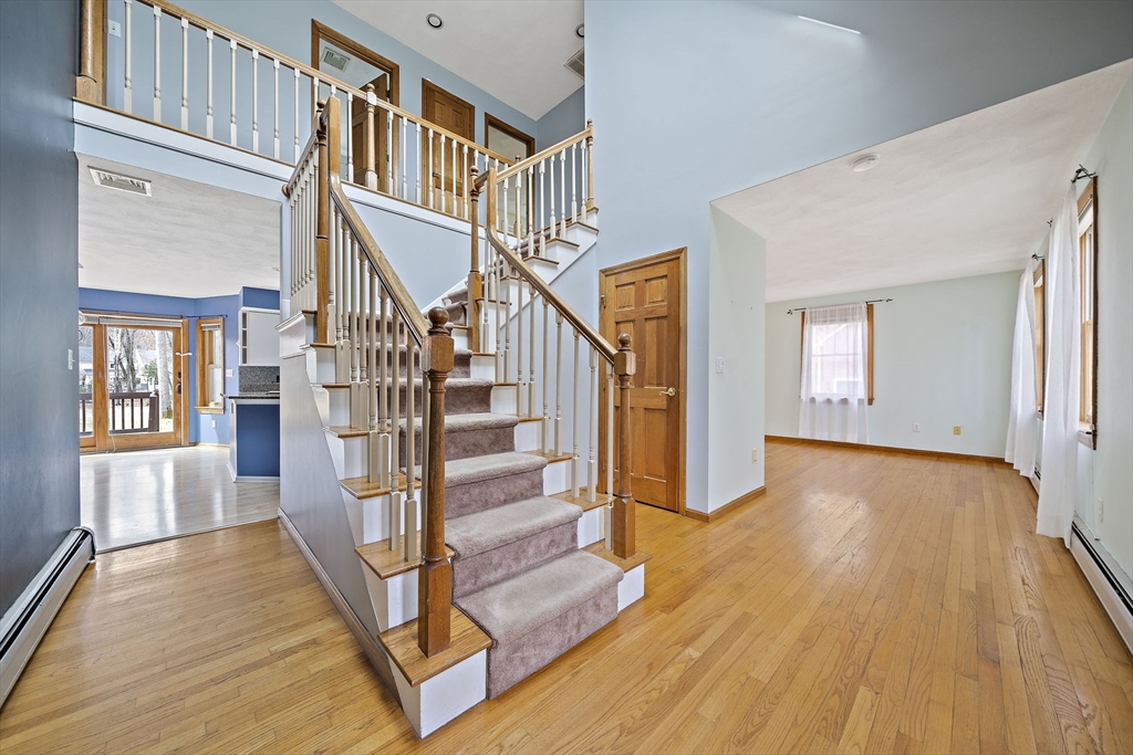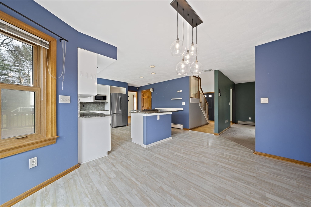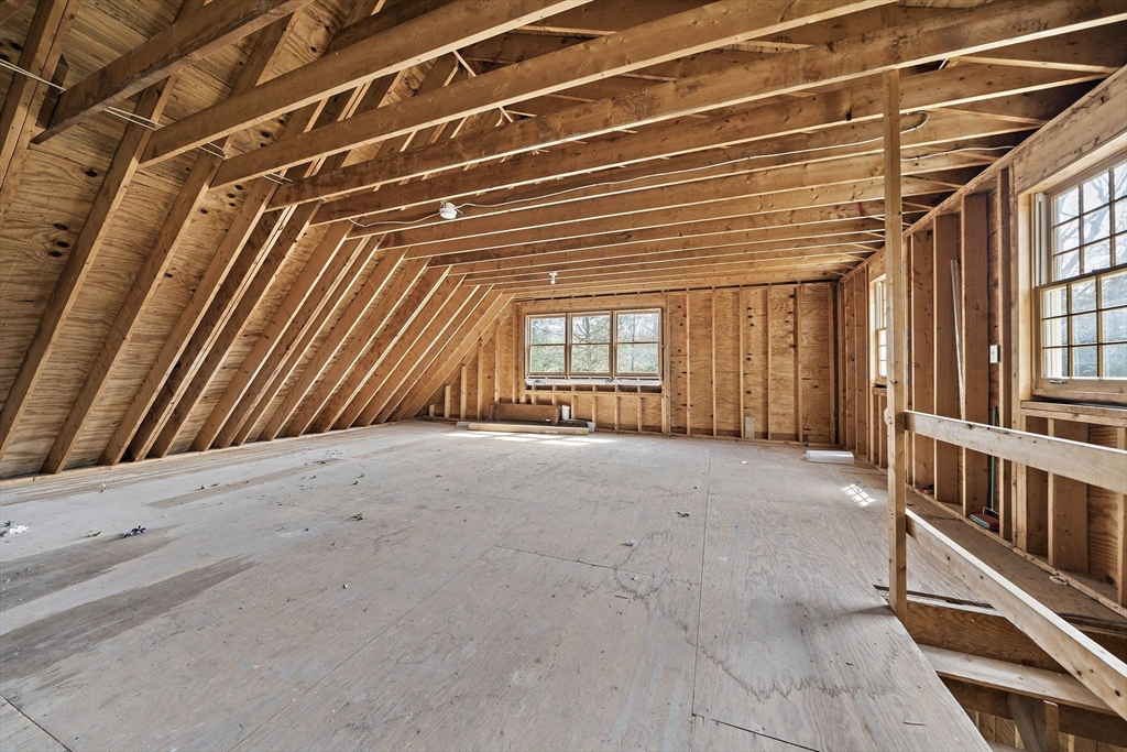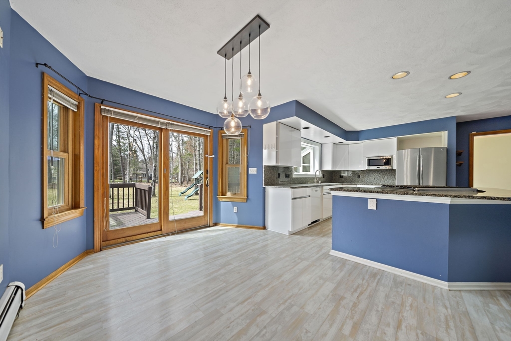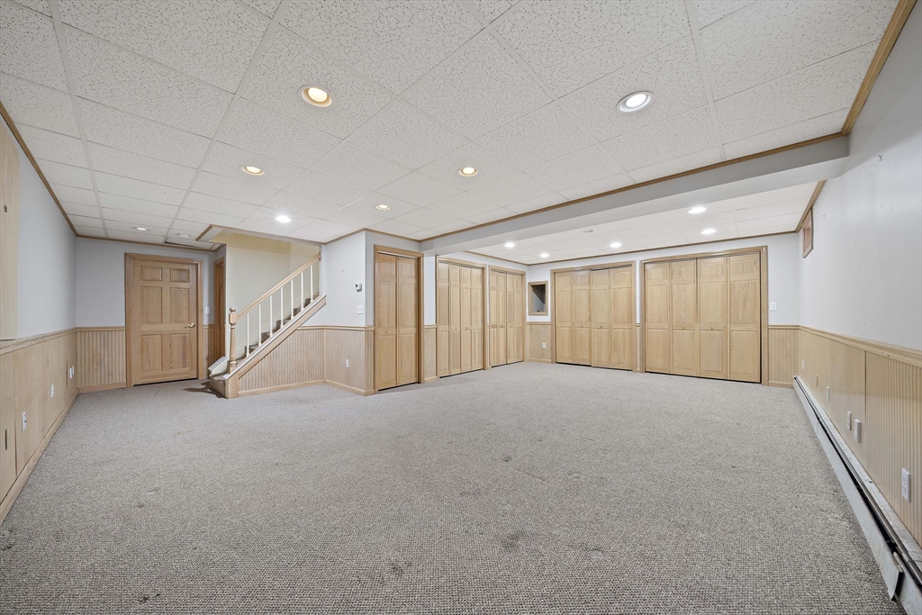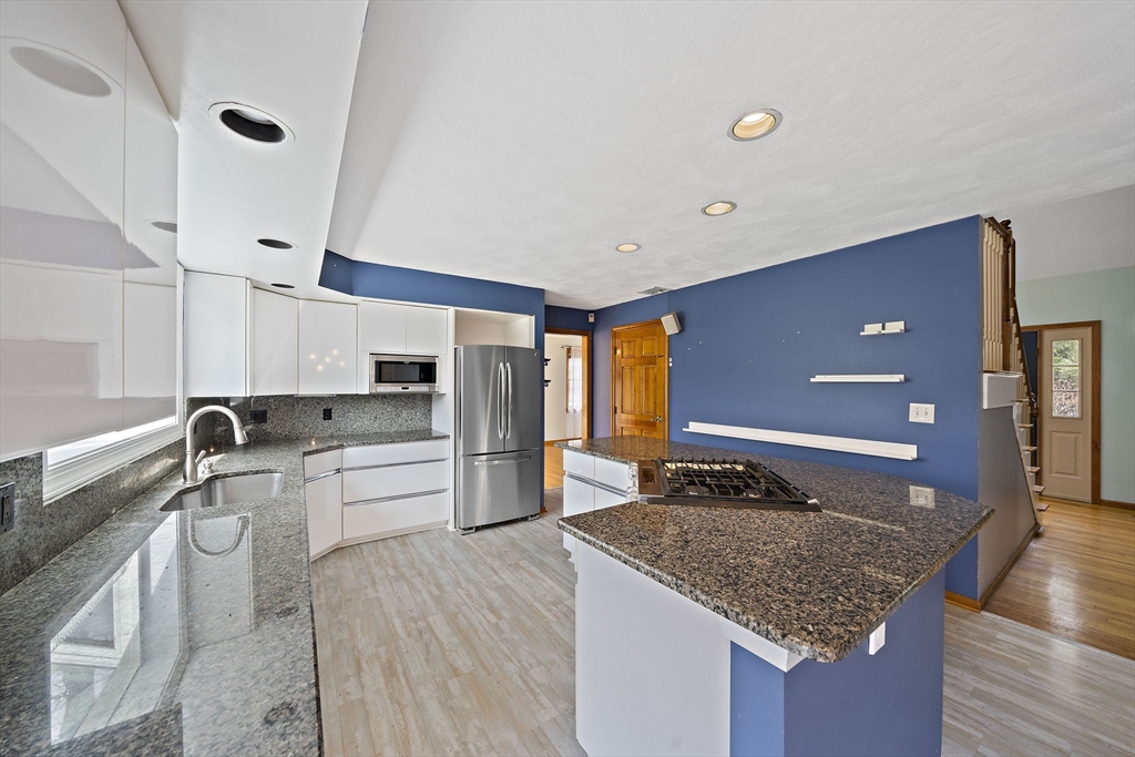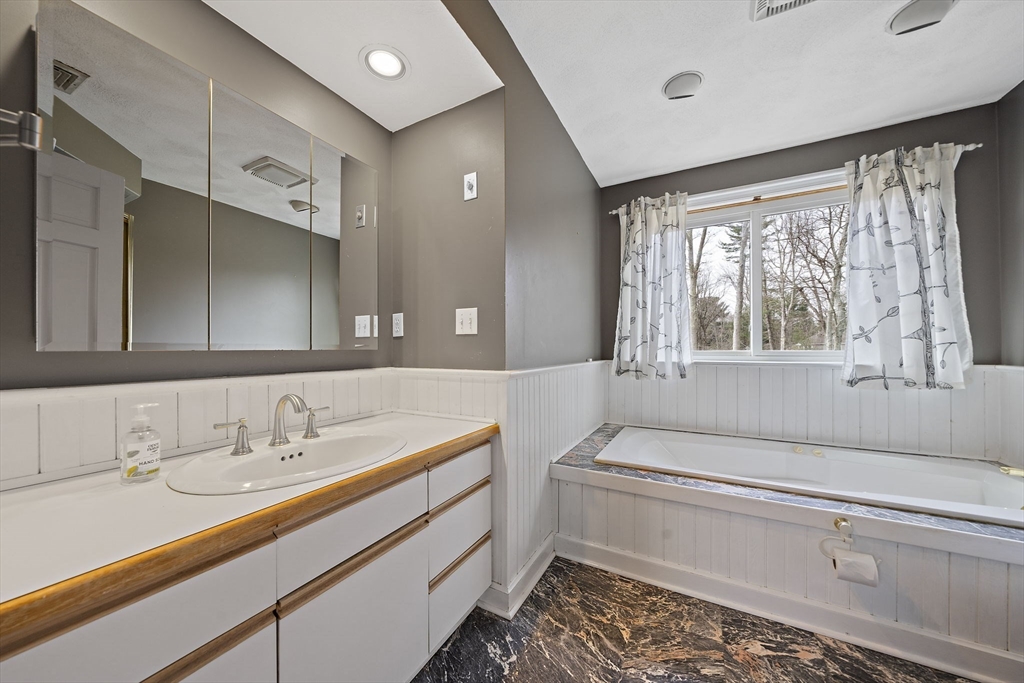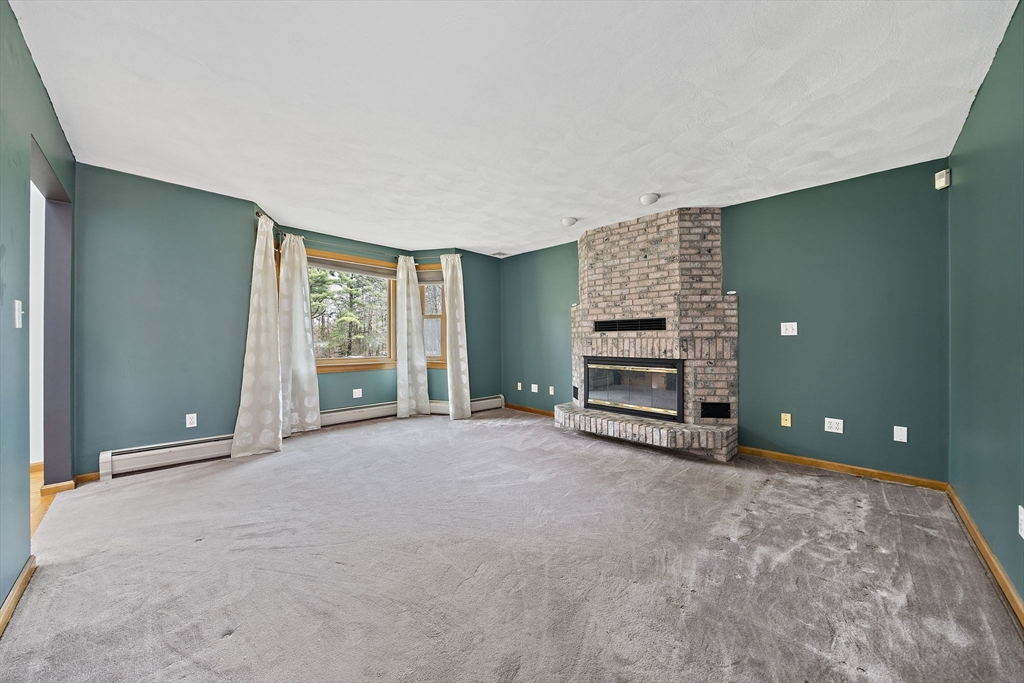 Tucked away in a desirable cul-de-sac neighborhood, this custom cape offers the perfect blend of charm and space on a gorgeous level lot just shy of an acre. Featuring 8 rms, 3 bedrooms and 2.5 baths, this home includes an inviting open foyer, abundant natural light and a comfortable layout. The kitchen offers a center island, granite countertops, stainless steel appliances and a dining area with sliders to a deck overlooking the expansive yard. The family rm features a beautiful fireplace. The living room/dining room area are perfect for all your entertaining. The primary suite includes skylights, a Juliet balcony and a bath with jacuzzi tub and shower. Two additional spacious bedrooms and finished basement provide flexible living space. The oversized 2 car garage with an unfinished room above is great for the hobbyist or future expansion. A short distance to the T and major routes for easy commuting. Don't miss your chance to own this exceptional property!