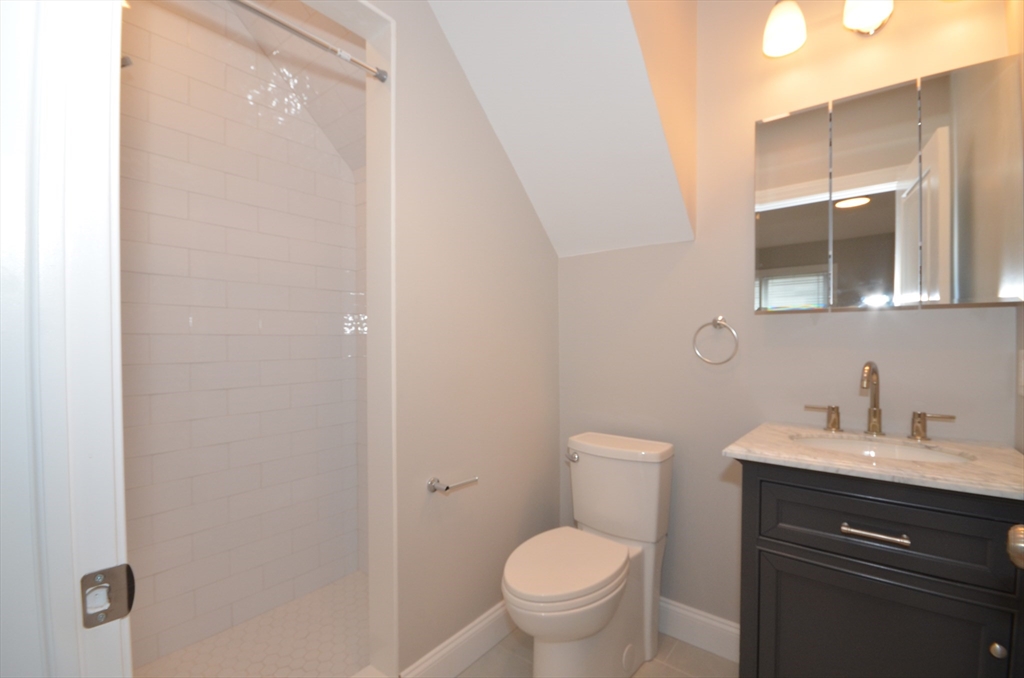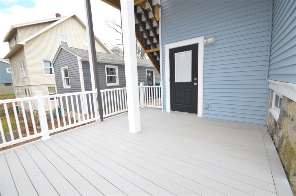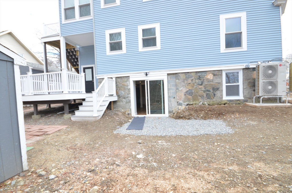 Be the first to live in this spacious, beautifully remodeled 4 bedroom, 3 full bath unit offering over 1,900 sq ft across two living levels. Located on the 1st and ground floors, this sun-filled home features an inviting eat-in kitchen with stylish white cabinetry, a bright and comfortable living room, and a main bedroom with en suite bath, plus an additional bedroom and full bath on the main level. Washer/dryer hookups are also conveniently located on this floor. The ground level offers two generously sized bedrooms, a full bath, & a versatile bonus room complete with a mini fridge & sink - perfect for guests, entertaining, or additional living space. Enjoy two off-street parking spaces, a private yard with storage shed, & a large deck ideal for outdoor relaxation. Available now. No smoking, pets considered. Convenient commuter location with easy access to Routes 128 & 93, shopping, dining, and parks! Good credit, references, & verifiable income required. All occupant 18+ must apply.