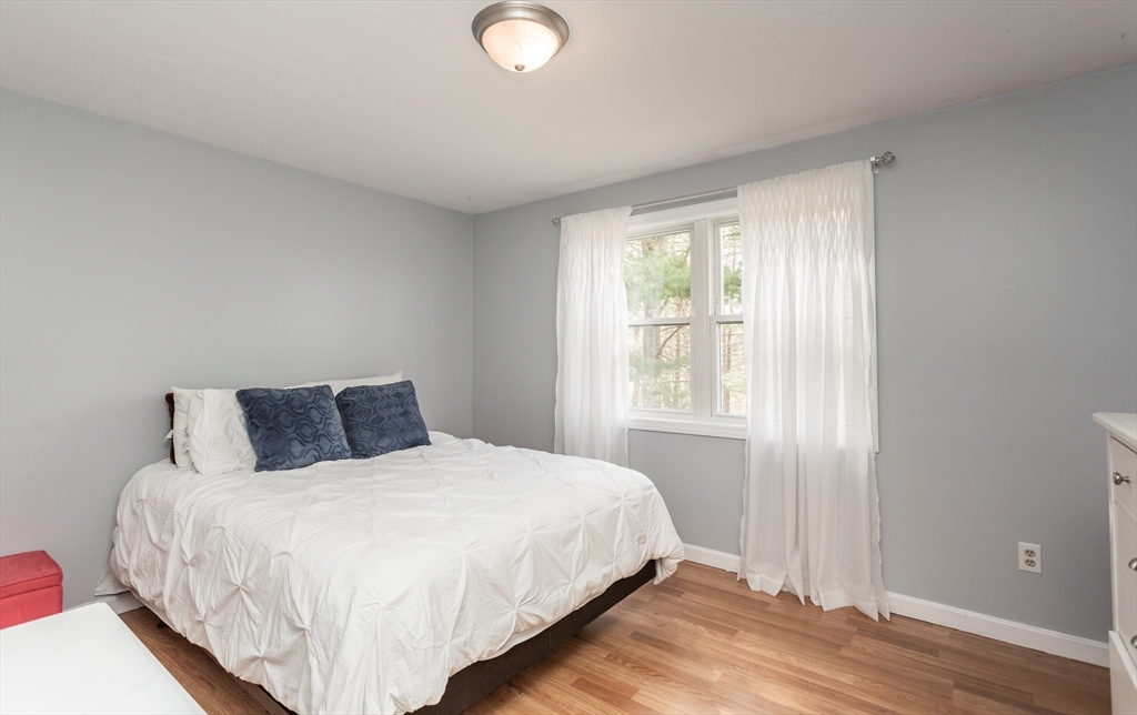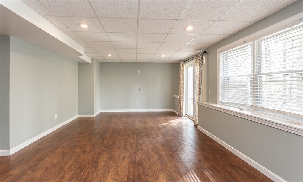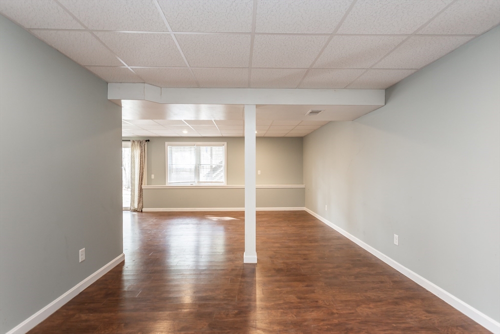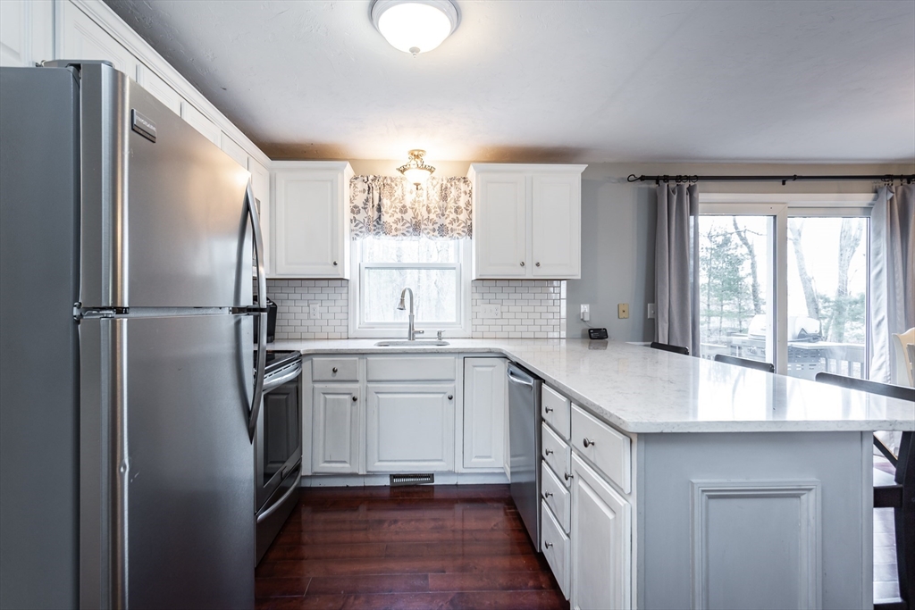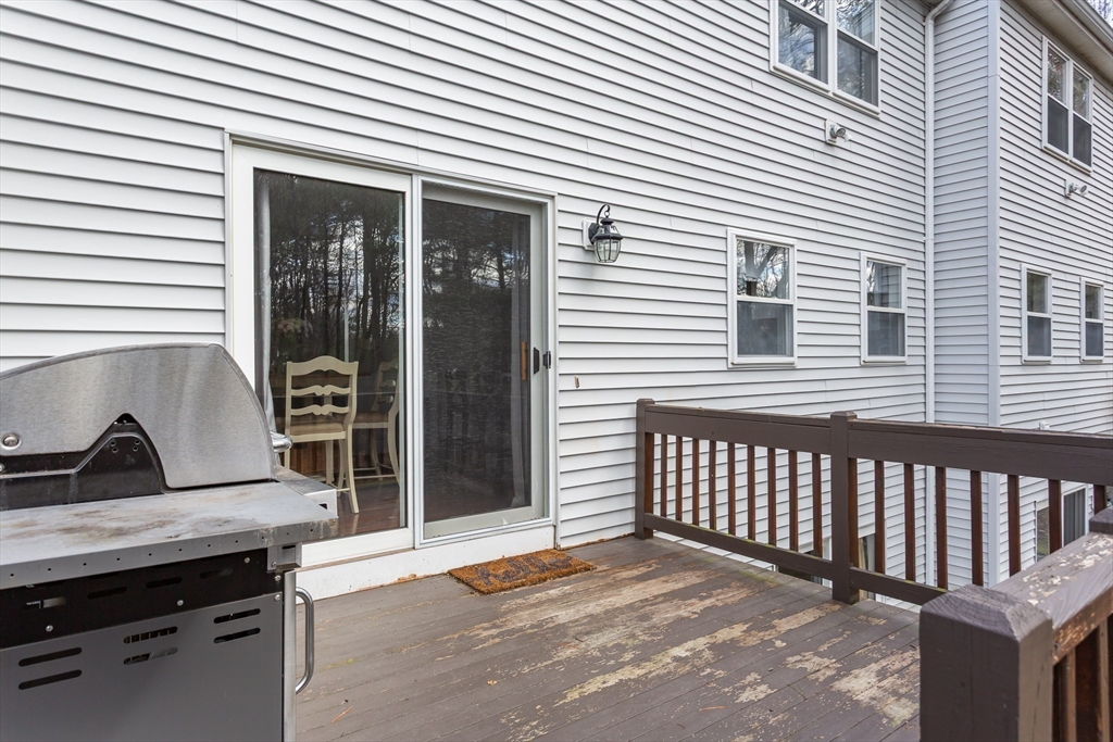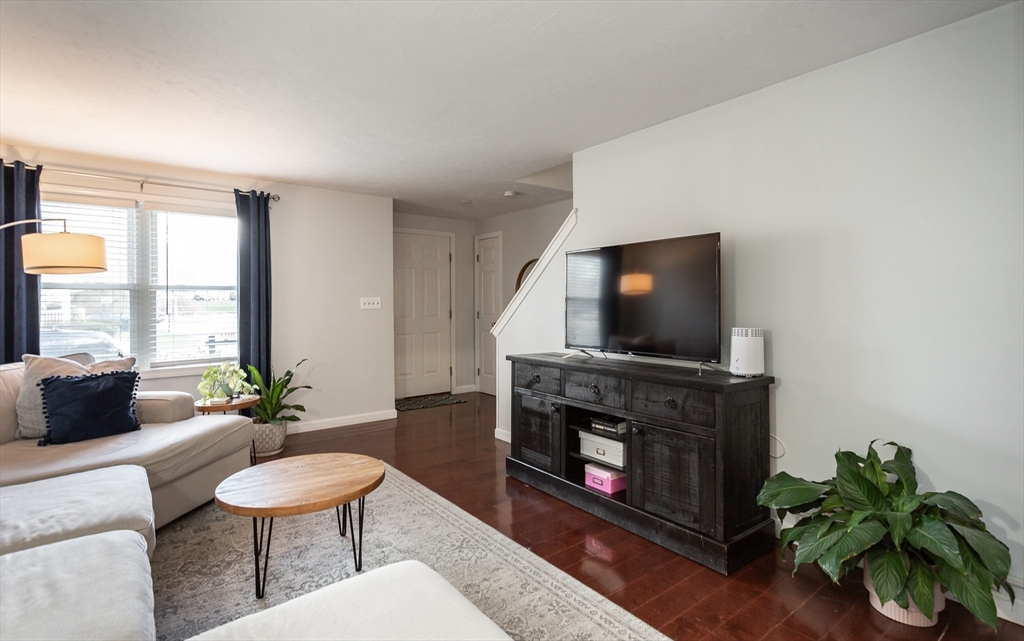 Welcome to Gatsby Circle Condominiums! This rare, beautifully updated 3-bedroom, 2-bath townhouse is sure to impress from the moment you walk in. This middle unit boasts a bright, modern kitchen with quartz counters, ample white cabinetry, and stainless steel appliances, seamlessly flowing into the dining area with a slider to a private deck overlooking serene, wooded scenery. The generously sized family room is perfect for entertaining or enjoying a quiet night at home. Enjoy gleaming hardwood floors, first-floor laundry, and central air throughout. The fully finished walk-out basement provides additional living space for recreation or relaxation. The primary bedroom features a versatile bonus area—ideal for a private home office or dressing room. Conveniently located near Massasoit State Park, offering kayaking, hiking, and scenic walks. This home perfectly blends comfort, style, and location—schedule your tour today!