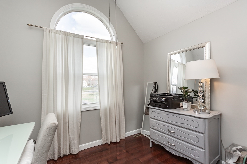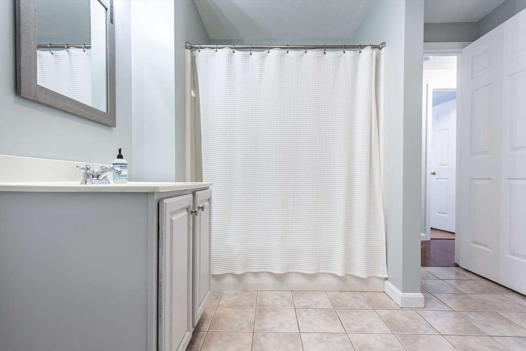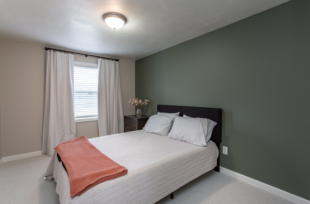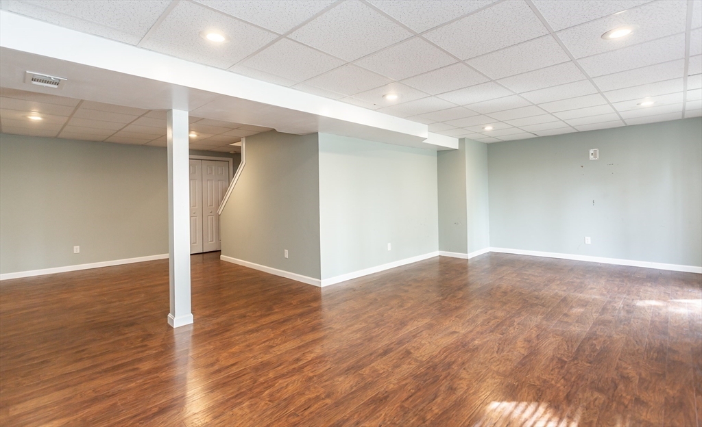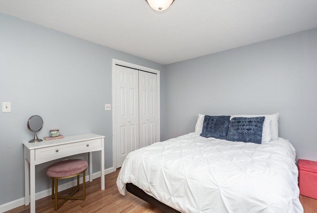 Welcome to Gatsby Circle Condominiums! This rare, beautifully updated 3-bedroom, 2-bath townhouse is sure to impress from the moment you walk in. This middle unit boasts a bright, modern kitchen with quartz counters, ample white cabinetry, and stainless steel appliances, seamlessly flowing into the dining area with a slider to a private deck overlooking serene, wooded scenery. The generously sized family room is perfect for entertaining or enjoying a quiet night at home. Enjoy gleaming hardwood floors, first-floor laundry, and central air throughout. The fully finished walk-out basement provides additional living space for recreation or relaxation. The primary bedroom features a versatile bonus area—ideal for a private home office or dressing room. Conveniently located near Massasoit State Park, offering kayaking, hiking, and scenic walks. This home perfectly blends comfort, style, and location—schedule your tour today!