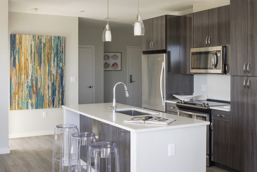 Very spacious and updated 2-bedroom, 2-bath unit available July 1st with high-end finishes throughout, including custom cabinetry, top-of-the-line appliances, quartz countertops, recessed lighting, ceramic tile bathrooms, high ceilings, walk-in closets, and oversized energy-efficient acoustic windows with great views. Enjoy in-unit laundry and central AC, along with building amenities such as a state-of-the-art fitness center, bike storage, and a rooftop lounge with two large roof decks. Parking available: uncovered ($75/month) and covered ($150/month). Pet-friendly with breed restrictions. Prime location on Boston Ave just steps from Tufts University and Ball Square, with easy access to public transportation. Photos shown are of a similar unit and are intended to highlight interior finishes and details.