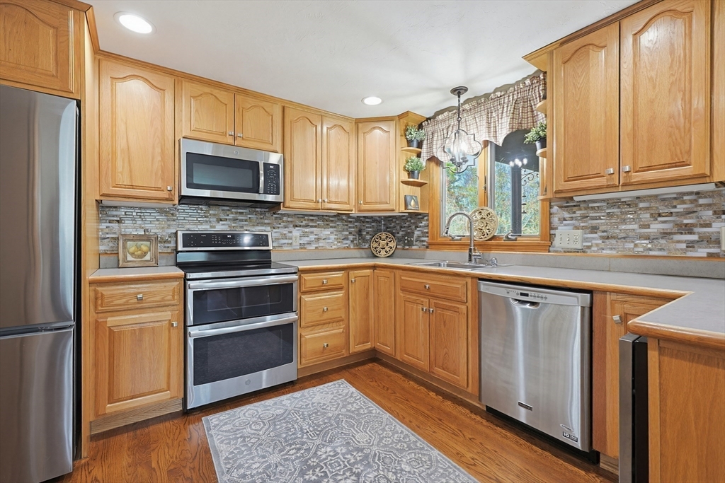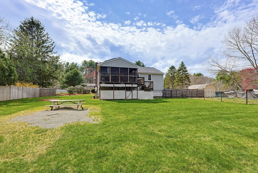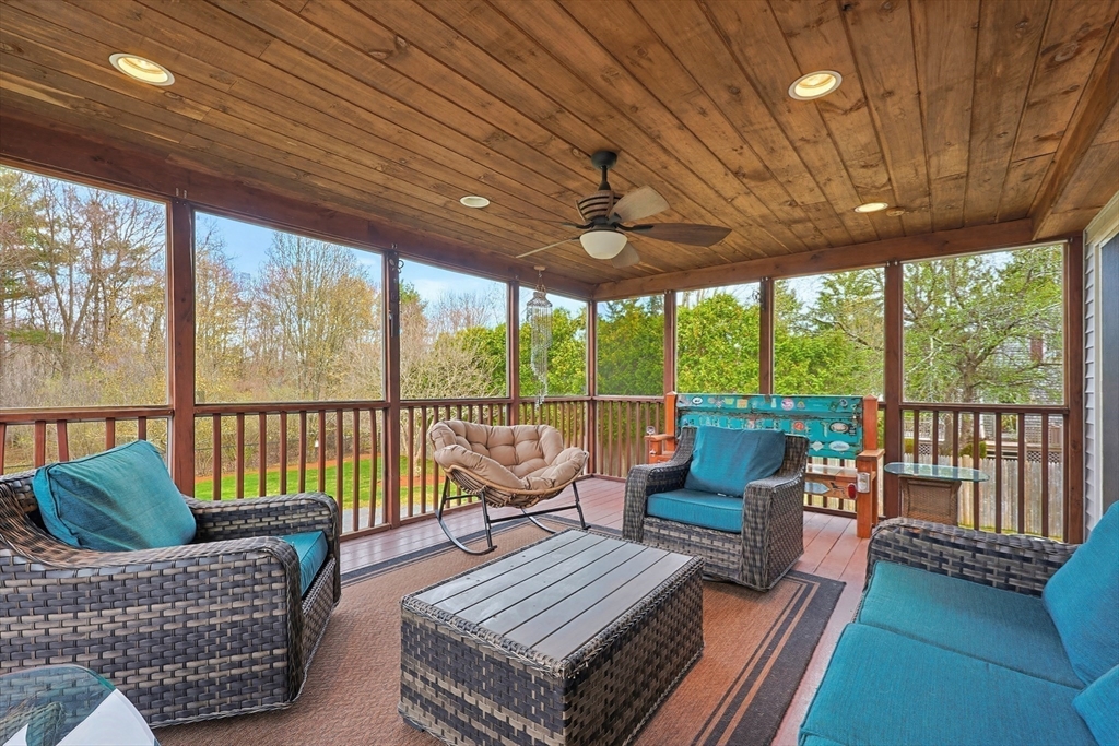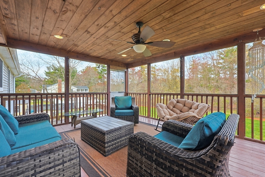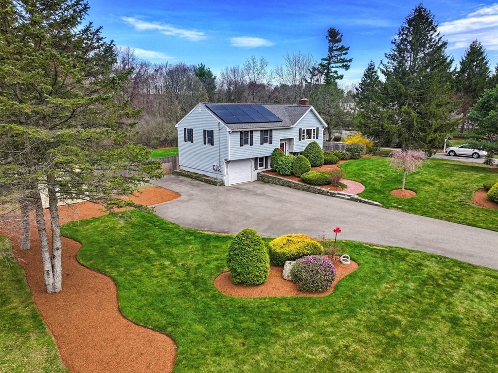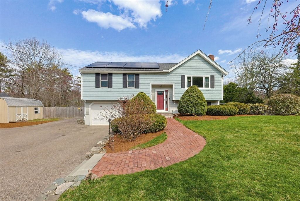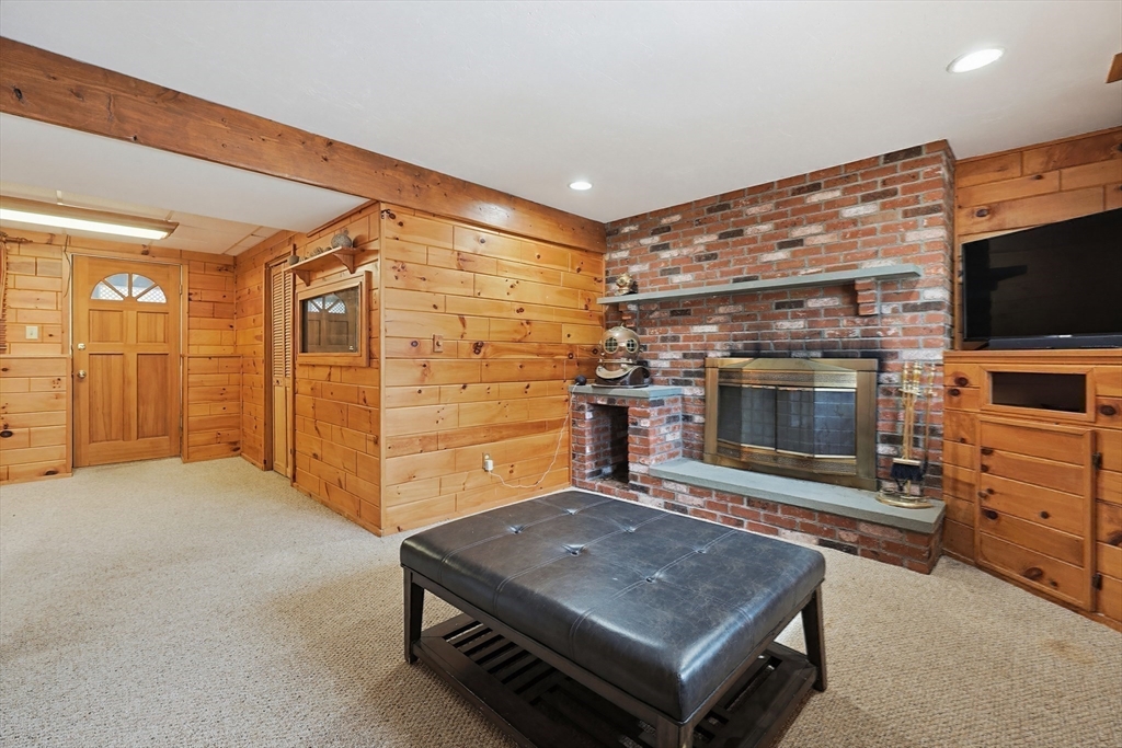 SHOWINGS BEGIN AT OPEN HOUSES: 4/18 & 4/19 Tucked away on a cul-de-sac in Wrentham, this well-maintained home offers comfort, functionality, and a great location. Set on a flat, wooded lot, it features a one-car garage, fenced yard, six-person Jacuzzi, generator hookup, irrigation, electric pet fence front+back,& a finished lower level with tongue-and-groove detail, wood-burning fireplace,built-in 75 gal fish tank , built-in wine fridge & walk in closet..Recent updates include a new roof (2024) & exterior paint (2023), solar panels for energy efficiency. Hardwood floors run throughout the upper level, and the bright, open layout is ideal for everyday living and entertaining. The eat-in kitchen with warm wood cabinetry flows into the living space and out to a screened-in porch/ceiling fan overlooking the backyard & conservation land. Additional highlights include a storage shed, new refrigerator, trash compactor & large driveway. Convenient to 495, 95, shopping, and Gillette Stadium.