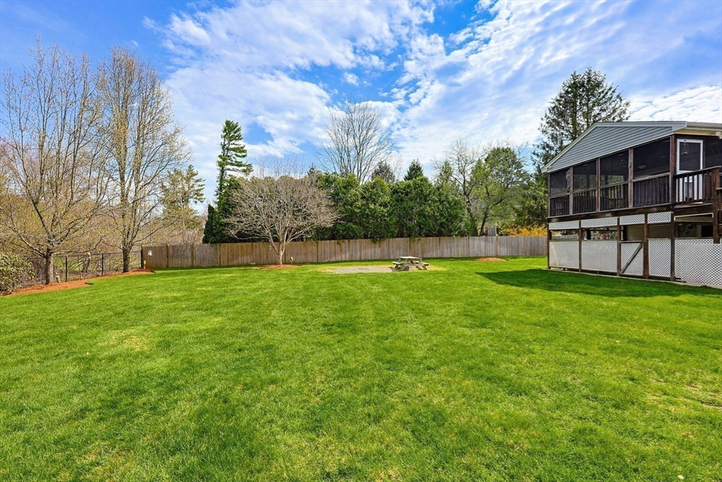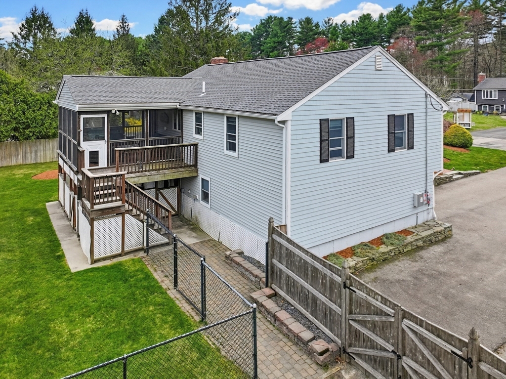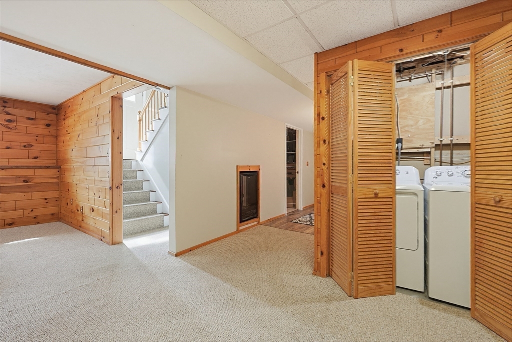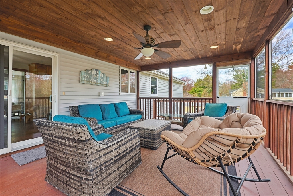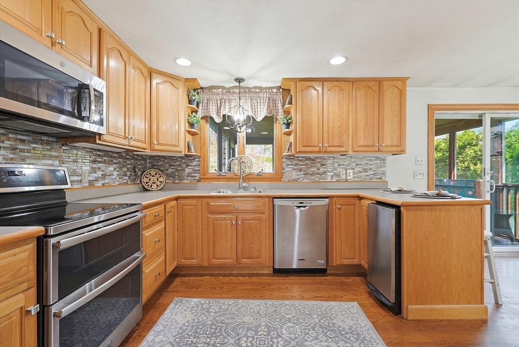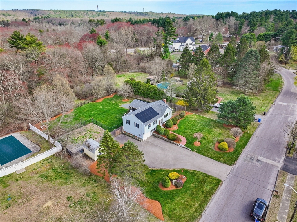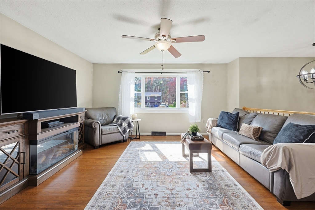 SHOWINGS BEGIN AT OPEN HOUSES: 4/18 & 4/19 Tucked away on a cul-de-sac in Wrentham, this well-maintained home offers comfort, functionality, and a great location. Set on a flat, wooded lot, it features a one-car garage, fenced yard, six-person Jacuzzi, generator hookup, irrigation, electric pet fence front+back,& a finished lower level with tongue-and-groove detail, wood-burning fireplace,built-in 75 gal fish tank , built-in wine fridge & walk in closet..Recent updates include a new roof (2024) & exterior paint (2023), solar panels for energy efficiency. Hardwood floors run throughout the upper level, and the bright, open layout is ideal for everyday living and entertaining. The eat-in kitchen with warm wood cabinetry flows into the living space and out to a screened-in porch/ceiling fan overlooking the backyard & conservation land. Additional highlights include a storage shed, new refrigerator, trash compactor & large driveway. Convenient to 495, 95, shopping, and Gillette Stadium.