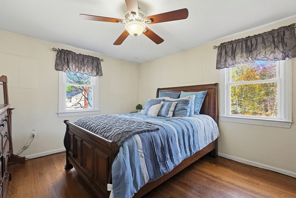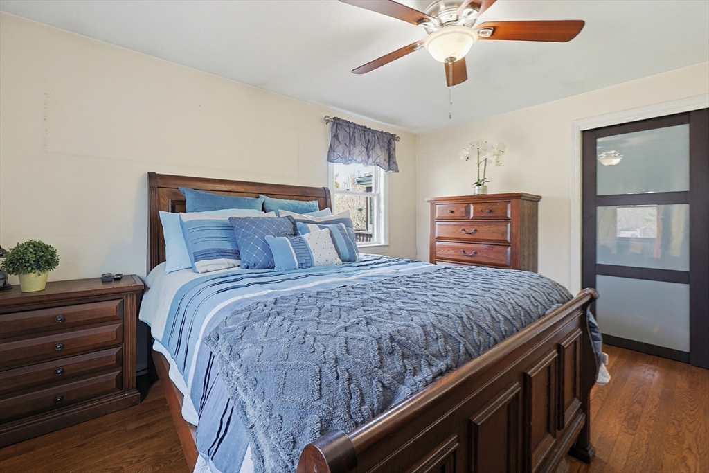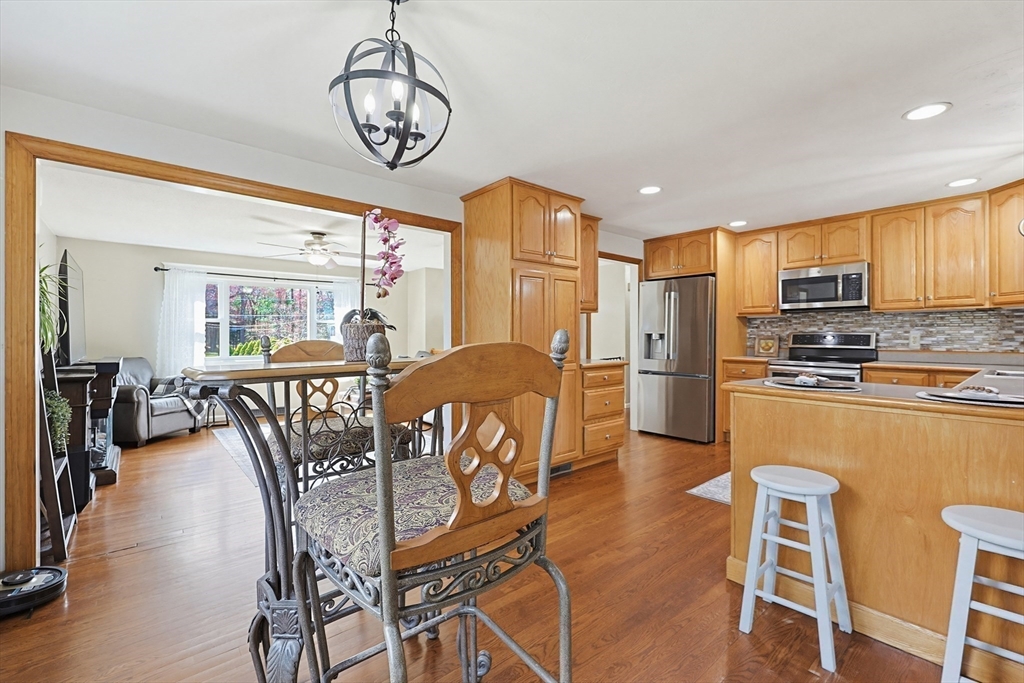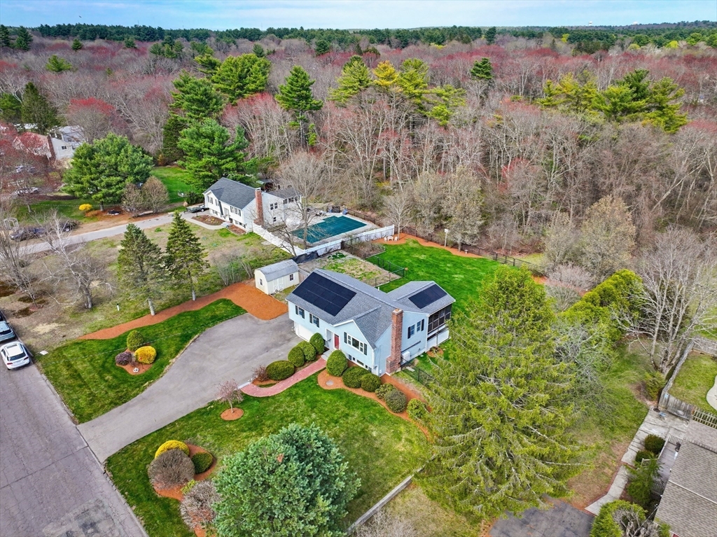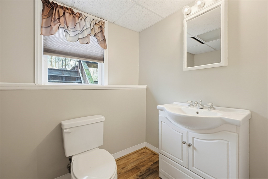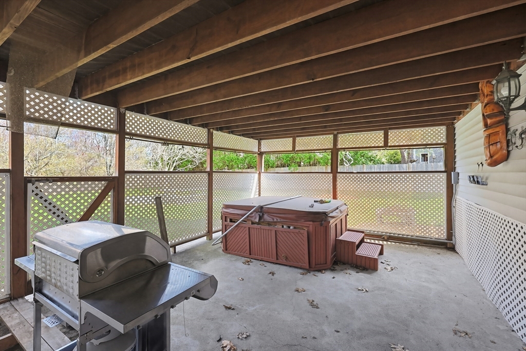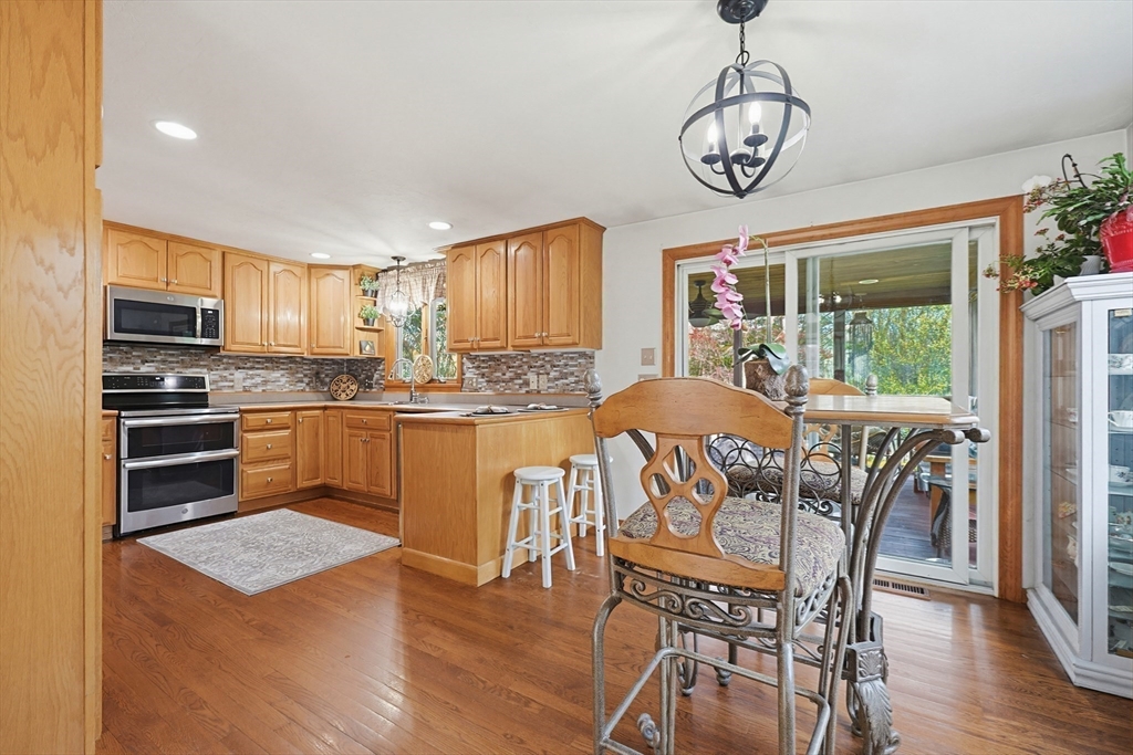 SHOWINGS BEGIN AT OPEN HOUSES: 4/18 & 4/19 Tucked away on a cul-de-sac in Wrentham, this well-maintained home offers comfort, functionality, and a great location. Set on a flat, wooded lot, it features a one-car garage, fenced yard, six-person Jacuzzi, generator hookup, irrigation, electric pet fence front+back,& a finished lower level with tongue-and-groove detail, wood-burning fireplace,built-in 75 gal fish tank , built-in wine fridge & walk in closet..Recent updates include a new roof (2024) & exterior paint (2023), solar panels for energy efficiency. Hardwood floors run throughout the upper level, and the bright, open layout is ideal for everyday living and entertaining. The eat-in kitchen with warm wood cabinetry flows into the living space and out to a screened-in porch/ceiling fan overlooking the backyard & conservation land. Additional highlights include a storage shed, new refrigerator, trash compactor & large driveway. Convenient to 495, 95, shopping, and Gillette Stadium.