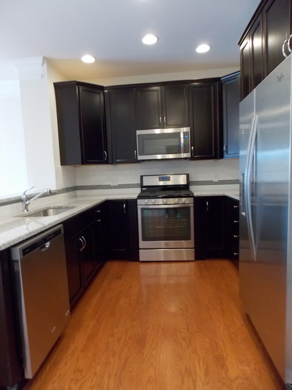 Stunning 2 bed/2 bath in Westborough Village. Rare opportunity to own a beautifully maintained first-floor home offering direct garden access from the private patio, abundant natural light, and one of the best views in the community. Enjoy an open layout with 9’ ceilings, hardwood laminate floors in the living, dining, kitchen, and 2nd bedroom, and a modern kitchen with granite countertops, stainless steel appliances, and gas range. The bright east-facing living room fills with natural light. The primary suite features a walk-in closet, dual-sink vanity, Roman tub, and separate shower. Private 2nd bedroom with walk-in closet. Additional perks include in-unit laundry, economical gas heat, central AC, and an exterior storage unit. Community amenities include a clubhouse, pool, fitness center, play area, and five landscaped gardens. Less than 1 mile to the MBTA and minutes to shopping and restaurants. Resort style living in a prime location.