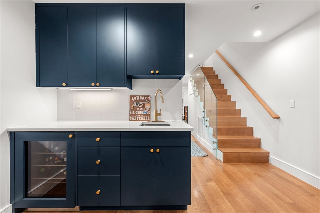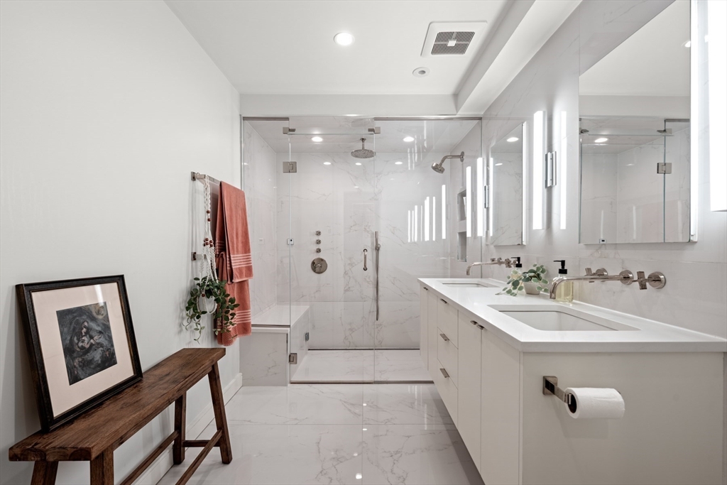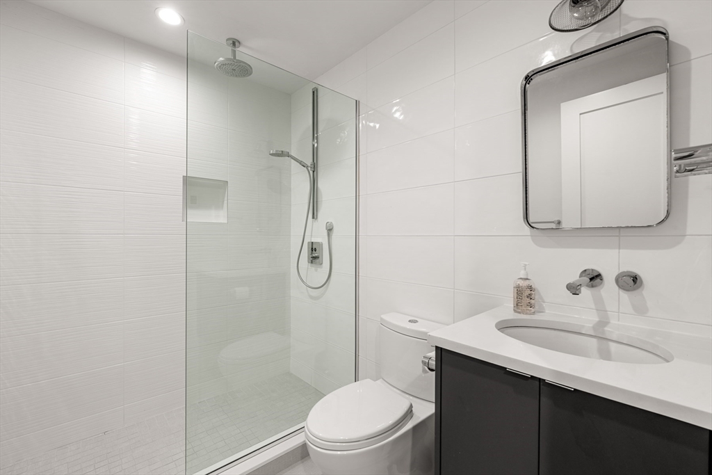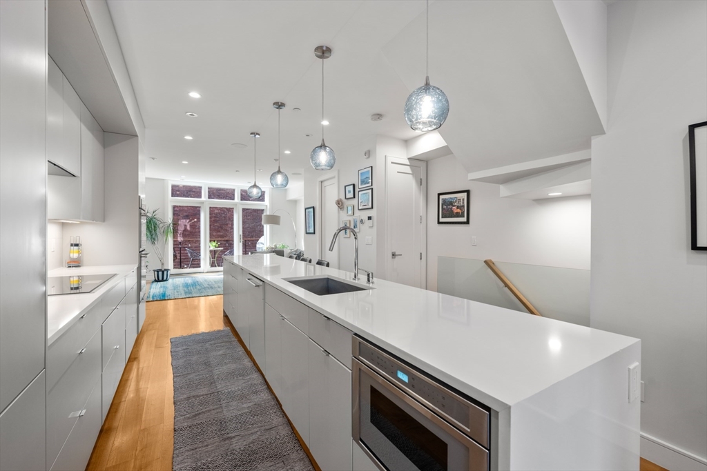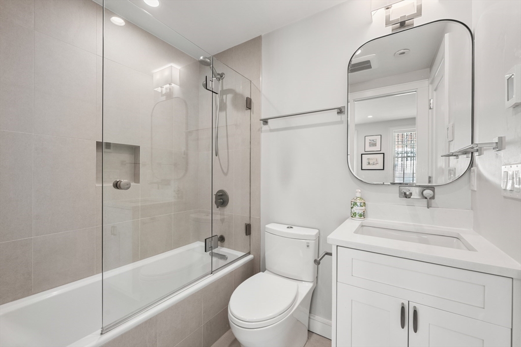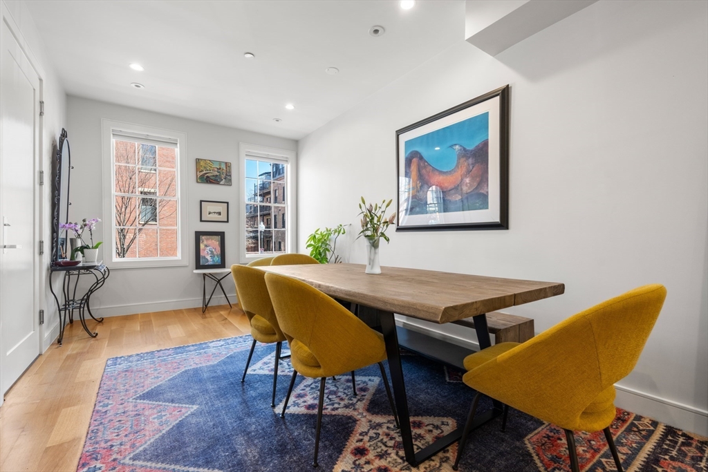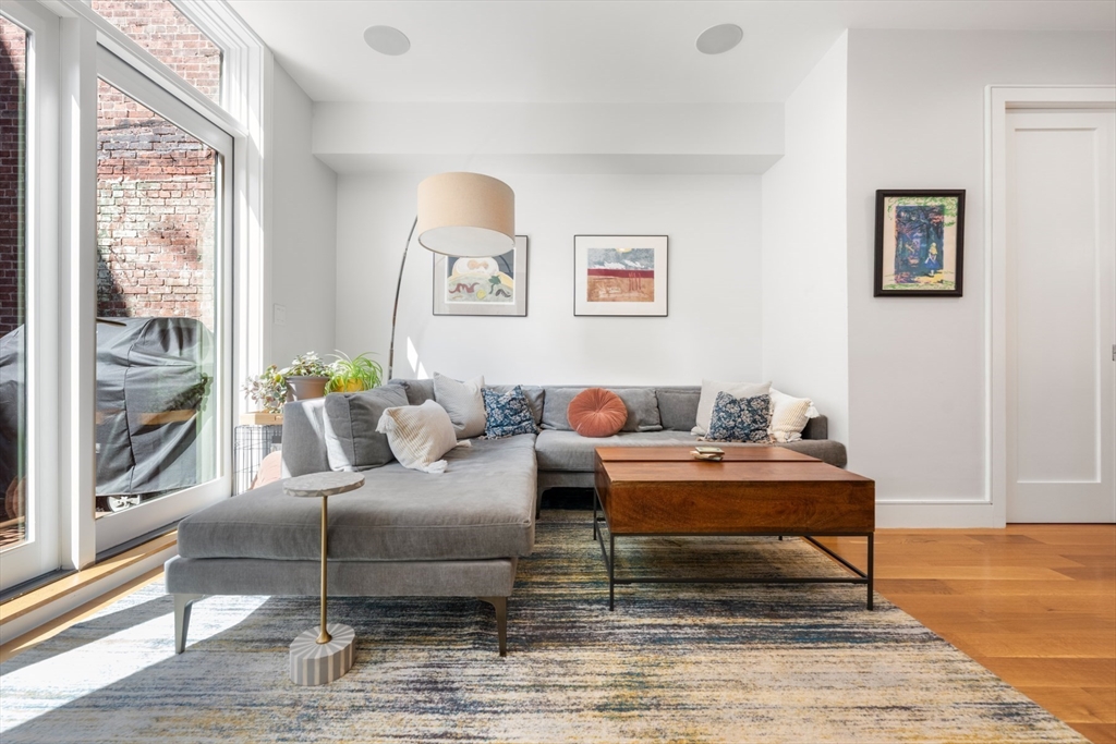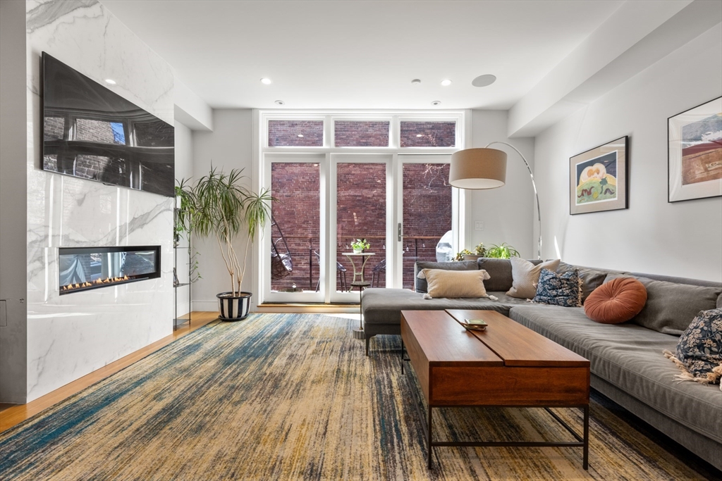 3 bed parlor triplex in the South End’s Golden Triangle! New construction in 2019, this home offers thoughtful design & sophisticated living. Only one flight up from the sidewalk, the parlor level features an impressive 50-ft deep open layout w/kitchen, gas fireplaced living/dining areas, powder room, high ceilings, coat closet & wall of west-facing glass opening to a private deck w/gas line perfect for al-fresco dining. Custom kitchen includes a large island with counter seating, high-end Thermador appliances, including steam oven, induction cooktop and integrated 36IN refrigerator. Middle level hosts king-sized primary suite w/large windows, walk-in closet & spa-like bath featuring double sink vanity, step-in shower, heated floors & steam shower. Well-appointed guest suite also resides on this level. Garden level offers 2nd living area w/surround sound, wet bar, 3rd bed, full bath & ample storage. Complete w/beautifully hardscaped patio & rental garage options only a few blocks away.