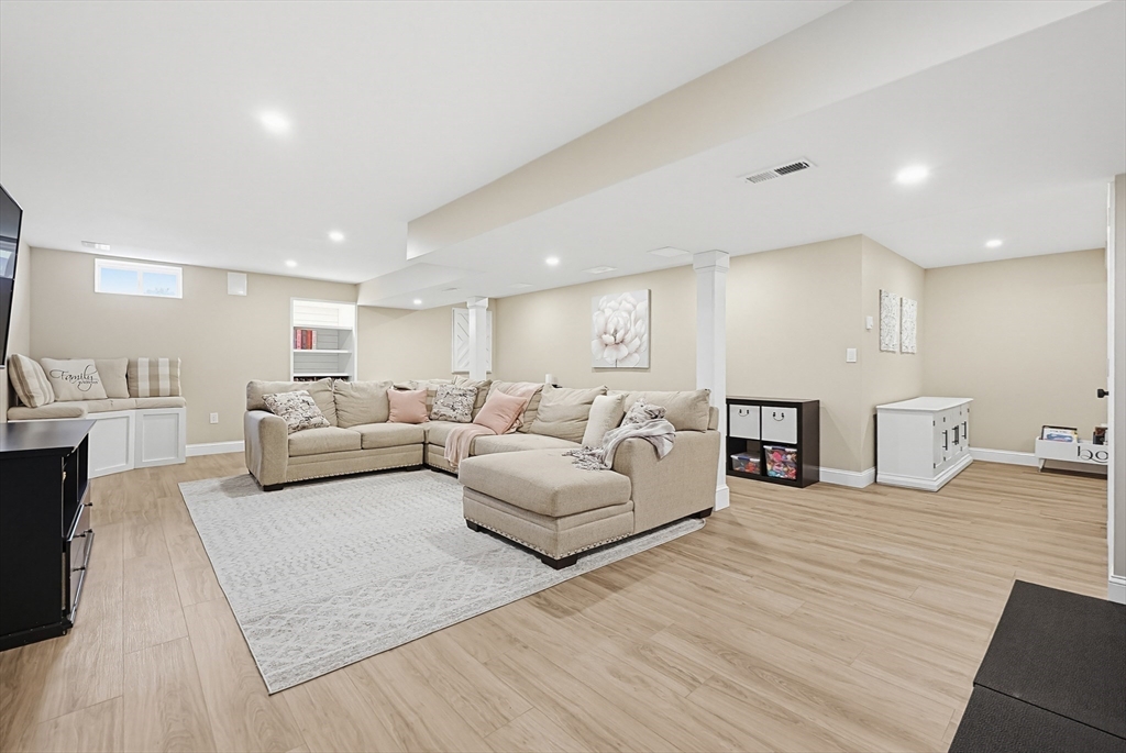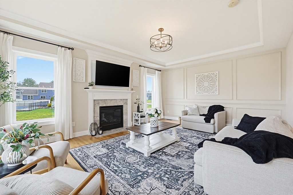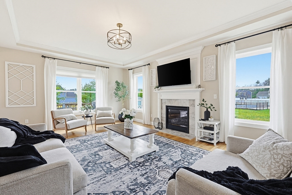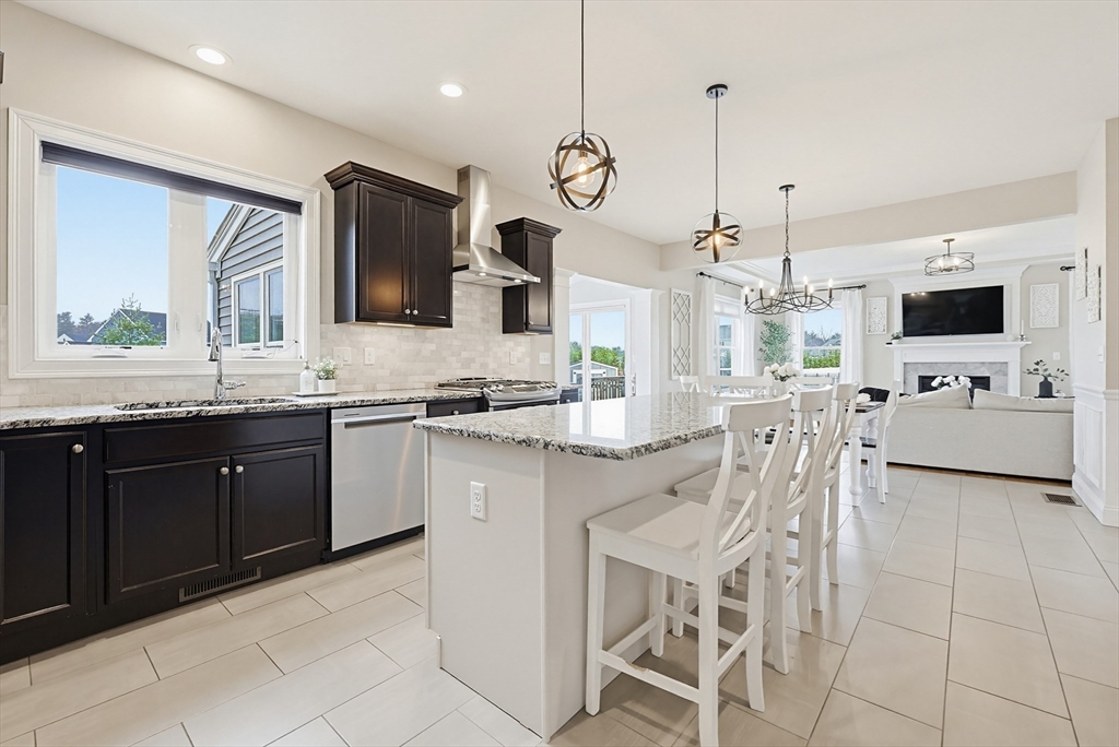 Beautifully maintained and move-in ready, this 4-bedroom, 2.5-bath Colonial in Bridgewater Preserve offers the perfect blend of style, space, and function. The thoughtfully designed layout features a dramatic two-story foyer-leading into a stunning kitchen with granite counters, tile backsplash, gas cooking, and dining area that opens to a spacious living room with gas fireplace—ideal for everyday living and entertaining. A formal dining room, private office with a French door, and sunroom with access to a two-level deck add versatility to the main level. Upstairs, enjoy a generous primary suite with dual walk-in closets and a full bath, plus three additional bedrooms, 2nd bath and laundry room. The recently finished basement adds ~900 sq ft of living space including an oversized family room and 3 flex spaces perfect for a media room, gym, and playroom. Set on a level, professionally landscaped lot with easy access to Route 495 and Route 24, as well as local amenities.