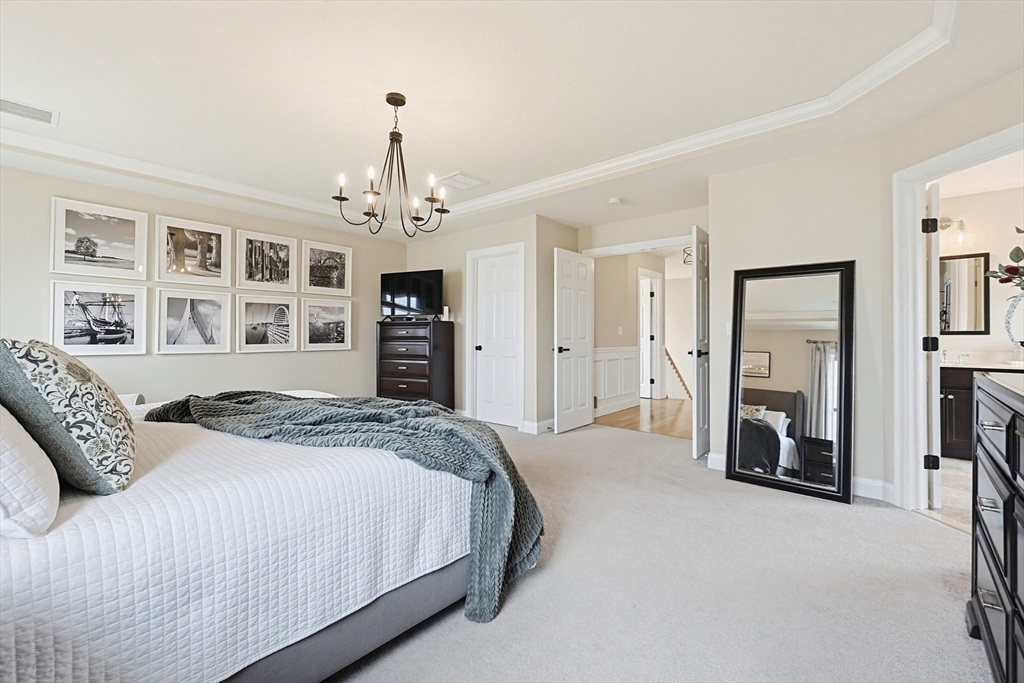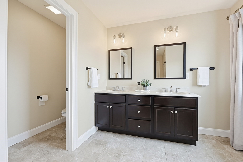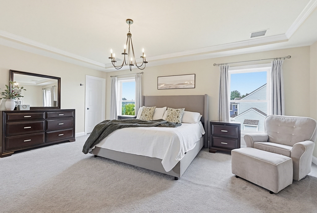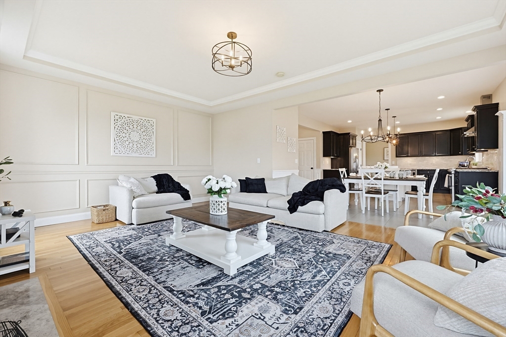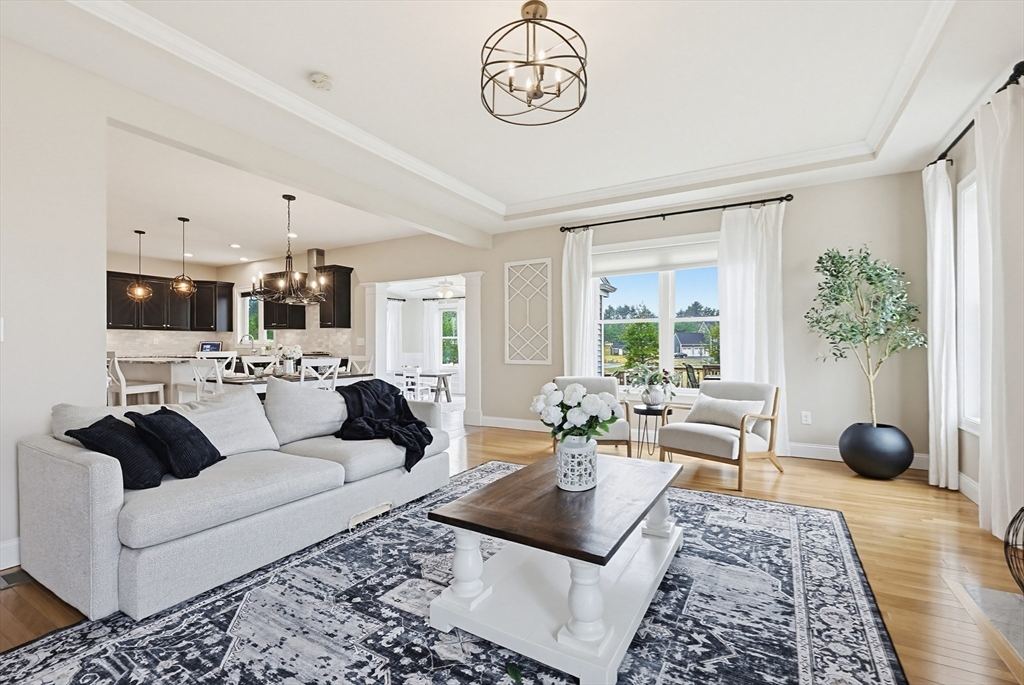 Beautifully maintained and move-in ready, this 4-bedroom, 2.5-bath Colonial in Bridgewater Preserve offers the perfect blend of style, space, and function. The thoughtfully designed layout features a dramatic two-story foyer-leading into a stunning kitchen with granite counters, tile backsplash, gas cooking, and dining area that opens to a spacious living room with gas fireplace—ideal for everyday living and entertaining. A formal dining room, private office with a French door, and sunroom with access to a two-level deck add versatility to the main level. Upstairs, enjoy a generous primary suite with dual walk-in closets and a full bath, plus three additional bedrooms, 2nd bath and laundry room. The recently finished basement adds ~900 sq ft of living space including an oversized family room and 3 flex spaces perfect for a media room, gym, and playroom. Set on a level, professionally landscaped lot with easy access to Route 495 and Route 24, as well as local amenities.