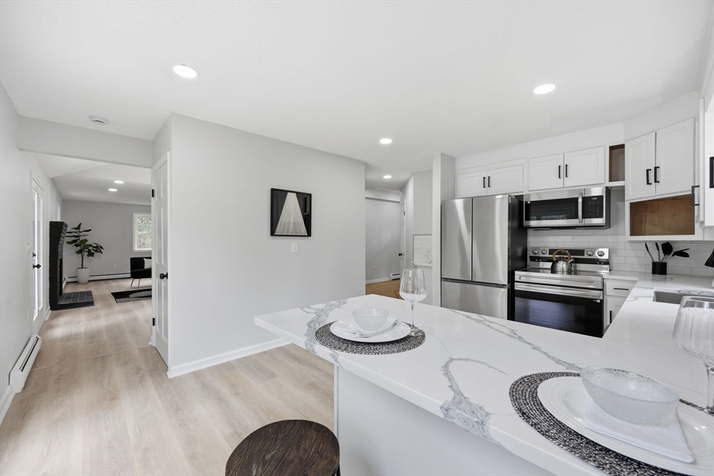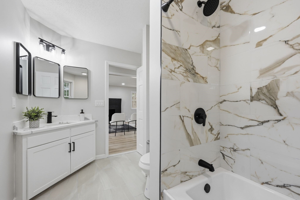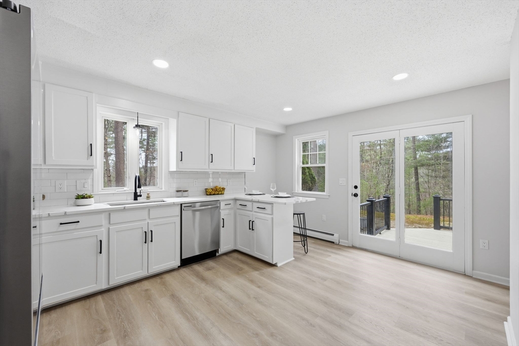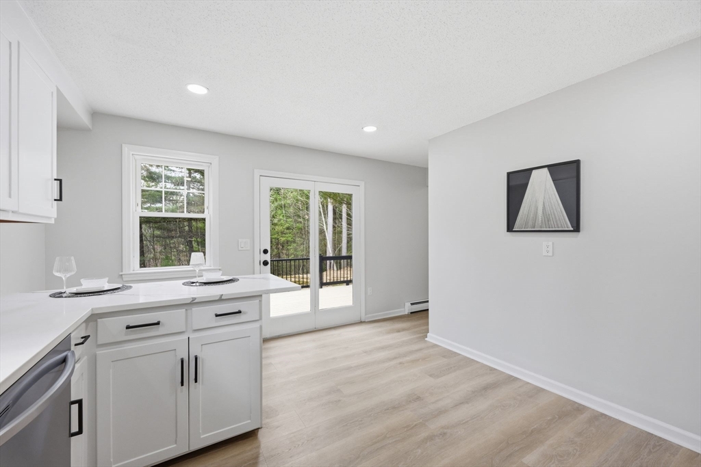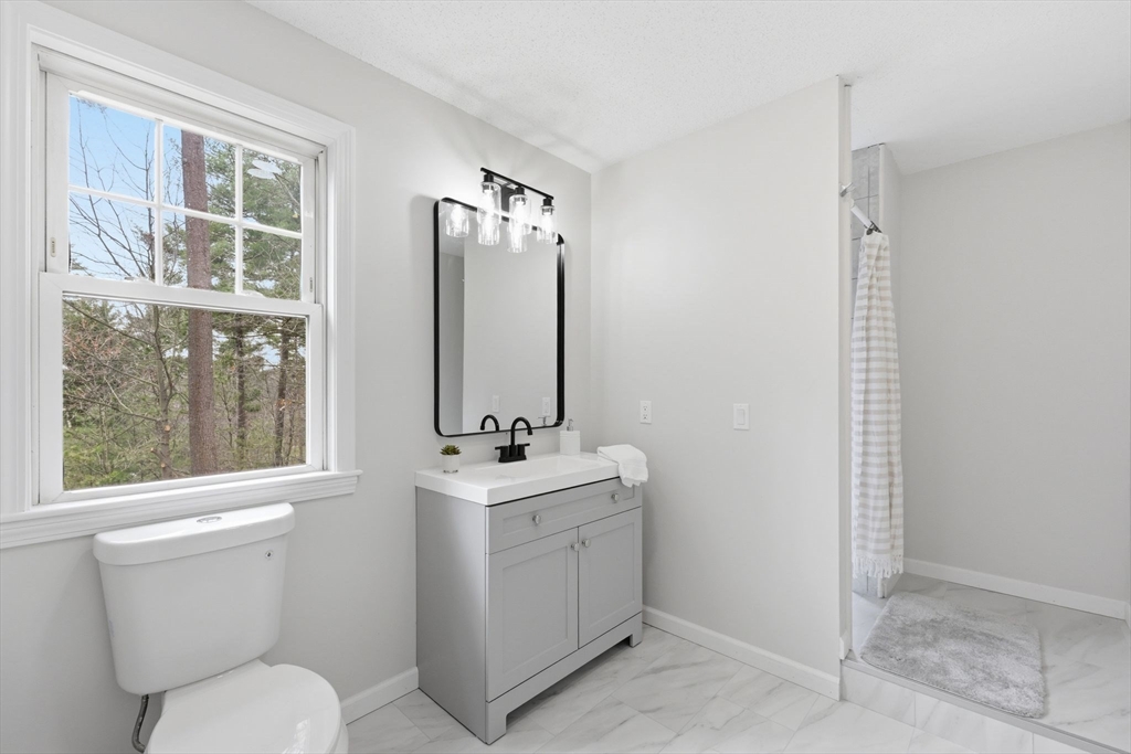 Welcome to this fully updated Contemporary home set on a private 1.82-acre lot in a desirable location of Monson. Thoughtfully redesigned, this 3 bedroom, 2 full bath property blends modern finishes with an open, airy layout highlighted by vaulted ceilings and lots of natural light. The main level features 2 spacious bedrooms, including one with a unique custom bookshelf closet, along with a beautifully updated full bathroom. The heart of the home is the kitchen, complete with Calacatta quartz countertops, brand new stainless steel appliances, and a breakfast bar, perfect for casual dining or hosting. Upstairs, you’ll find a loft-style primary suite offering privacy and character, complete with its own full bathroom. Additional highlights include an oversized two-car garage and an attached deck overlooking scenic surroundings ideal for relaxing or hosting. A rare combination of modern updates, unique design, and peaceful acreage. Don't miss this opportunity, schedule your showing today