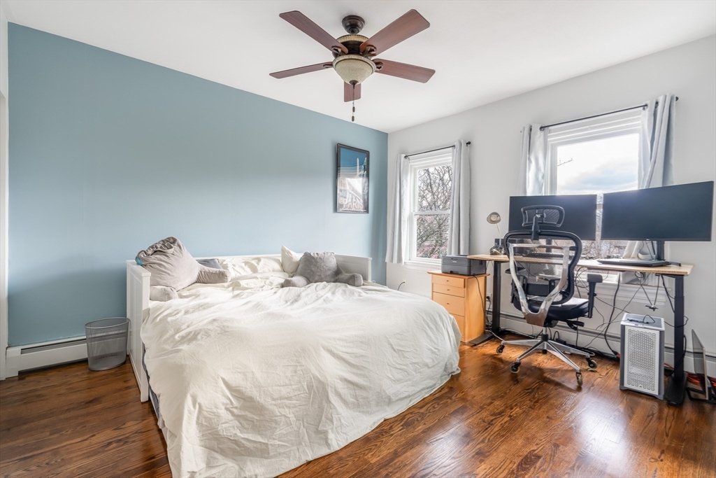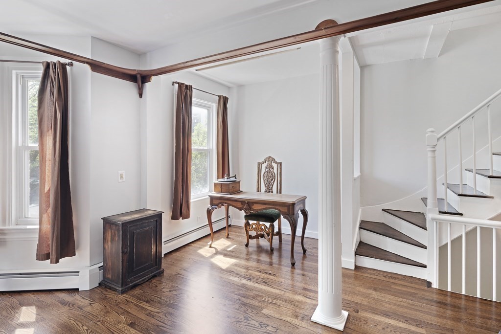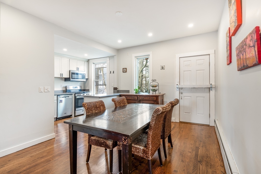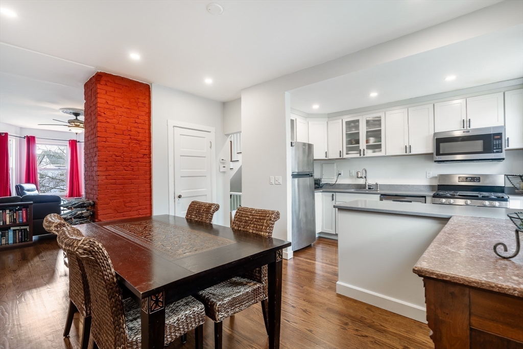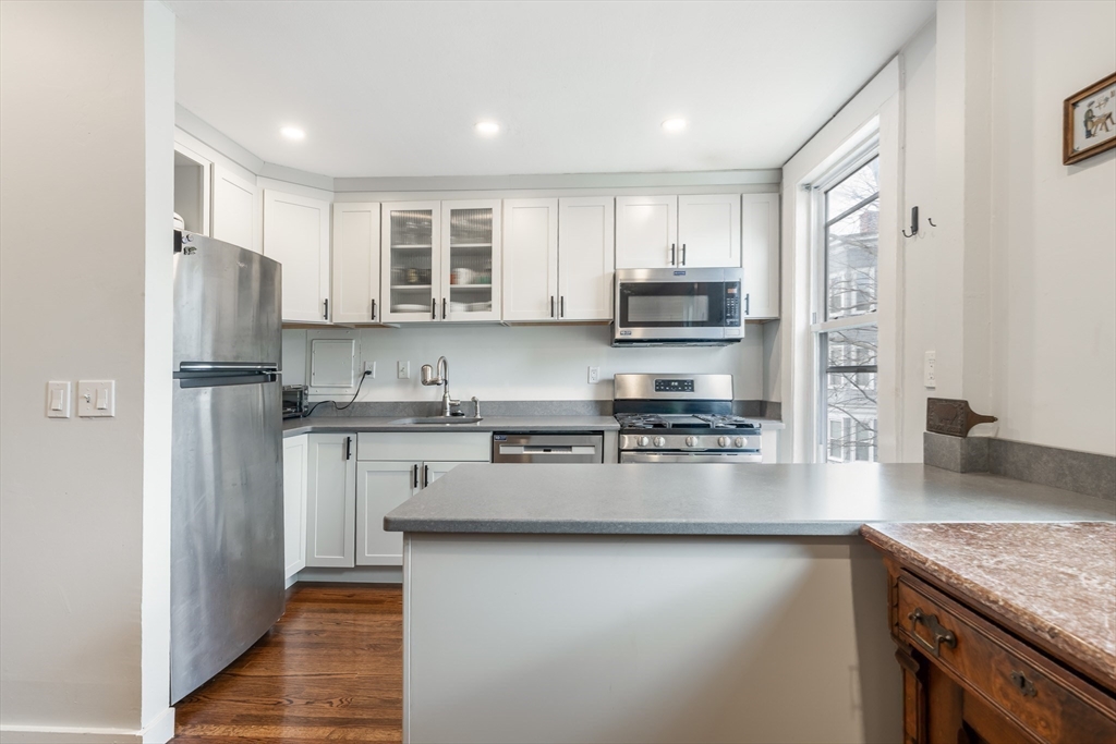 Townhouse-style living in the heart of Cambridge’s Port neighborhood, just moments from Kendall, Inman, and Central Squares, as well as Harvard and MIT. This top-floor unit offers a smart, well-balanced layout with over 1,100 sq ft across two levels, creating a natural separation between living and sleeping areas. The main level features an open flow between living and dining, highlighted by a bay window that brings in strong natural light, along with a recently renovated kitchen with stone counters, stainless appliances, and peninsula seating—designed for both everyday living and entertaining. Upstairs are two generously sized bedrooms, including a spacious primary, along with a full bath, skylight and in-unit laundry. Hardwood floors run throughout. Set within a renovated building with common outdoor space, this home offers easy access to local cafes, restaurants, parks, Red and Green Line T stations & City of Boston, making it a compelling option for both end-users and investors.