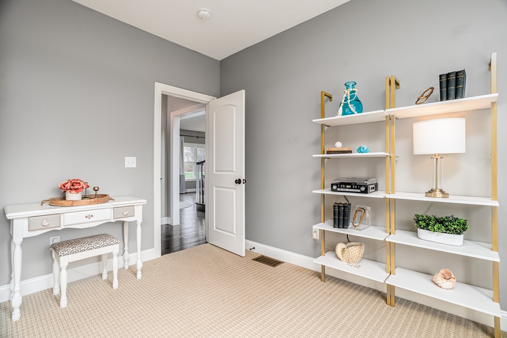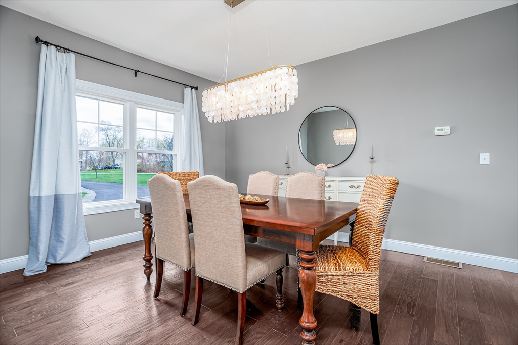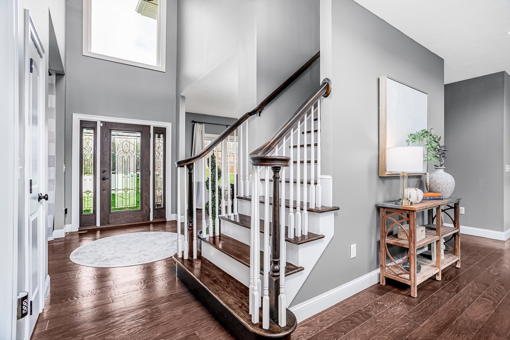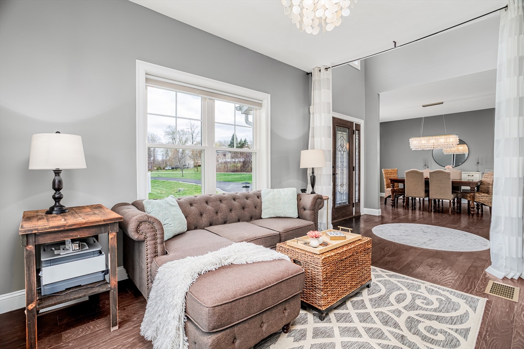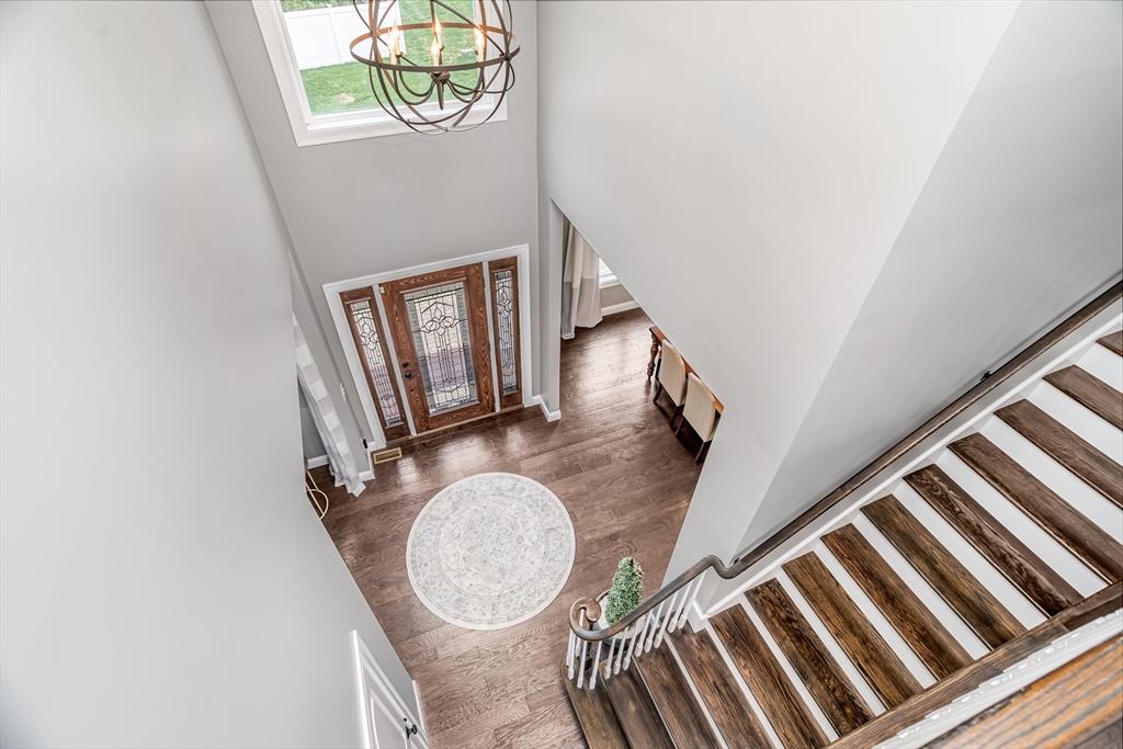 Stunning & Versatile Contemporary Colonial, sited beautifully on a 1.85-acre lot in a convenient area, this lovely home offers a bright, open layout designed for modern living. Step into a cathedral entryway leading to a magnificent two-story living room with a cozy fireplace and engineered hardwood floors that flow throughout the main level. The heart of the home is a gorgeous chef’s kitchen, perfectly complemented by a highly adaptable floor plan. The main level provides incredible convenience with a dedicated bedroom and a full bath, plus a separate den/family room that can easily serve as a second main-level bedroom by simply adding a door. A hardwood staircase leads to a dramatic catwalk overlooking the living area. The second floor has exceptionally large bedrooms and 3 full baths throughout the home. The unfinished basement offers over 1,400 sq. ft. of potential for a future gym or media room. A nice 2-car garage. Open House Sat. April 25, 2026. 11-12:30 PM.