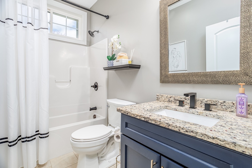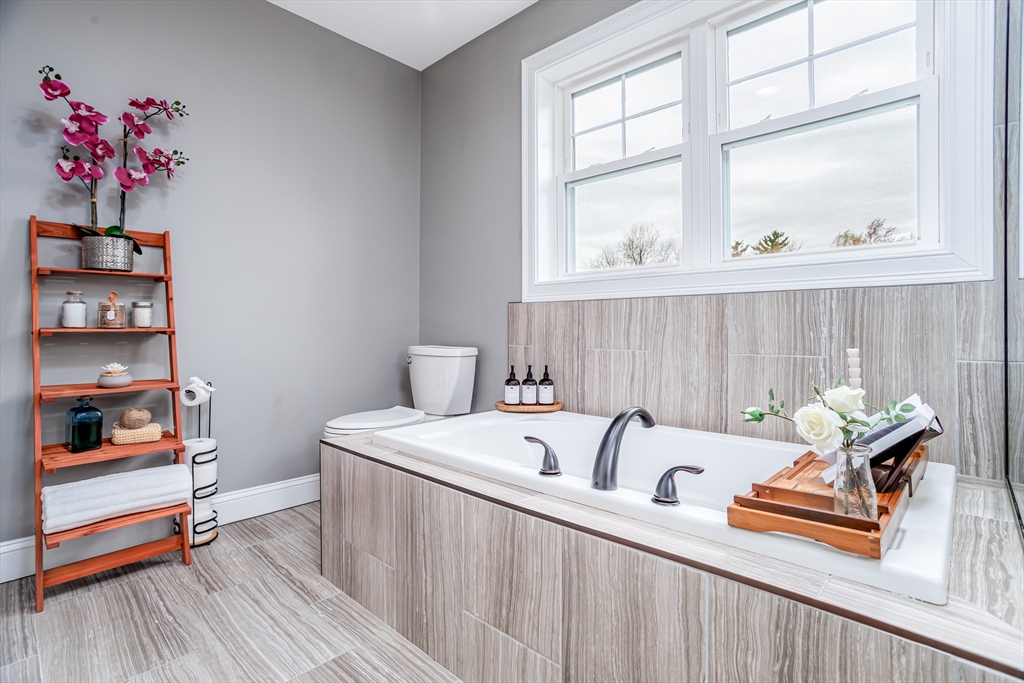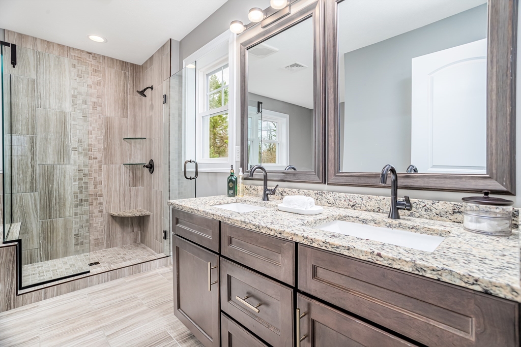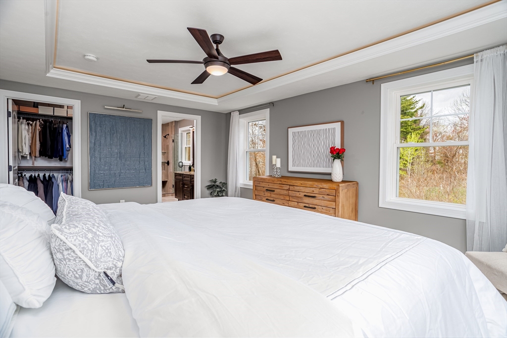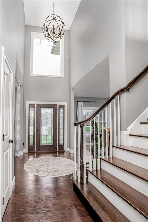 Stunning & Versatile Contemporary Colonial, sited beautifully on a 1.85-acre lot in a convenient area, this lovely home offers a bright, open layout designed for modern living. Step into a cathedral entryway leading to a magnificent two-story living room with a cozy fireplace and engineered hardwood floors that flow throughout the main level. The heart of the home is a gorgeous chef’s kitchen, perfectly complemented by a highly adaptable floor plan. The main level provides incredible convenience with a dedicated bedroom and a full bath, plus a separate den/family room that can easily serve as a second main-level bedroom by simply adding a door. A hardwood staircase leads to a dramatic catwalk overlooking the living area. The second floor has exceptionally large bedrooms and 3 full baths throughout the home. The unfinished basement offers over 1,400 sq. ft. of potential for a future gym or media room. A nice 2-car garage. Open House Sat. April 25, 2026. 11-12:30 PM.