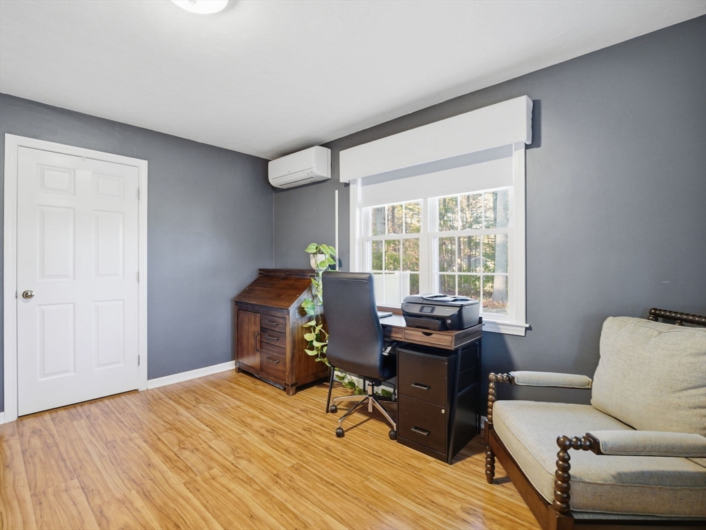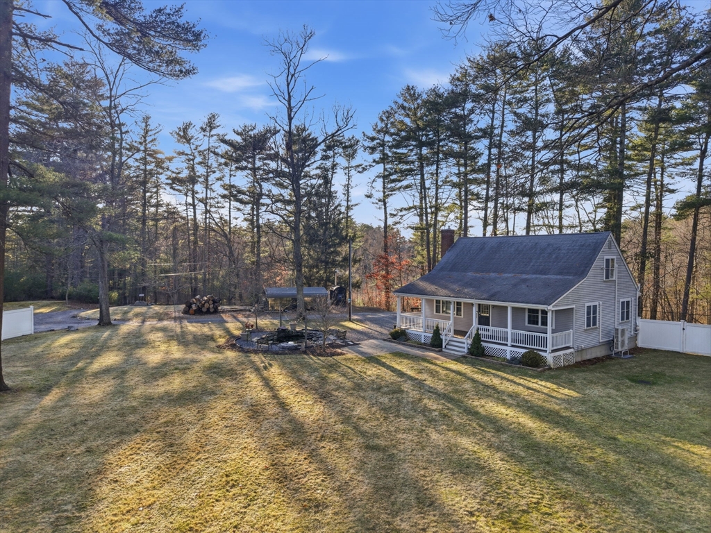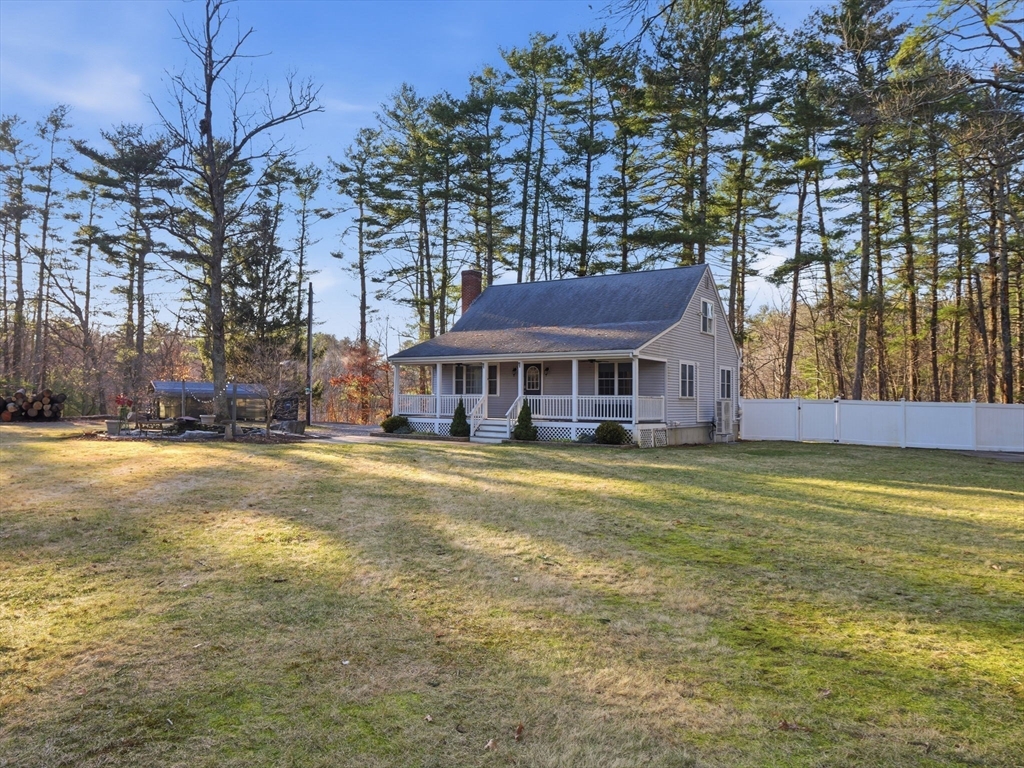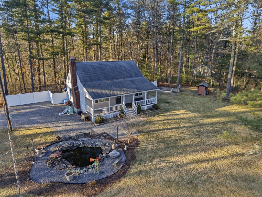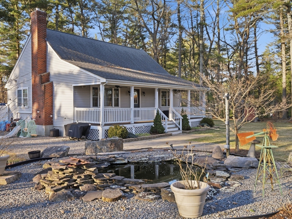 Welcome home to this stunning contemporary cape set on 1.6 acres! Enjoy the summers on your farmer's porch overlooking your own personal Koi Pond. This home is a must see! It features an open floor plan, soaring cathedral ceilings, surround sound, spacious kitchen with island seating, large family room with wood burning fireplace, and primary suite located on the second floor with private bathroom. There is also a gorgeous, finished basement with separate laundry room. The home comes complete with generator hookup, water softener system, radiant floors, super-efficient central boiler outdoor furnace and ductless mini splits. Large barn and shed with a fully fenced in backyard offers supreme privacy. Fantastic location for commuters.