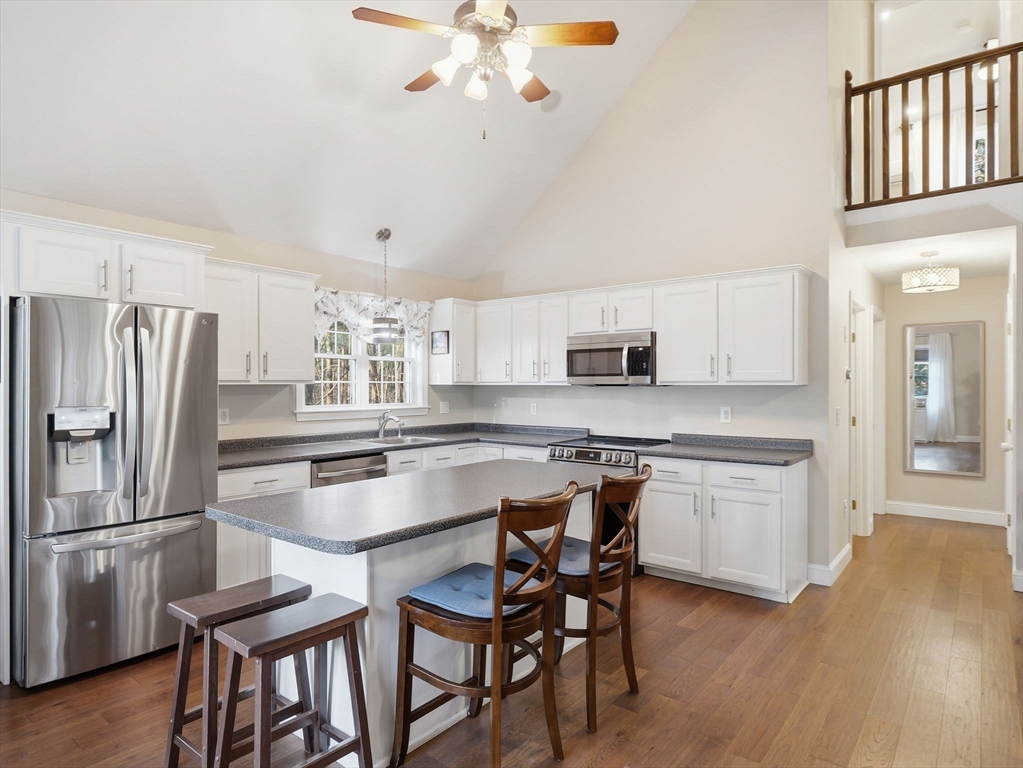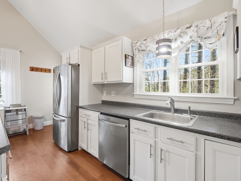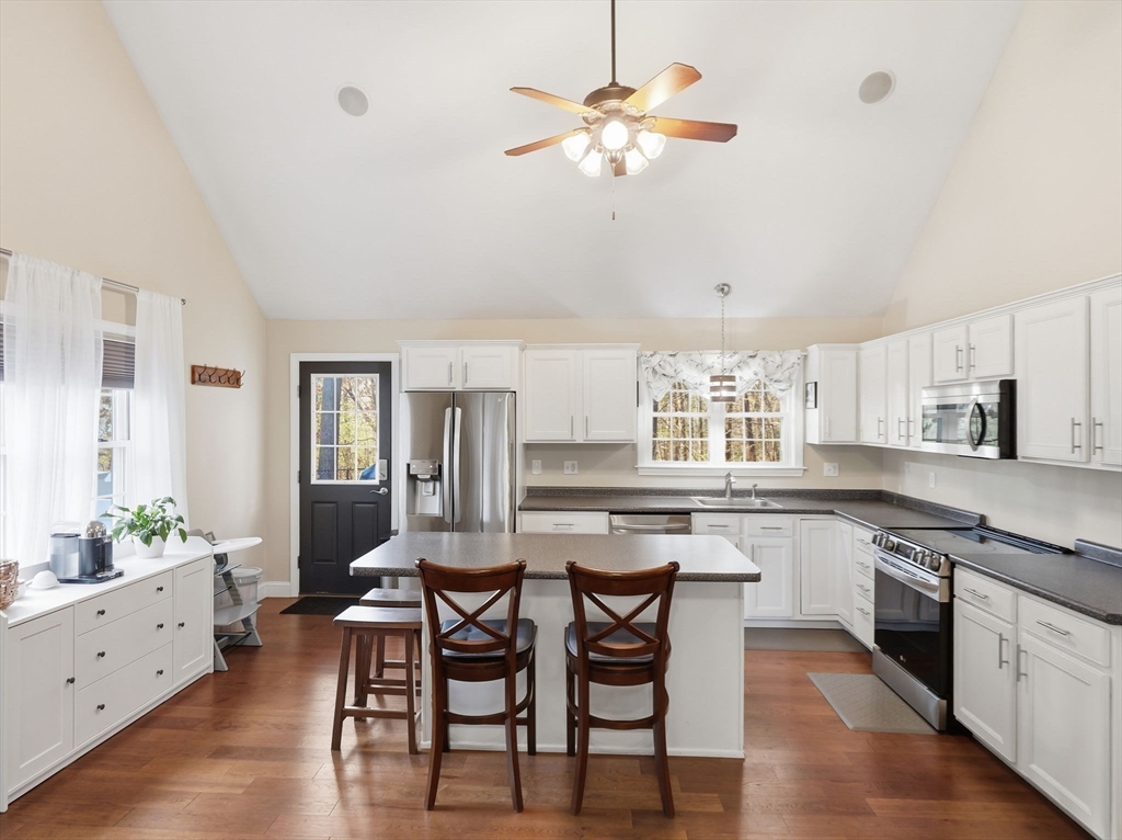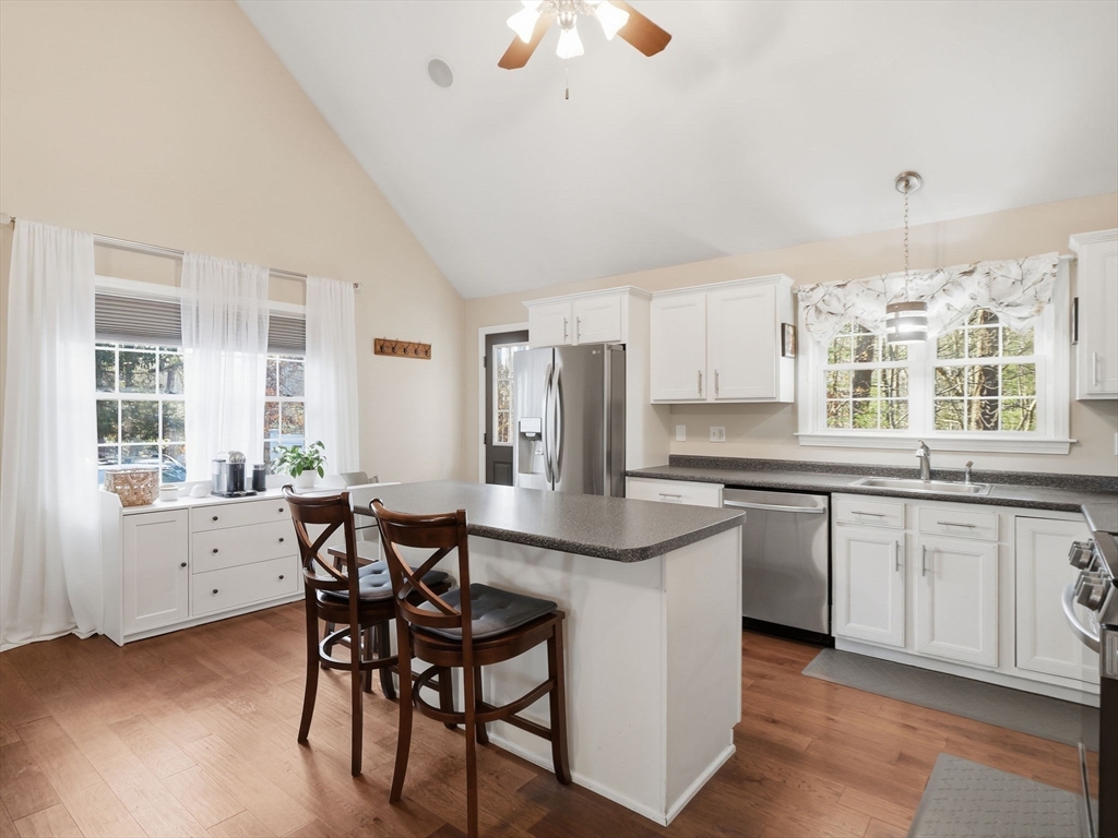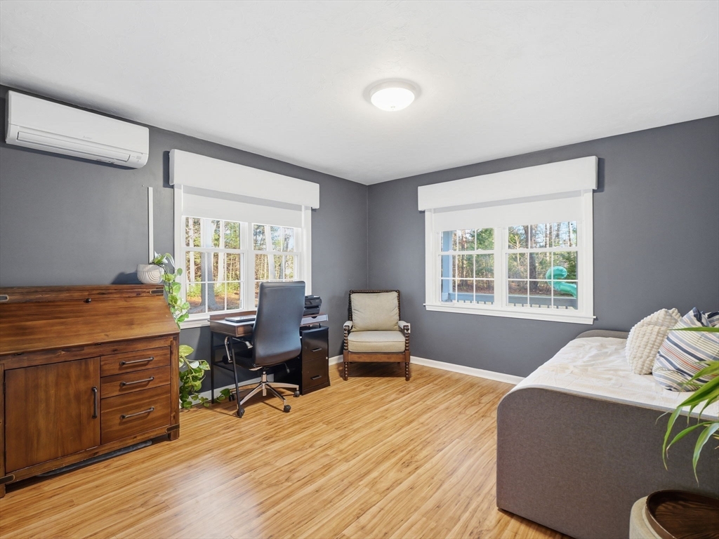 Welcome home to this stunning contemporary cape set on 1.6 acres! Enjoy the summers on your farmer's porch overlooking your own personal Koi Pond. This home is a must see! It features an open floor plan, soaring cathedral ceilings, surround sound, spacious kitchen with island seating, large family room with wood burning fireplace, and primary suite located on the second floor with private bathroom. There is also a gorgeous, finished basement with separate laundry room. The home comes complete with generator hookup, water softener system, radiant floors, super-efficient central boiler outdoor furnace and ductless mini splits. Large barn and shed with a fully fenced in backyard offers supreme privacy. Fantastic location for commuters.