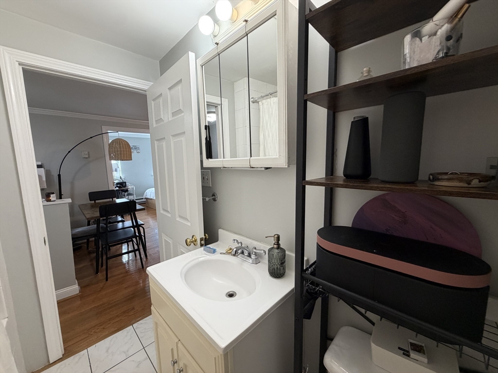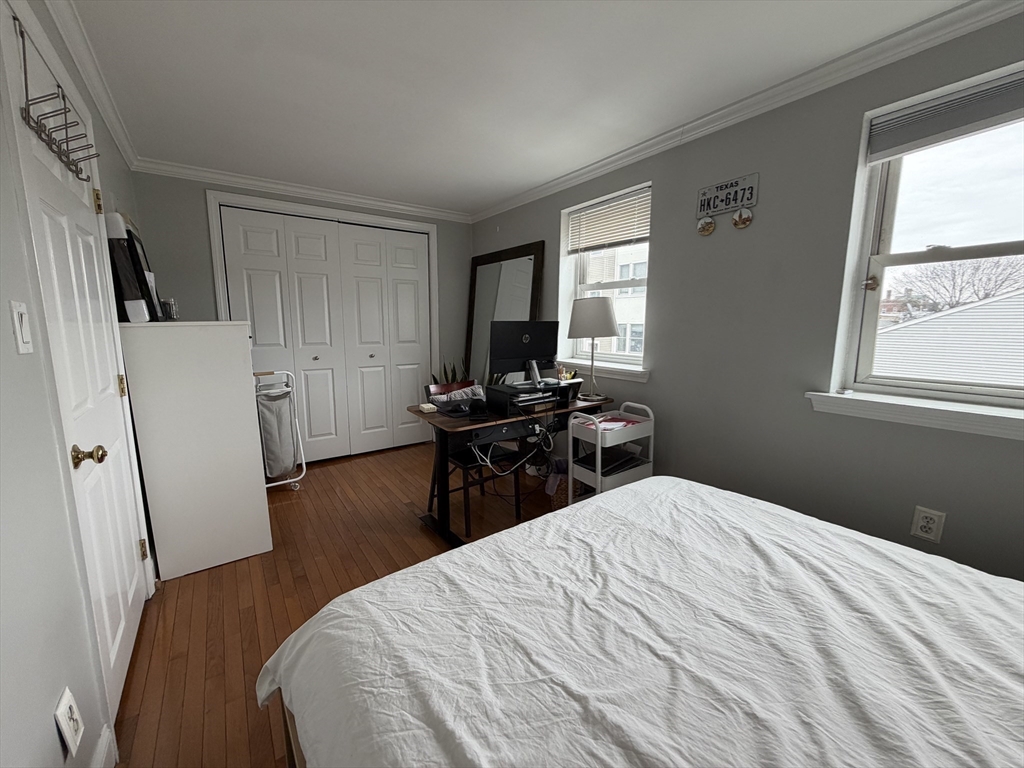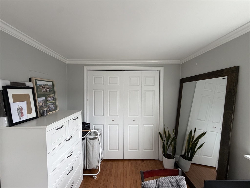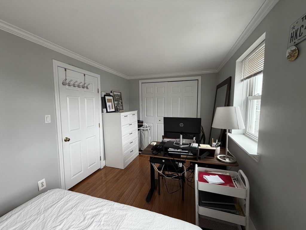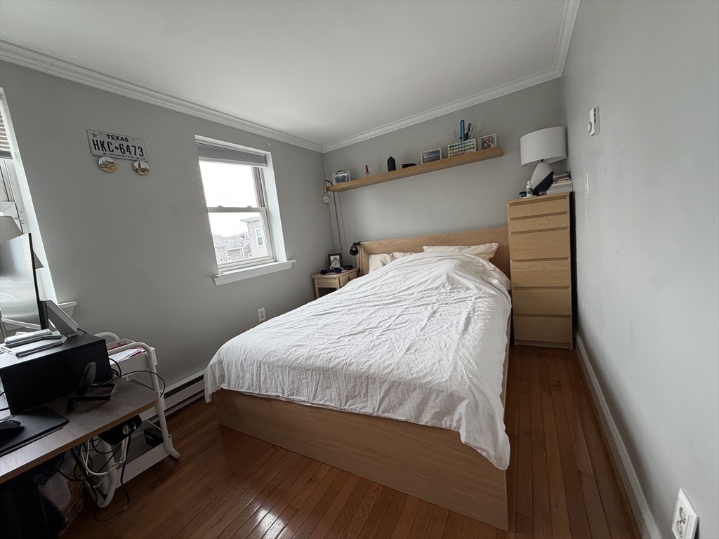 Top floor, lovely 1 bed 1 bath available 8/1. This bright unit features an open floor plan with a modern kitchen and updated bath. Spacious bedroom includes an oversized closet with custom built-ins for excellent storage. Enjoy a private back deck, perfect for relaxing or entertaining. Additional amenities include a dedicated basement storage unit and common laundry in the basement. Ideally located in South Boston with easy access to local restaurants, shops, and cafes—just a short walk to Tatte and Park City. Great opportunity to live in a well-maintained home in a convenient and vibrant neighborhood.