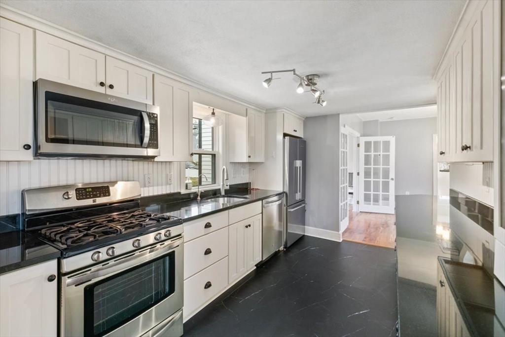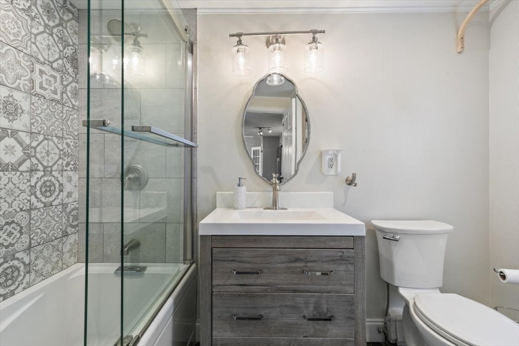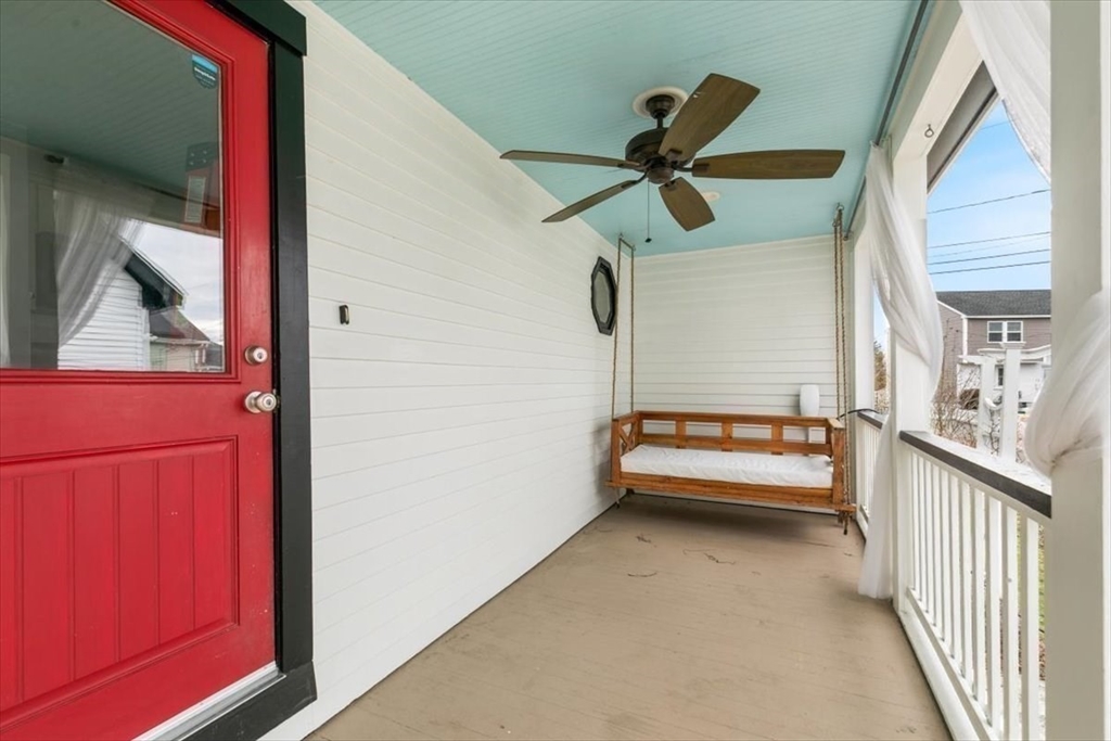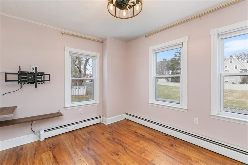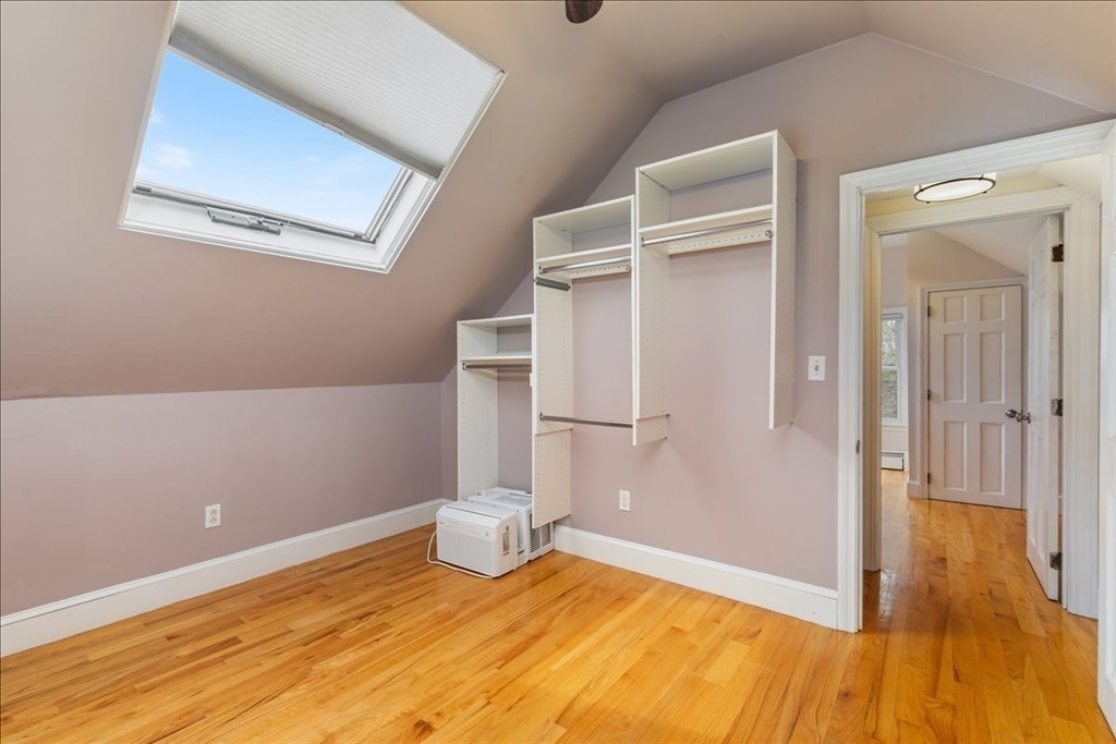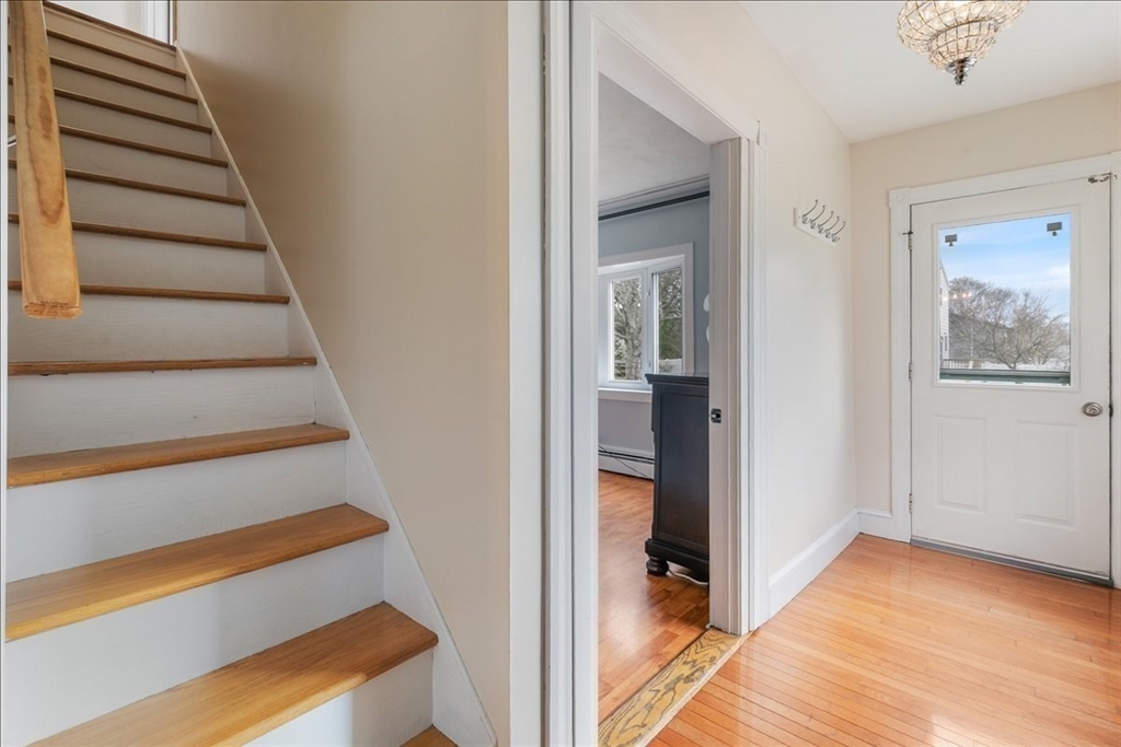 Welcome to 18 Sherman Place, a charming home on a quiet cul-de-sac in desirable Woburn Highlands. Inside offers a bright, airy layout w/ hardwood floors, a cozy living room, & a well-appointed galley kitchen w/ ample cabinetry & dining space leading out to the farmer's porch w/ swing which is the perfect spot to relax on a summer's evening. The first-floor bedroom adds flexibility, while the add'l upstairs bedrooms allow more privacy w/ vast skylights for natural sunlight. Enjoy a fenced, level yard perfect for entertaining, pets, or play. Plus storage shed. The detached barn is a standout, finished w/ LVP flooring, recessed lighting, & ductless mini split - ideal for a home office, studio, gym, or potential ADU. EV charger & solar panels help reduce electric costs. Convenient to shopping & dining. Walk to Express Bus to Downtown Boston. Easy access to I-93, I-95, Logan Express, & Commuter Rail. Open House will be held on Sat 4/11 1-3 PM & Sun 4/12 10-12 PM. Offers due Mon 4/13 by 12PM