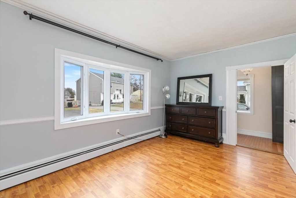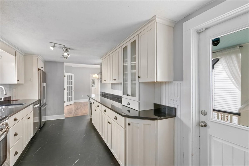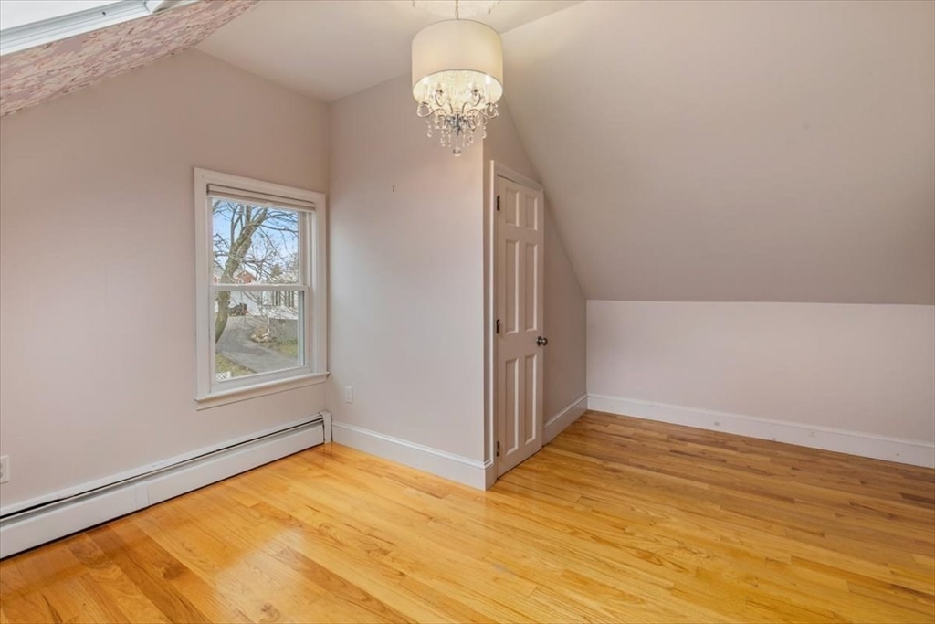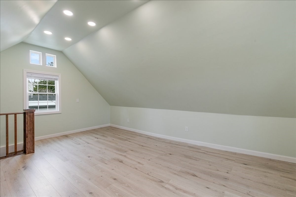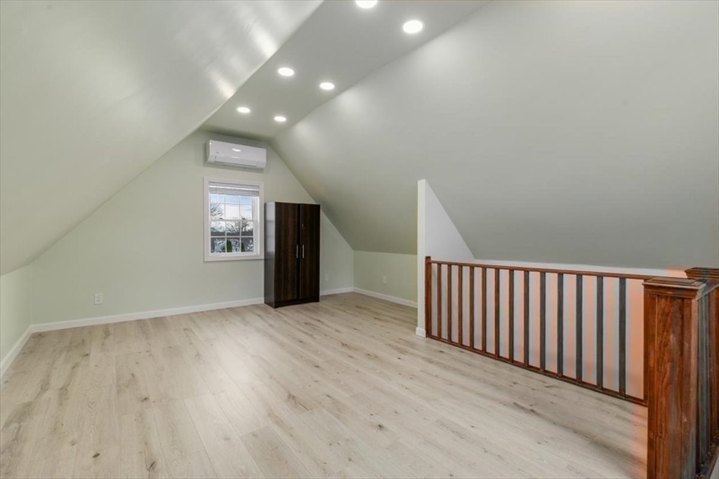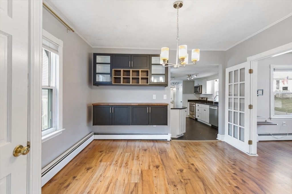 Welcome to 18 Sherman Place, a charming home on a quiet cul-de-sac in desirable Woburn Highlands. Inside offers a bright, airy layout w/ hardwood floors, a cozy living room, & a well-appointed galley kitchen w/ ample cabinetry & dining space leading out to the farmer's porch w/ swing which is the perfect spot to relax on a summer's evening. The first-floor bedroom adds flexibility, while the add'l upstairs bedrooms allow more privacy w/ vast skylights for natural sunlight. Enjoy a fenced, level yard perfect for entertaining, pets, or play. Plus storage shed. The detached barn is a standout, finished w/ LVP flooring, recessed lighting, & ductless mini split - ideal for a home office, studio, gym, or potential ADU. EV charger & solar panels help reduce electric costs. Convenient to shopping & dining. Walk to Express Bus to Downtown Boston. Easy access to I-93, I-95, Logan Express, & Commuter Rail. Open House will be held on Sat 4/11 1-3 PM & Sun 4/12 10-12 PM. Offers due Mon 4/13 by 12PM