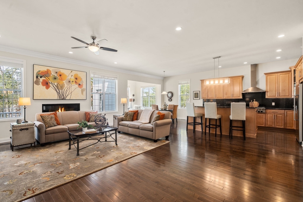 Welcome to easy, elegant living in this exquisitely appointed freestanding 55+ home in sought-after Regency at Stow! Enjoy an exceptional blend of comfort and style, featuring soaring ceilings enhanced by spectacular architectural detail. The great room is the heart of the home, with fireplaced family room, formal and casual dining, and granite kitchen with generous island that flows seamlessly into the living areas. The sunroom fills the space with natural light and opens to a spacious deck—perfect for relaxing or outdoor gatherings. The expanded primary suite is a true retreat, offering dual walk-in closets and a luxurious bath with tiled, jetted shower, double sinks, and spa tub. A guest bedroom with ensuite bath and a dedicated home office create comfort & flexibility. The finished lower level adds space for media and exercise. This fabulous, active adult community features include heated pool, clubhouse and gym, with proximity to area golf, dining and amenities!