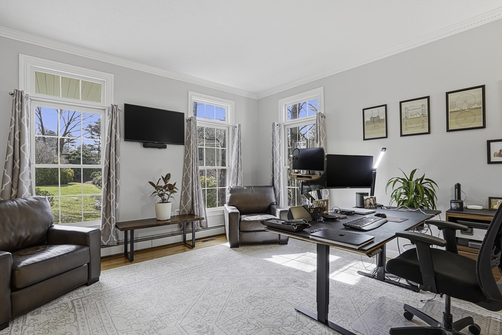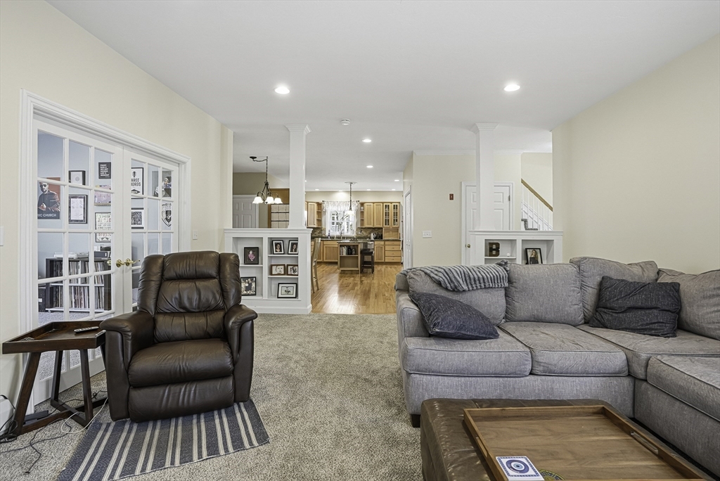 Stately Southern-style custom Colonial with double front porches, set at the end of a cul-de-sac in one of Milford’s premier neighborhoods. This well-maintained home offers expansive living space with exceptional craftsmanship throughout. A welcoming foyer opens to formal living and dining rooms, a spacious fireplaced family room, playroom, and a custom kitchen ideal for everyday living and entertaining. Features include hardwood floors, custom built-ins, detailed moldings, mudroom, half bath, and a screened porch overlooking the private rear yard. The second level offers four generous bedrooms and two full baths, including a primary suite with sitting area, gas fireplace, walk-in closet, and updated bath with jetted tub and tiled shower. Bonus space above the three-bay garage includes a private office/home gym and media room. A warm, inviting home with versatility and style—ready for its next chapter.