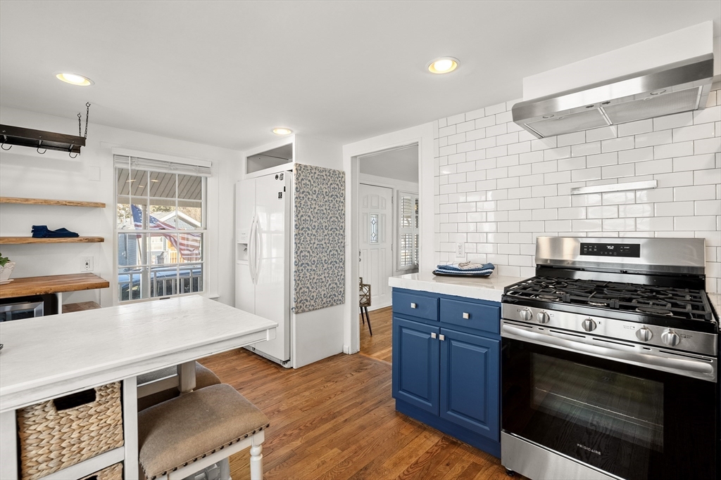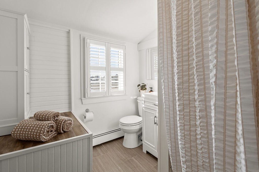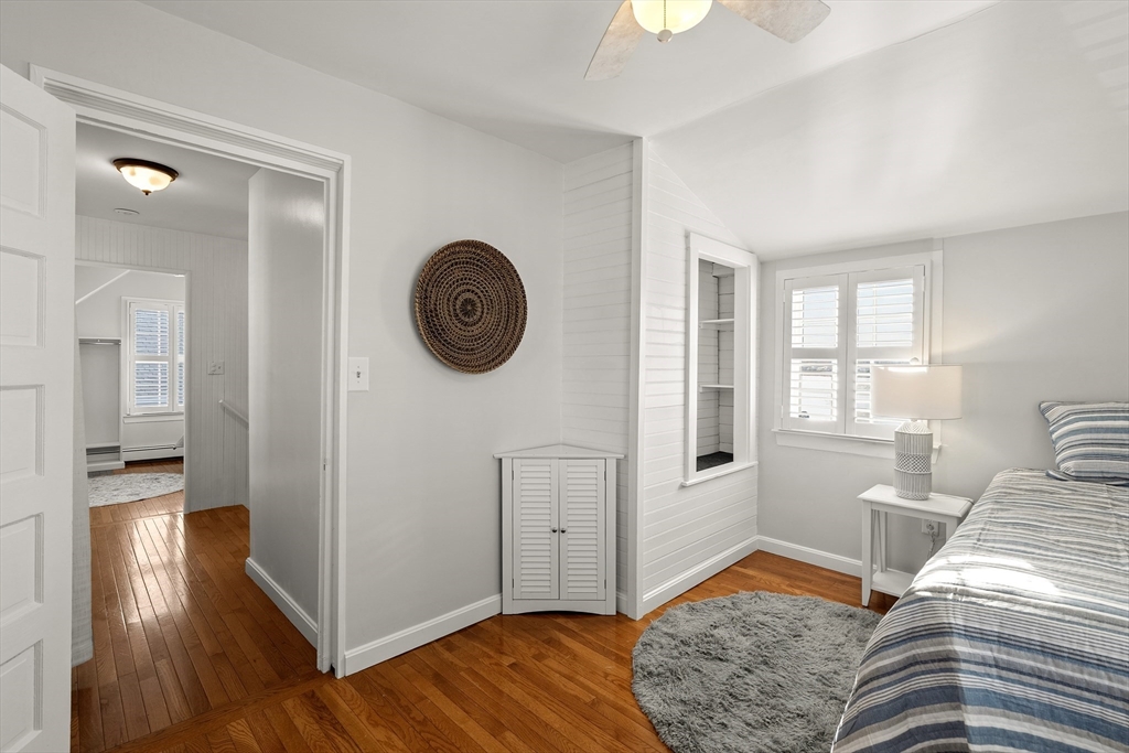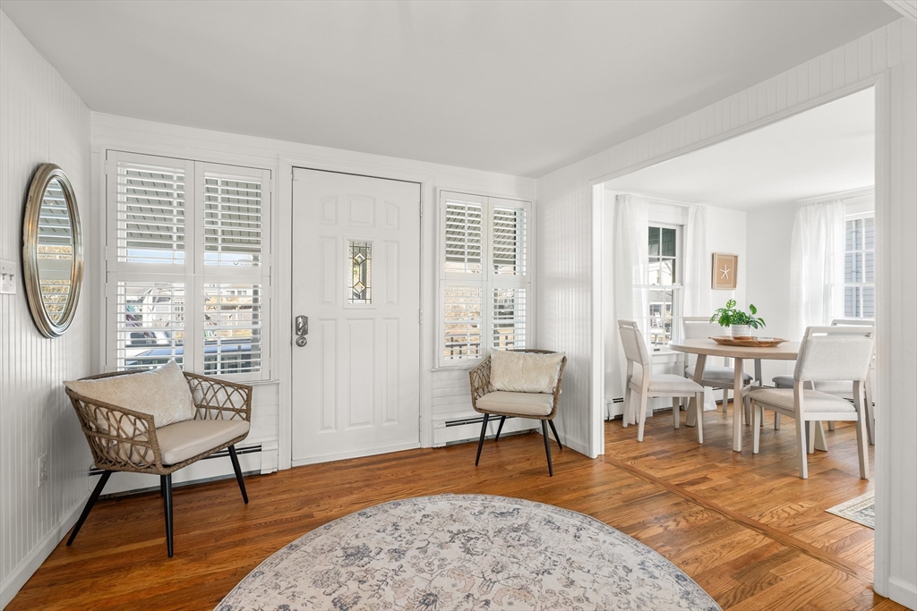 Wake up to sounds of sea and watch the sun rise every morning in this coastal escape. Endless updates throughout, beginning with your entryway outfitted with custom cabinetry, newly refinished hardwood floors and views of the water through the sliding back door. The first floor showcases a beautifully renovated kitchen with stone countertops and stainless appliances, a spacious living room anchored by a fireplace & a sun-filled room that opens directly to your private backyard oasis. Upstairs, you’ll find two generous bedrooms, a stylish & updated full bath and an additional space perfect for an extra guest or cozy sitting area. Private, fenced in space out back to stick your chair in the sand, entertain on your brand new trex deck or jump in your kayak and ride over to The Drift for a bite to eat. With stunning views of the bay and about .5 mile walk to Nantasket Beach-this exceptional property offers the best of Hull’s waterfront lifestyle. OFFERED FULLY FURNISHED!