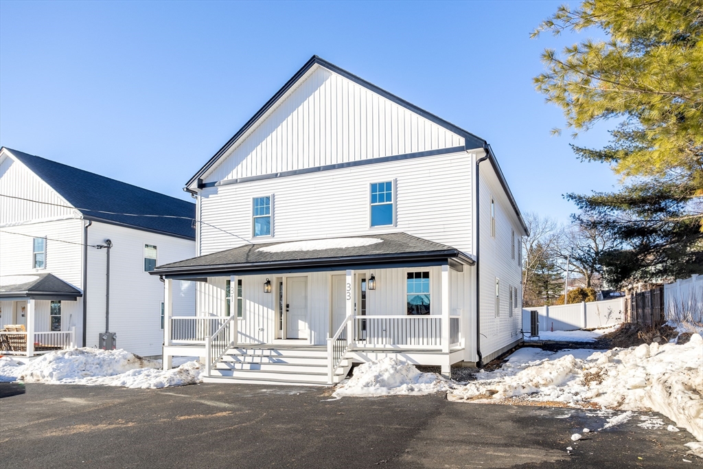 New construction townhouse-style rental offering modern design and quality finishes throughout. This spacious 3-bedroom, 2-bath unit features approximately 1,450 sq ft of living space with an open concept layout. The main level includes a bright living room with fireplace and access to a composite deck, oak hardwood flooring, recessed lighting, and is filled with natural light. The chef's kitchen features upgraded cabinets, granite/stone countertops, stainless steel appliances, pantry, and a large center island open to the dining area. A full bathroom is conveniently located on the first floor, while the second floor includes three bedrooms and another full bathroom. Additional features include heat pump heating with A/C, in-unit laundry hookups, mudroom entry, and two assigned off-street parking spaces. Make this stunning new construction apartment yours today!!