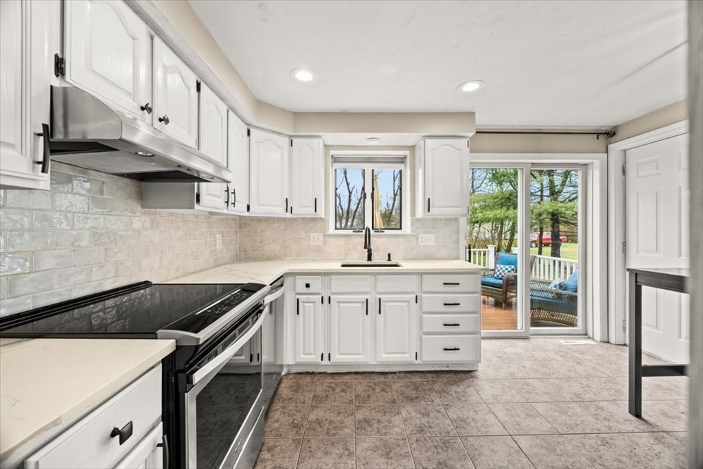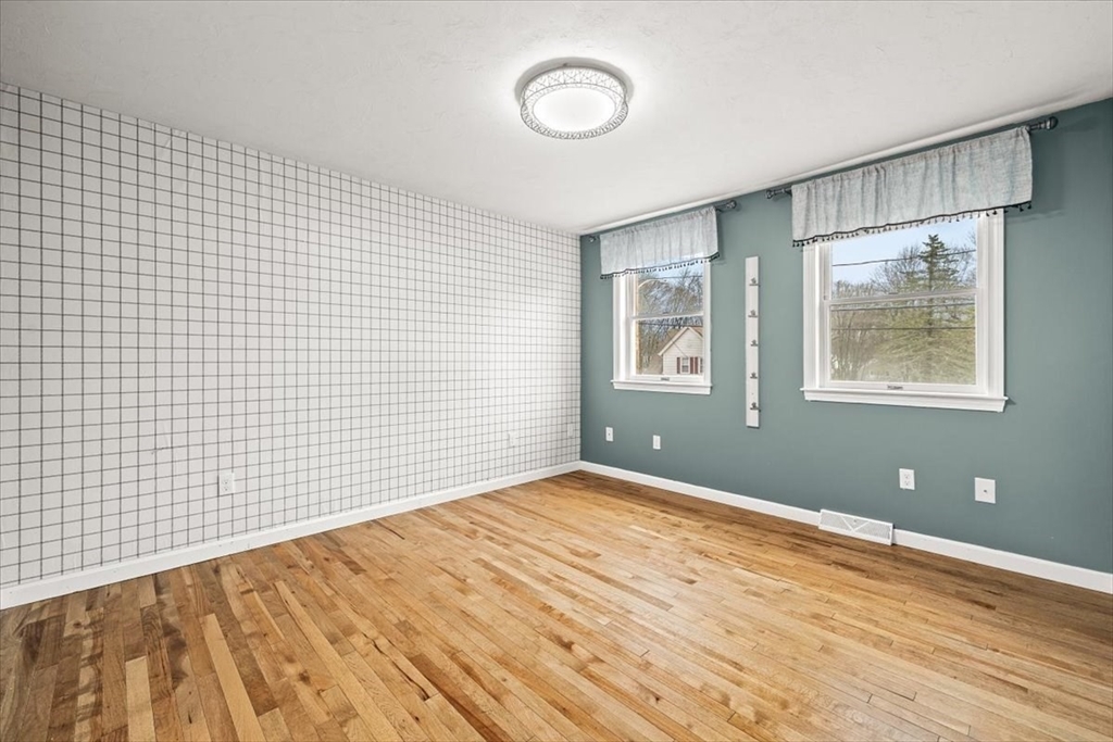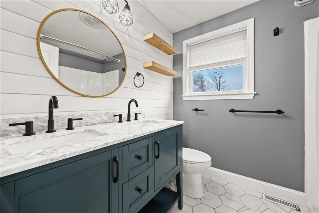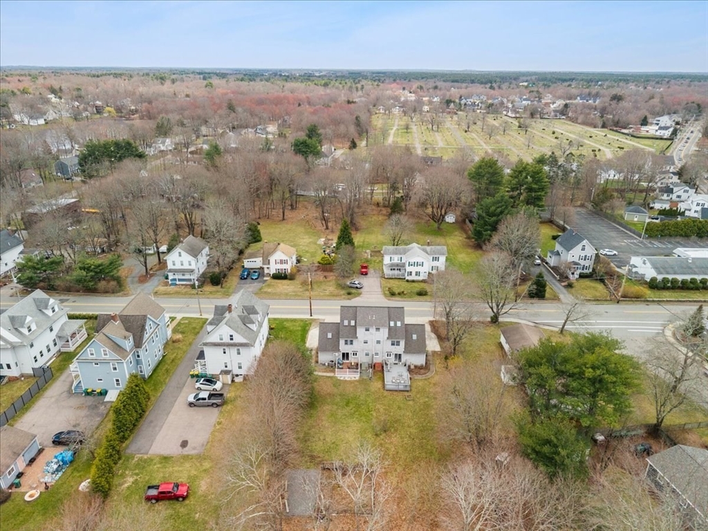 Move right into this beautifully updated duplex-style townhome with a one-car garage, minutes from the town center and commuter rail with easy highway access. With major systems replaced, you can move right in and enjoy the home with confidence for years to come. The first floor offers a bright living room, half bath, and updated eat-in kitchen with quartz countertops and appliances. Upstairs has two generously sized bedrooms and an updated full bathroom. One of the bedrooms leads to a versatile bonus room that can easily serve as a home office, nursery, or spacious dressing room. The entire third floor is dedicated to the private primary suite, complete with a full bathroom, custom barn closet doors, and skylights with blackout shades that bring in natural light while maintaining privacy and comfort. 2022 updates: roof, HVAC, water heater, appliances, LED lighting, blackout shades, and hickory flooring. Large flat backyard with a garden already set up for its next owner.