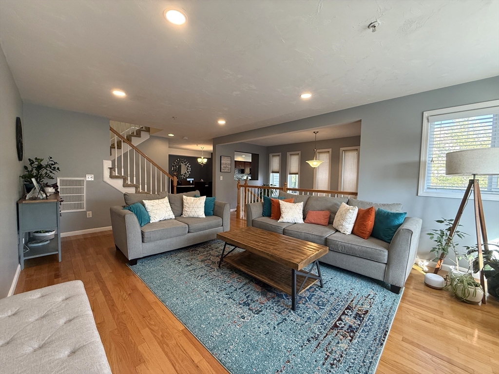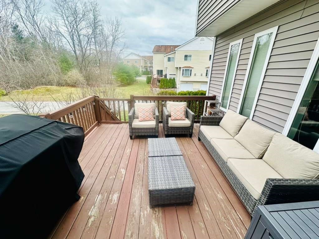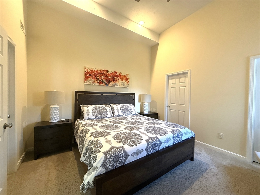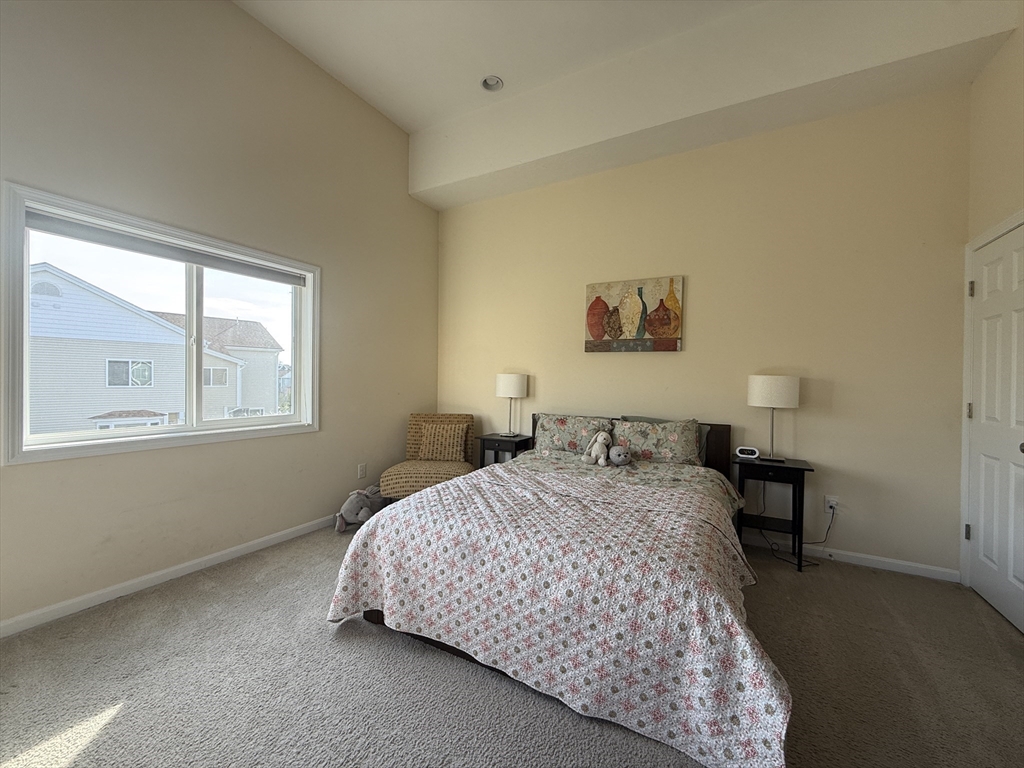 Beautifully maintained, townhouse in a highly desirable community. Open floor plan on the main level featuring living room with gas fireplace, dining area, kitchen & half bath with in-unit washer/dryer. The kitchen offers granite countertops, SS appliance, center island, & access to a private deck. Hardwood flooring throughout the main living areas. The second floor has the Primary bedroom with vaulted ceiling, walk-in closets, fireplace & en-suite bath. A spacious second bedroom with jack and jill bathroom, an additional bonus room complete the 2nd floor. Loft area is suitable for office or play area. The finished basement offers additional space for bedroom, office, gym, or media room. Two-car attached garage with EV charger plus additional parking. No smoking. Small dogs are negotiable. Conveniently located near the MBTA, shopping, restaurants, parks, and fitness centers. Tenant responsible for electricity, gas, cable, water, and sewer.
