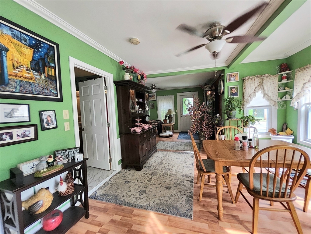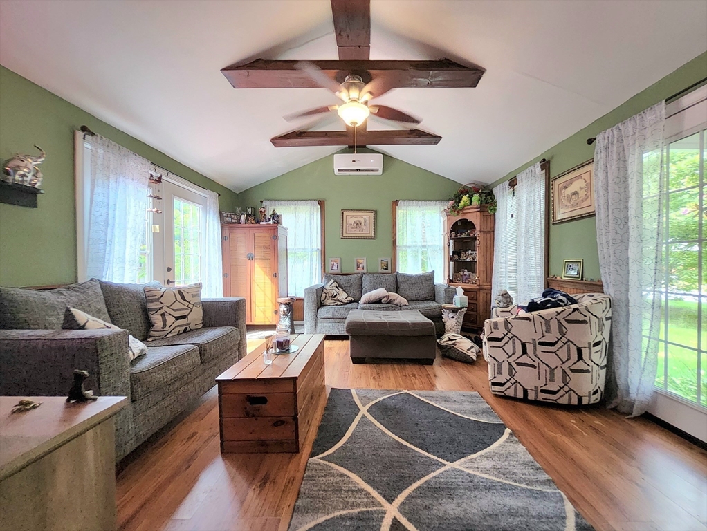Nestled in Webster, MA, this Single-Family Residence is Loaded with Character & Charm! The Living Room stands as a testament to architectural character, featuring a vaulted ceiling that amplifies the sense of space, and the rustic charm of a beamed ceiling, but could also be a 1st floor Primary Bedroom with access to your own private porch & backyard deck! Large Cabinet packed kitchen w/ separate Dining space featuring crown molding! A 2nd smaller Living Room & Large bathroom featuring Jetted Tub & space for stackable washer & dryer! The primary bedroom is a spacious retreat, enhanced with sophisticated crown molding. Outside, the property offers a porch and deck that provide wonderful opportunities to enjoy the surrounding woods view. The property includes a attached/detached two-car garage. The yard is absolutely stunning in Spring & Summer, loaded with perennial flower beds! Highway access is just a stone's throw away right at the end of the road! Close to All Area Amenities!