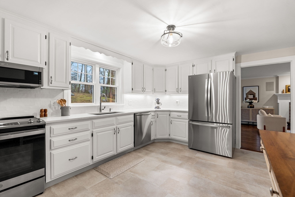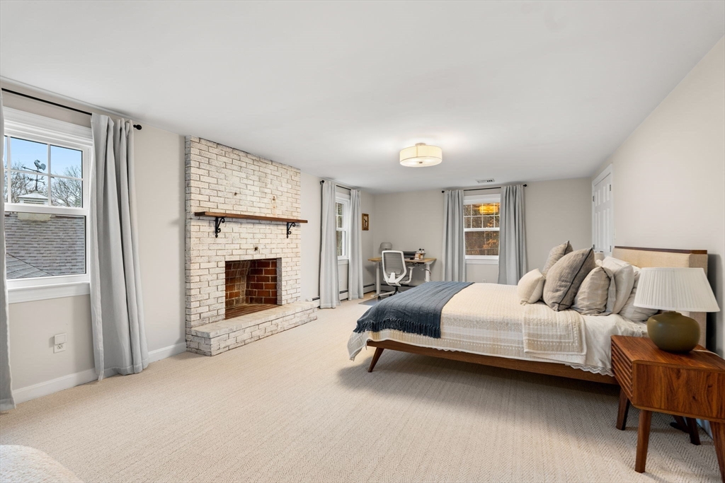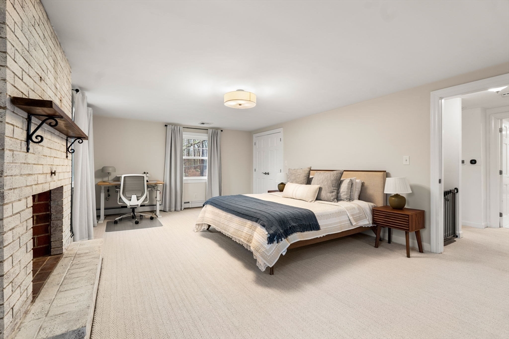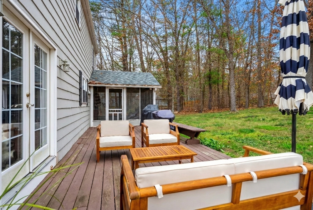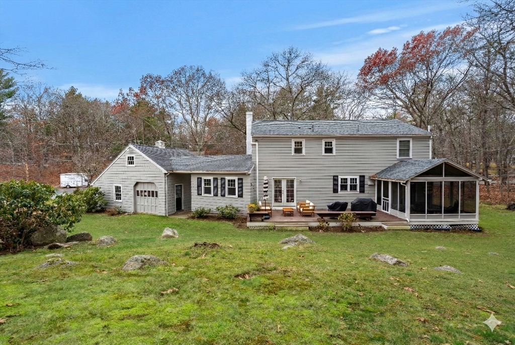 This recently transformed Colonial is a masterpiece of modern luxury, positioned on a nearly acre-sized, corner lot .The main level boasts a seamless, light-filled floor plan featuring gleaming hardwood floors, a newly renovated kitchen with quartz & stainless appliances, and expansive living and family rooms built for both entertaining and quiet connection. Sophistication extends to the dining room, which opens to a private screened porch and wood deck, offering a tranquil vantage point over the expansive and private back yard.On the second level, the spacious main suite serves as a private sanctuary, complete with a cozy wood-burning fireplace, an updated bath, and walk-in closet. Two additional large bedrooms with plush carpeting and a updates full bath ensure comfort. The versatility of this home is enhanced by the newly finished lower level, with a spacious bedroom suite, full bath and family room. With a new roof, new windows, central AC with split units this property is turnkey.