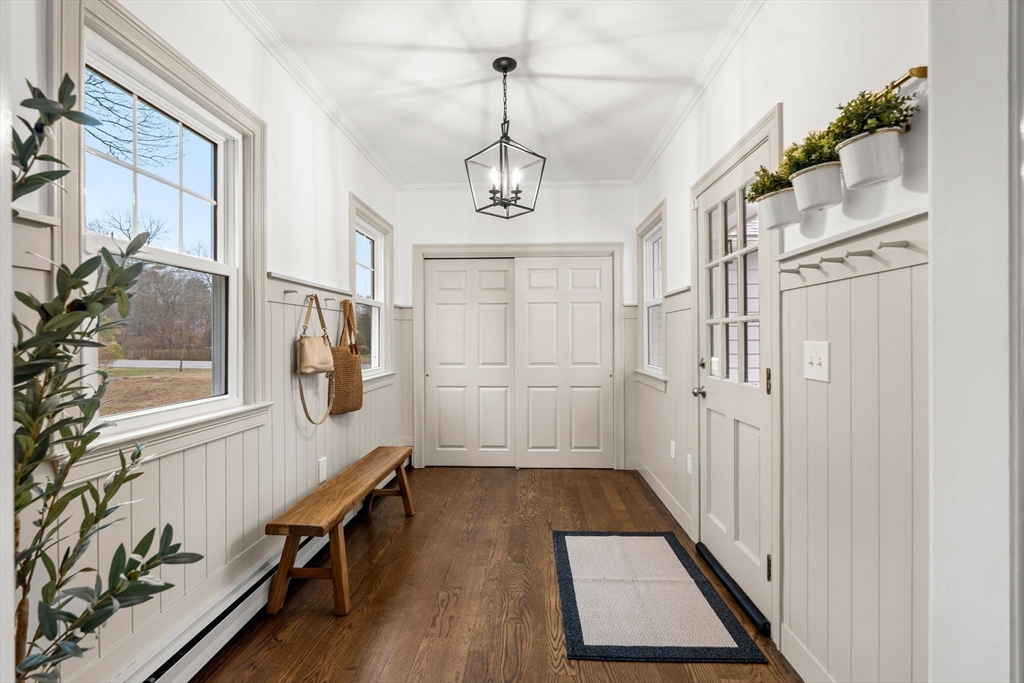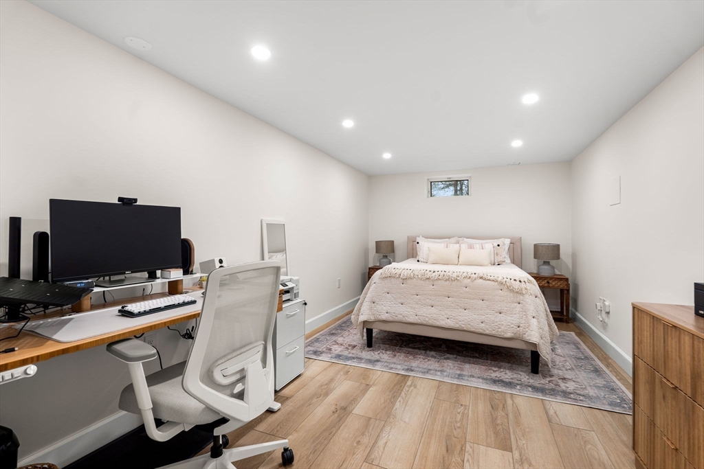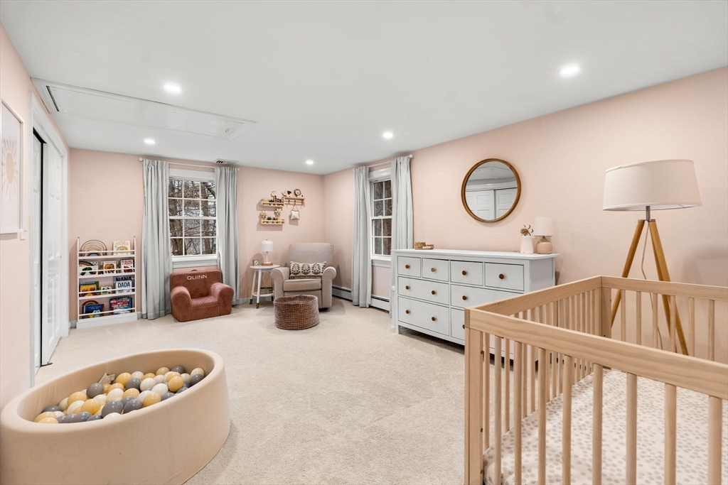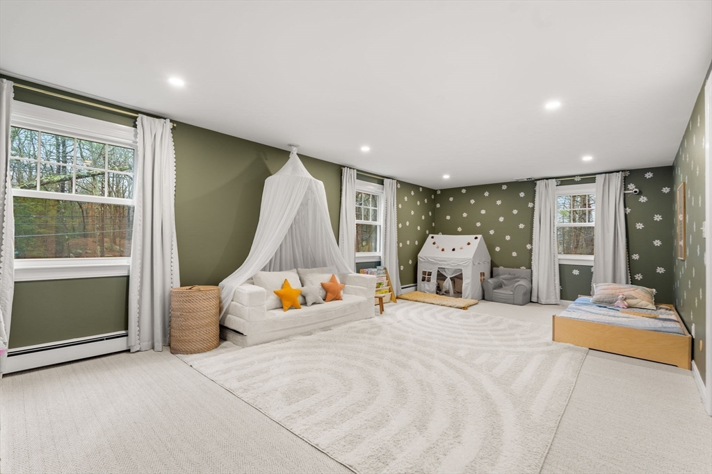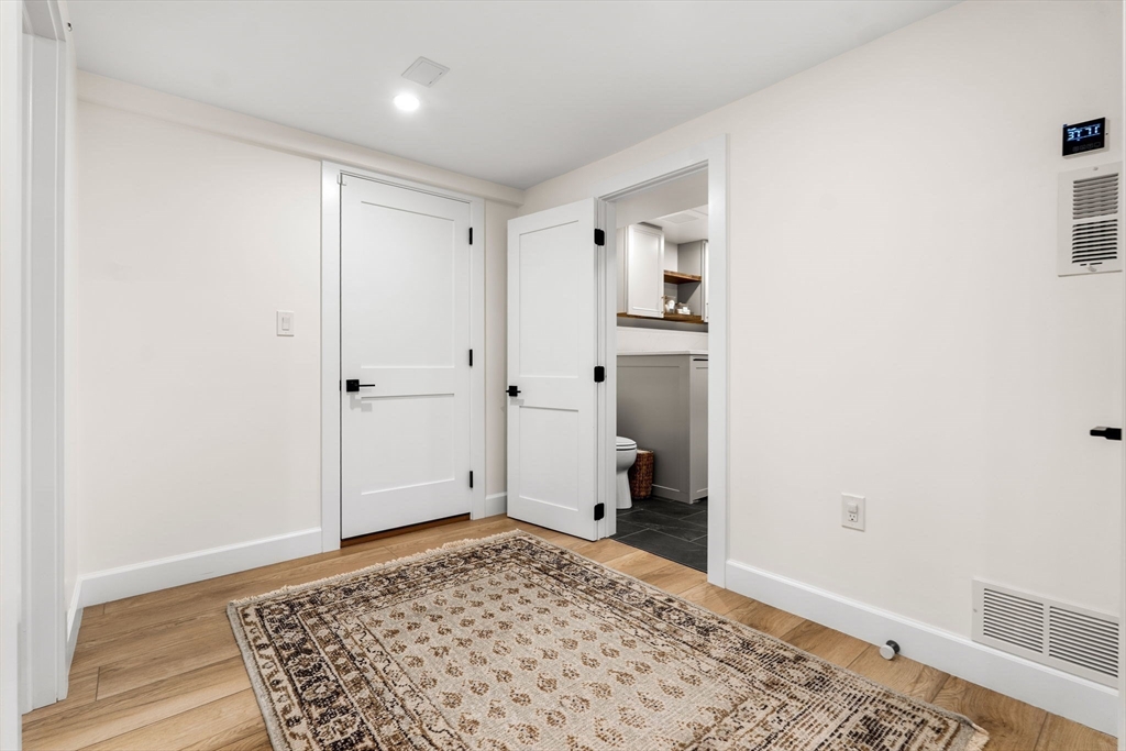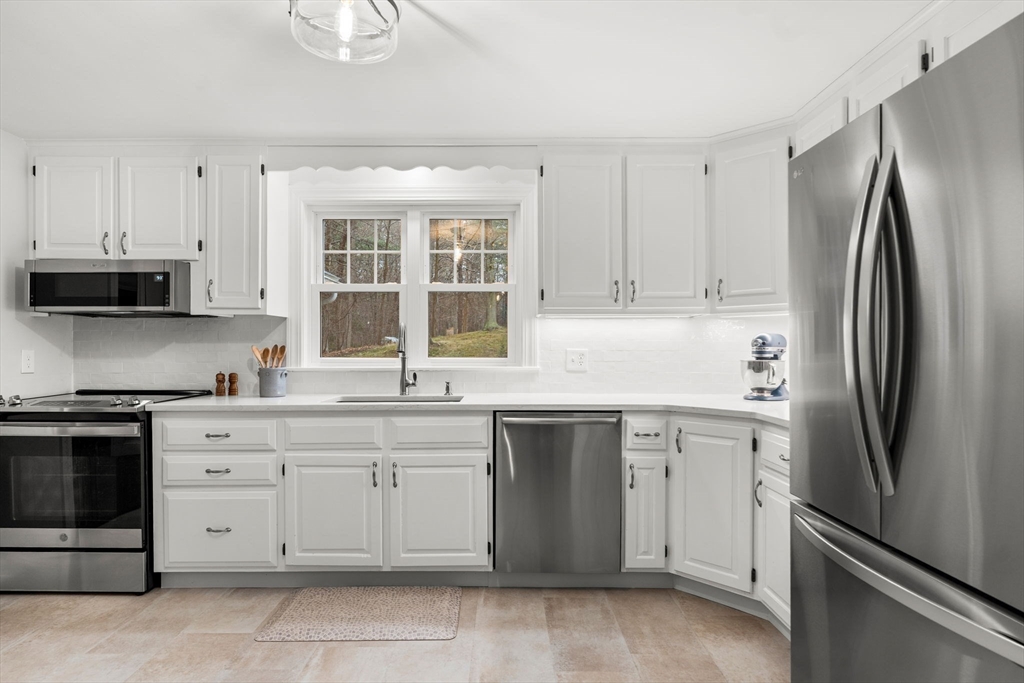 This recently transformed Colonial is a masterpiece of modern luxury, positioned on a nearly acre-sized, corner lot .The main level boasts a seamless, light-filled floor plan featuring gleaming hardwood floors, a newly renovated kitchen with quartz & stainless appliances, and expansive living and family rooms built for both entertaining and quiet connection. Sophistication extends to the dining room, which opens to a private screened porch and wood deck, offering a tranquil vantage point over the expansive and private back yard.On the second level, the spacious main suite serves as a private sanctuary, complete with a cozy wood-burning fireplace, an updated bath, and walk-in closet. Two additional large bedrooms with plush carpeting and a updates full bath ensure comfort. The versatility of this home is enhanced by the newly finished lower level, with a spacious bedroom suite, full bath and family room. With a new roof, new windows, central AC with split units this property is turnkey.