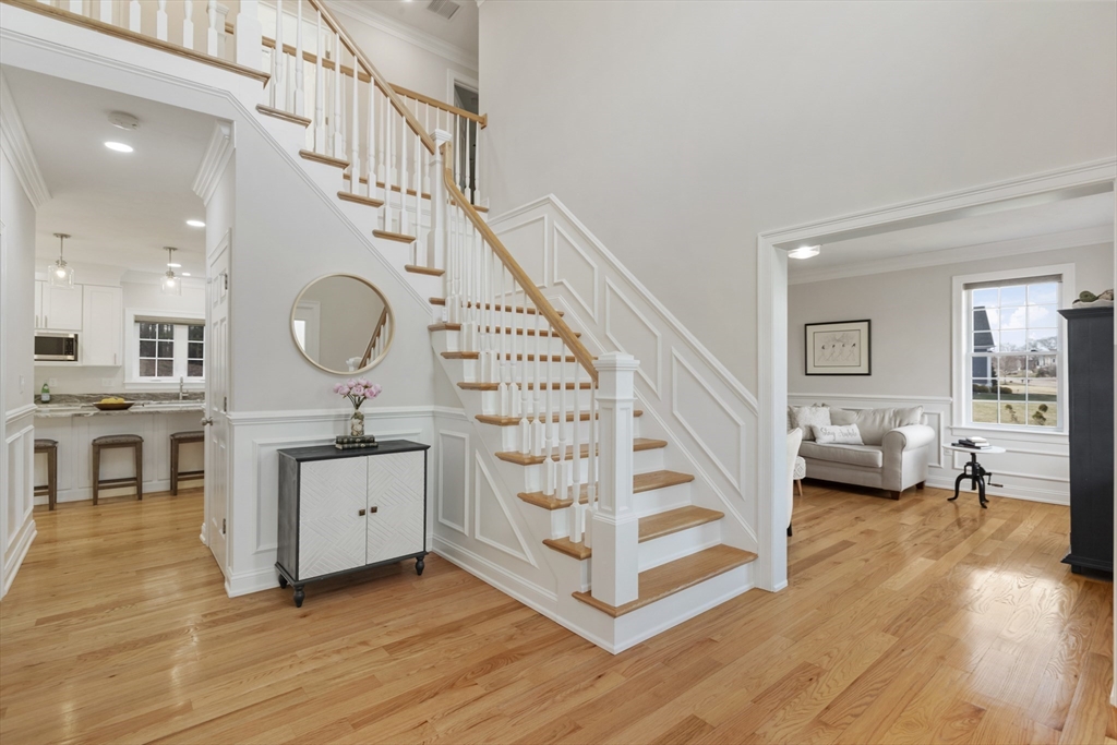Welcome to this young custom Colonial, set in a highly desirable neighborhood known for its distinctive homes and scenic views. Upon entry, find a dramatic 2-story foyer with custom moldings that immediately set the tone for this designer interior. The heart of the home is a true chef’s kitchen, featuring white shaker cabinetry, granite countertops, SS appliances, a spacious island perfect for entertaining, and stylish lighting. The open-concept layout flows seamlessly into the family room, highlighted by cathedral ceilings and a cozy gas fireplace. A sun-drenched dining room, formal living room, private office, and a well-designed mudroom with access to the 3-car garage complete the first floor. Upstairs, the expansive primary suite offers a massive walk-in closet and a serene, retreat-style bath. 3 additional generous sized bedrooms, each with ceiling fans and ample closet space, are complemented by a full bath and laundry. Enormous basement with tall ceilings ready to be finished.