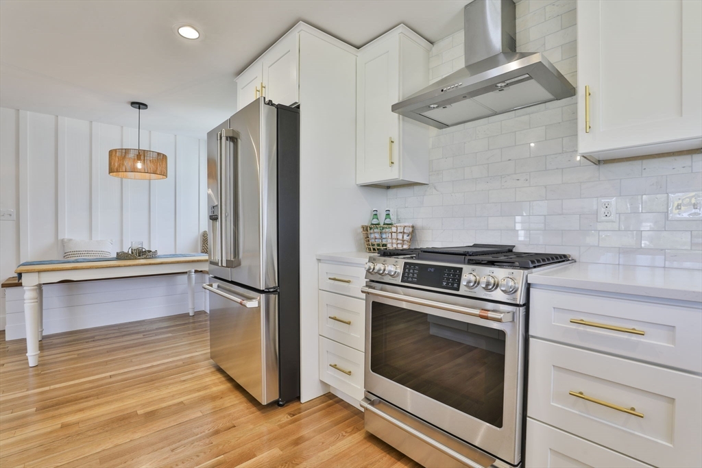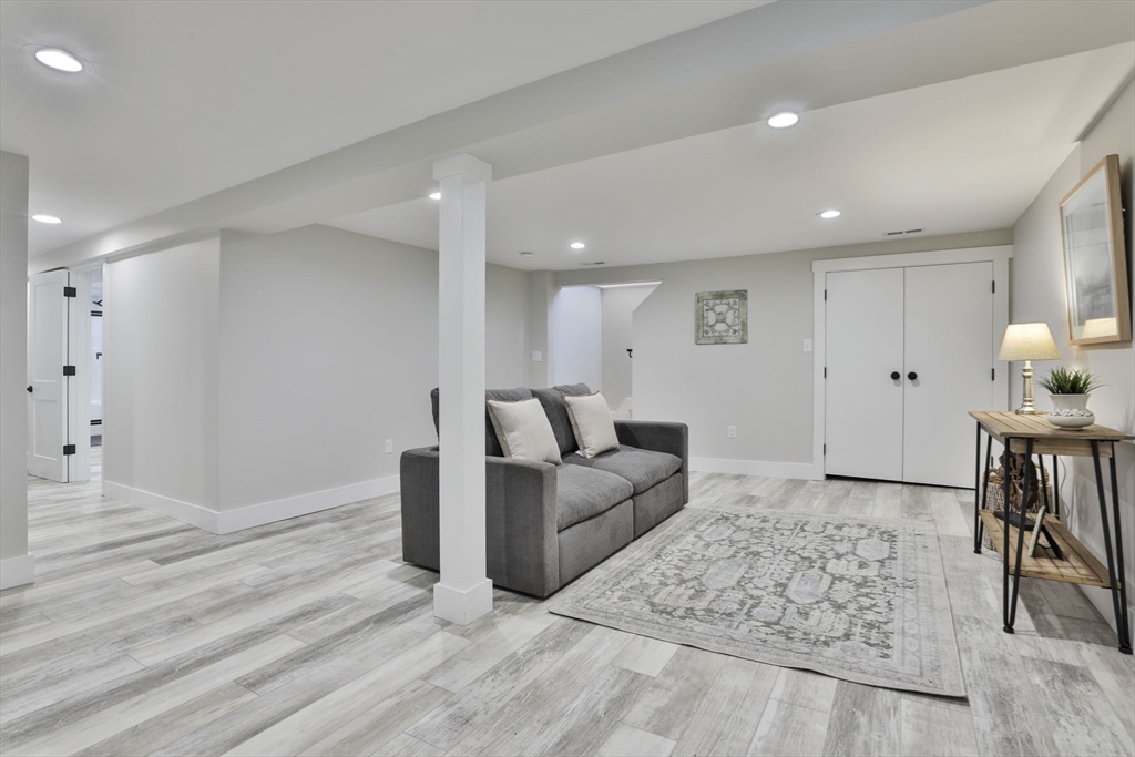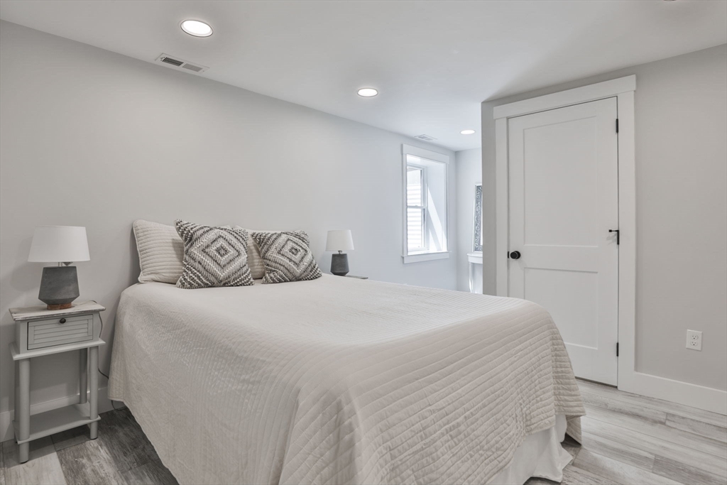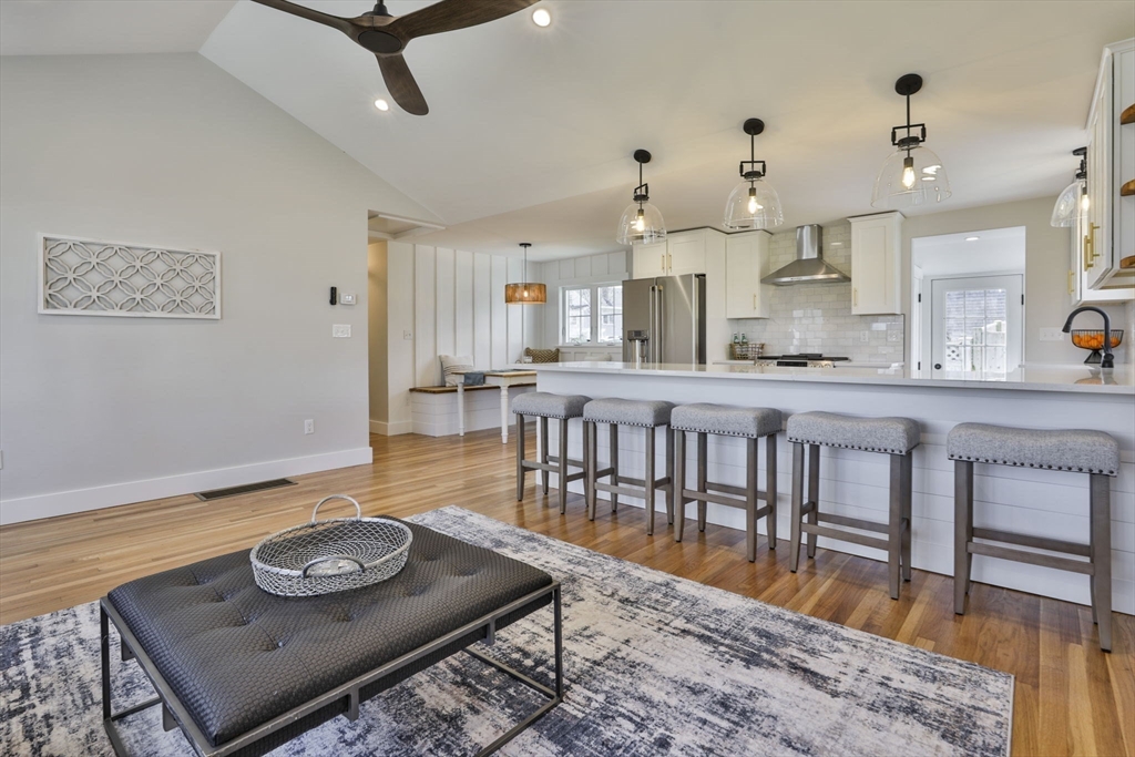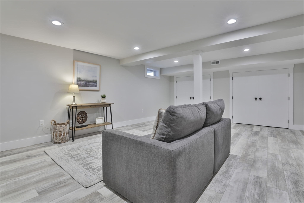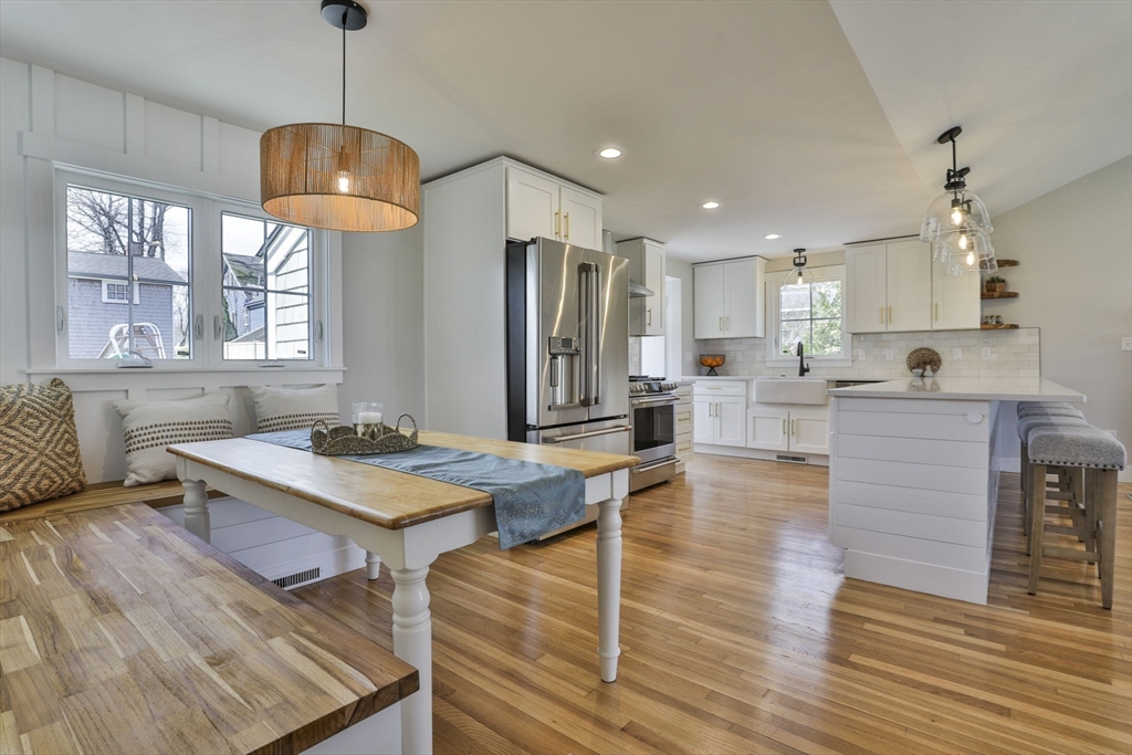 Beautifully renovated home nestled on a tree-lined street in Newburyport’s coveted North End. Embrace the charm of the neighborhood, just moments from parks, the waterfront, and the vibrant downtown culinary and retail scene. Property is currently occupied by a tenant and will be available for a new lease starting July 1st. Entertain effortlessly in the newer kitchen featuring quartz countertops, stainless Café appliances, and white cabinetry. The kitchen opens seamlessly to the living room with vaulted ceilings and a fireplace, as well as a built-in dining area with custom benches. The 1st floor primary suite offers a private bath, and dual closets. The finished lower level expands the living space with a game room, office, additional guest bedroom, and full bath. Outside, enjoy a built-in firepit, patio space, fenced yard, and 4-car off-street parking. With all newer roofing, siding, mechanical systems, driveway, and landscaping, there's nothing left to do but move right in.