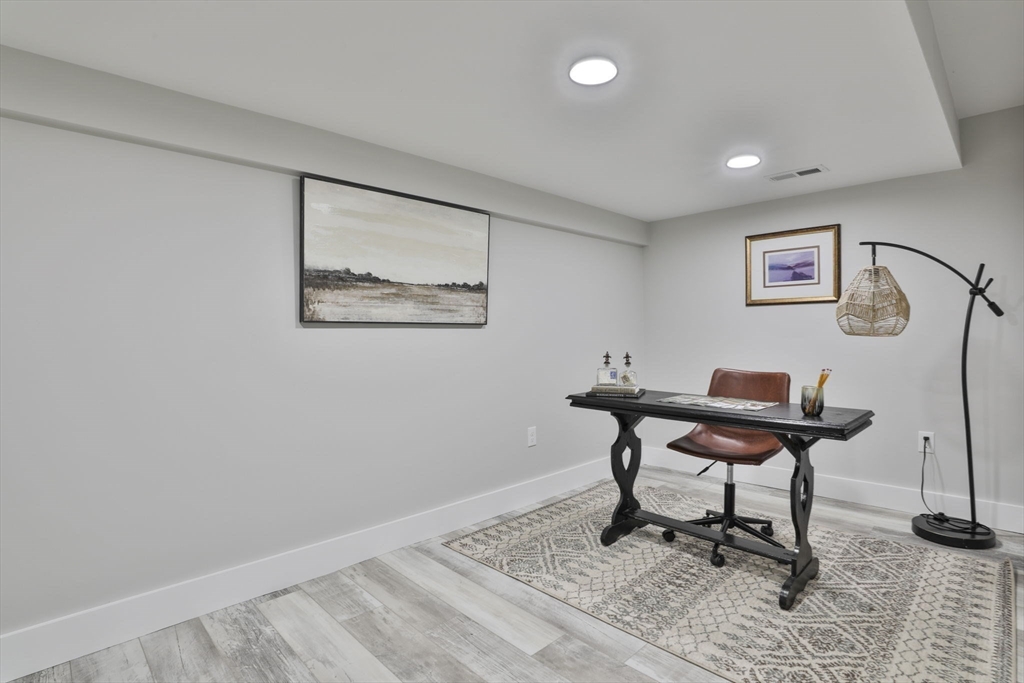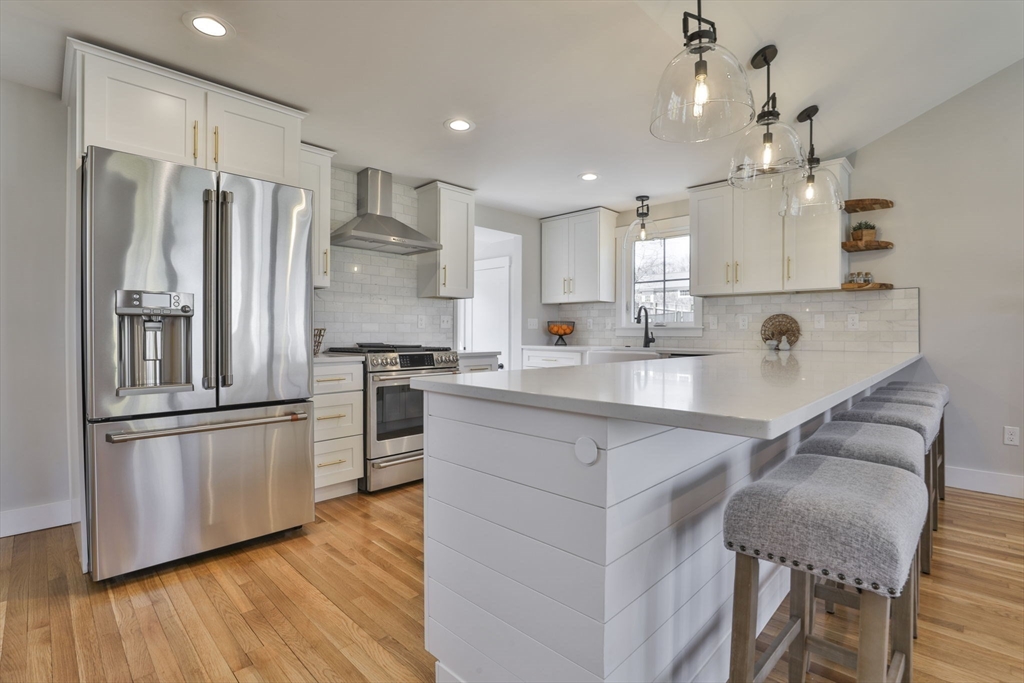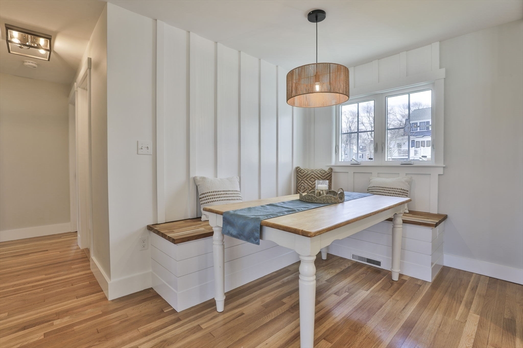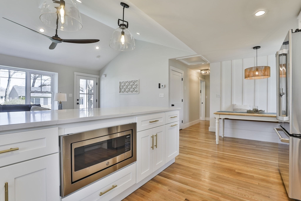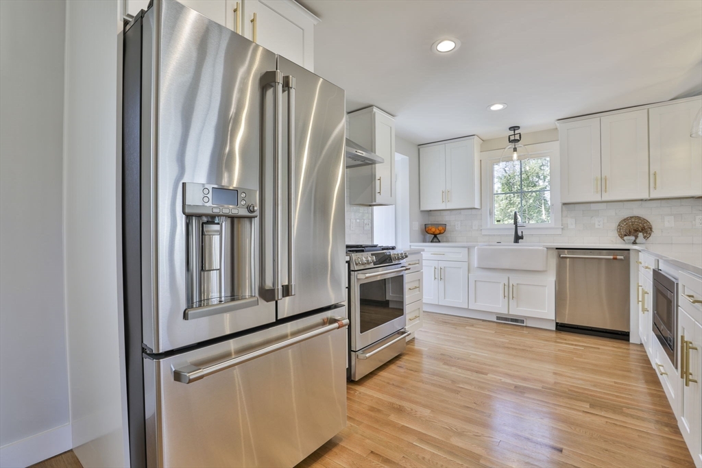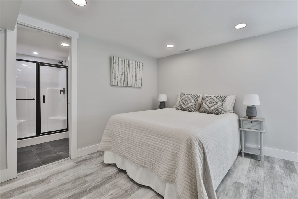 Beautifully renovated home nestled on a tree-lined street in Newburyport’s coveted North End. Embrace the charm of the neighborhood, just moments from parks, the waterfront, and the vibrant downtown culinary and retail scene. Property is currently occupied by a tenant and will be available for a new lease starting July 1st. Entertain effortlessly in the newer kitchen featuring quartz countertops, stainless Café appliances, and white cabinetry. The kitchen opens seamlessly to the living room with vaulted ceilings and a fireplace, as well as a built-in dining area with custom benches. The 1st floor primary suite offers a private bath, and dual closets. The finished lower level expands the living space with a game room, office, additional guest bedroom, and full bath. Outside, enjoy a built-in firepit, patio space, fenced yard, and 4-car off-street parking. With all newer roofing, siding, mechanical systems, driveway, and landscaping, there's nothing left to do but move right in.