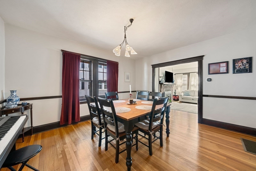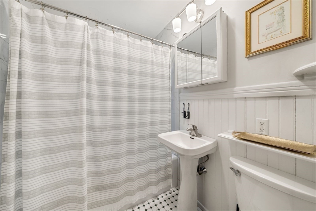 Located in the desirable Pondside neighborhood this charming first floor condominium is just moments to Jamaica Pond. Included with this 2 bedroom/1 bath home is a shared backyard with a stone patio perfect for entertaining. A large foyer leads to the living room which features a gas fireplace, a wall of windows and lovely wood trim. Adjacent is a bright sun room doubling as a home office or library. The formal dining room showcases an original built-in china cabinet, chair rail trim and an array of windows filling the space with natural light. The sunny kitchen provides stainless steel dishwasher, gas stove, stone countertops, a separate pantry and access to a back porch. Beautiful wood flooring throughout adds warmth and character. Additional amenities: central a/c, a private storage and laundry area in the basement and garage parking. This prime location allows an easy commute to Downtown or Longwood via the Jamaicaway, Orange Line T and Bus 39. Near Centre St shops and restaurants.