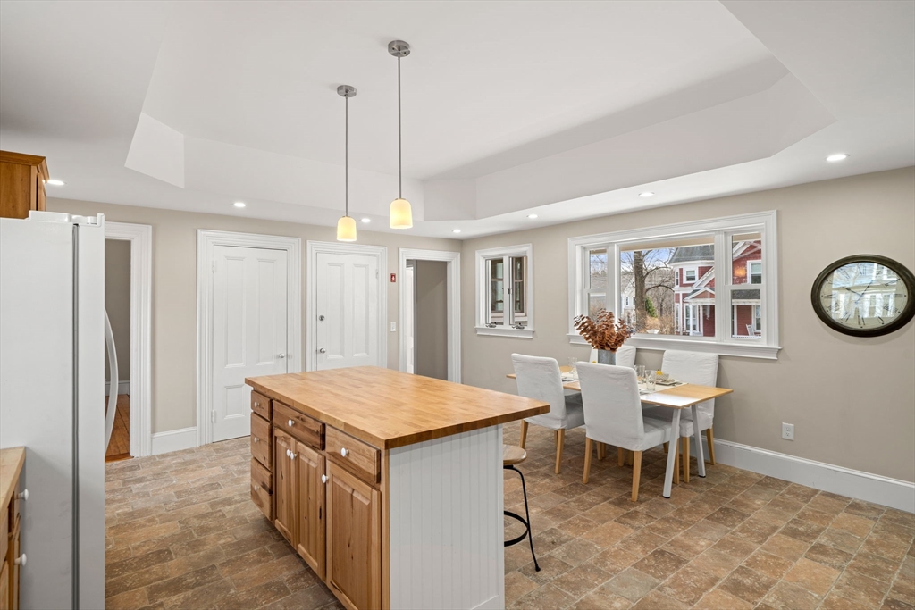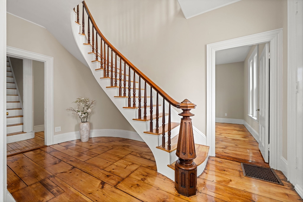 Step into history with this beautifully restored 1881 Colonial, cherished by the same family for generations. Featuring 5 bedrooms and 3 full bathrooms, this home seamlessly blends period charm with modern comfort. The spacious light-filled eat-in kitchen with center island opens onto deck - perfect for gatherings and entertaining . A formal dining room and gracious living room highlight the homes warmth, while the curved staircase and original details showcase it's rich character. Convenience meets charm with a first floor bedroom, and walk up attic offers abundant storage or future living space. The sweeping covered porch invites quiet mornings and lingering afternoons. With thoughtful restoration and timeless design, this isn't just a home - it's a legacy. Optimum potential here as the zoning allows for this property to be divided into multiple units or build an additional attached unit as well as an ADU.
