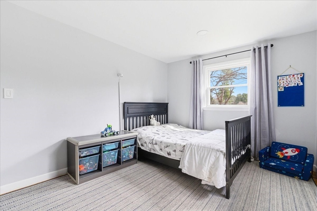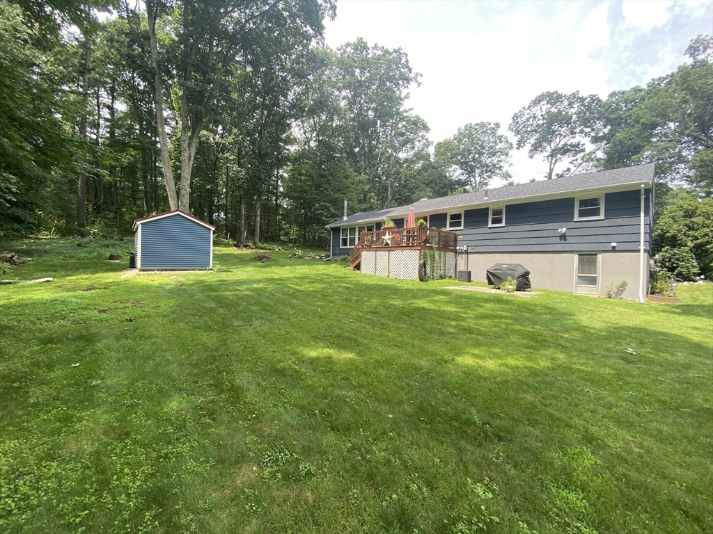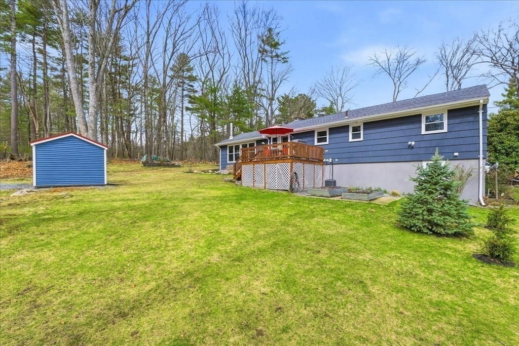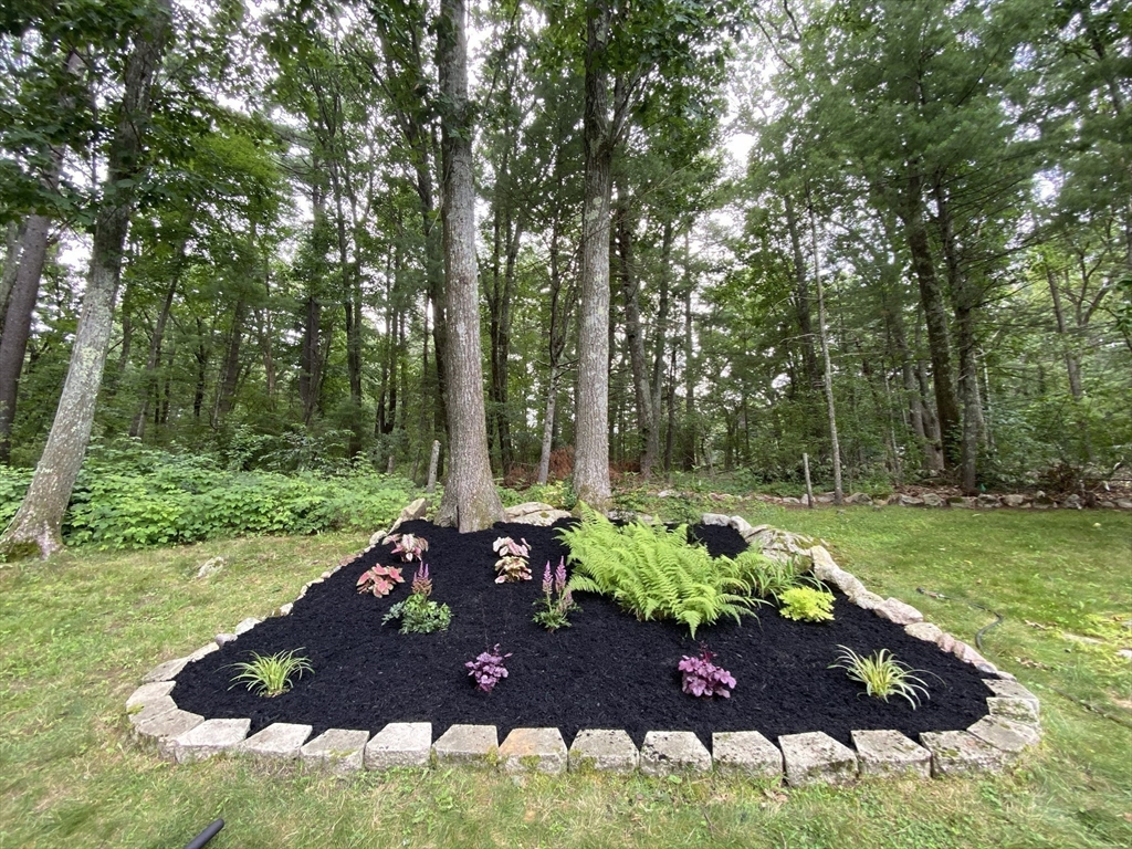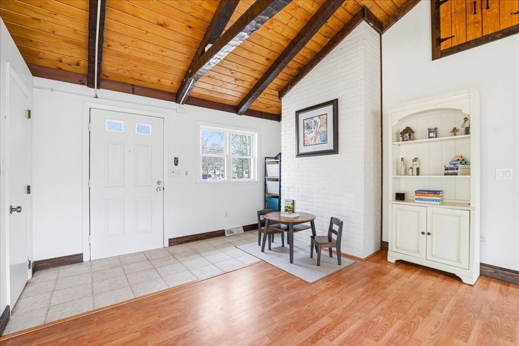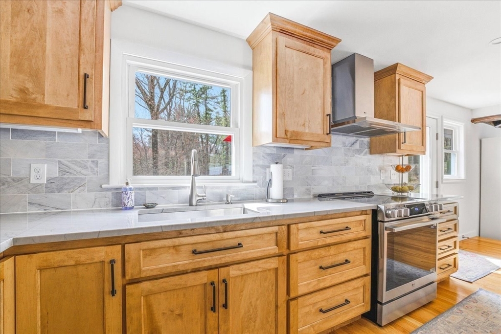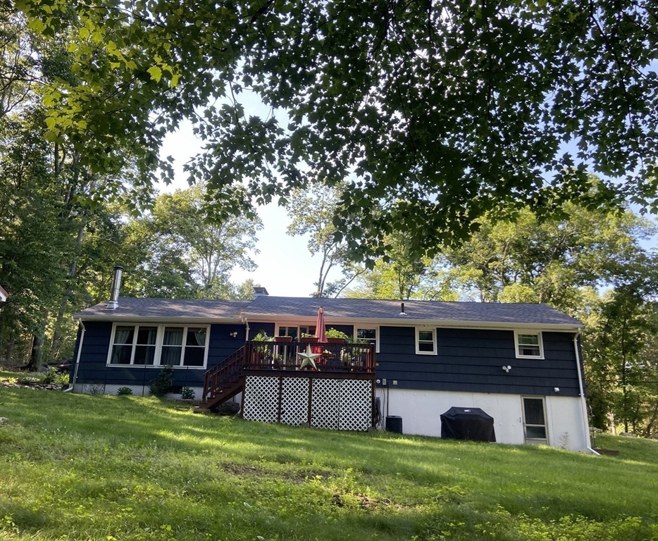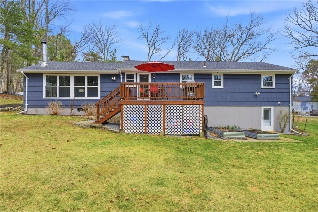 Turn-key home with a stunning custom gourmet kitchen featuring premium quartzite countertops, stainless steel appliances, drawer microwave, and center island with seating, open to a fireside dining room. The great room showcases a beamed vaulted ceiling, oversized windows, and slider leading to a patio overlooking 200 acres of serene conservation land. Updated baths with tiled flooring and new vanity in the first floor bathroom. Three bedrooms offer refinished hardwood floors and fresh interior paint. Walk-out lower level includes a spacious family room (currently used as a gym), office, and kitchenette, ideal for flexible living. Major updates include roof, windows, and doors (2016), furnace (2013), tankless water heater (2023), and new circular driveway (2025). Please see extensive list of home improvements on MLS paperclip. ~4 miles to Commuter Rail, award winning school system, and in immaculate pristine condition!
