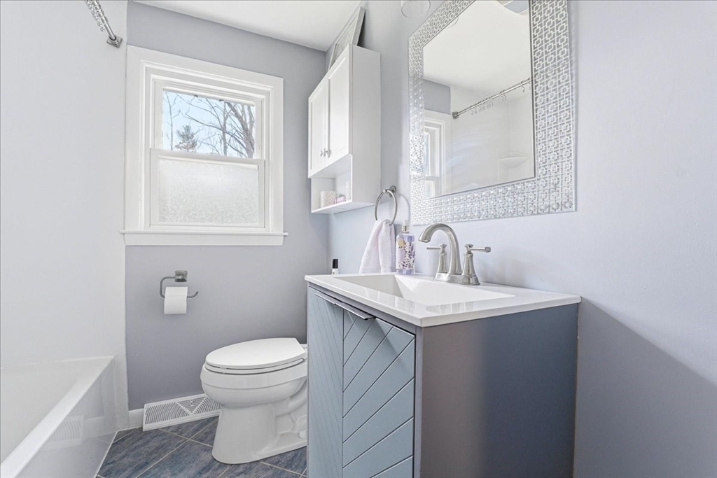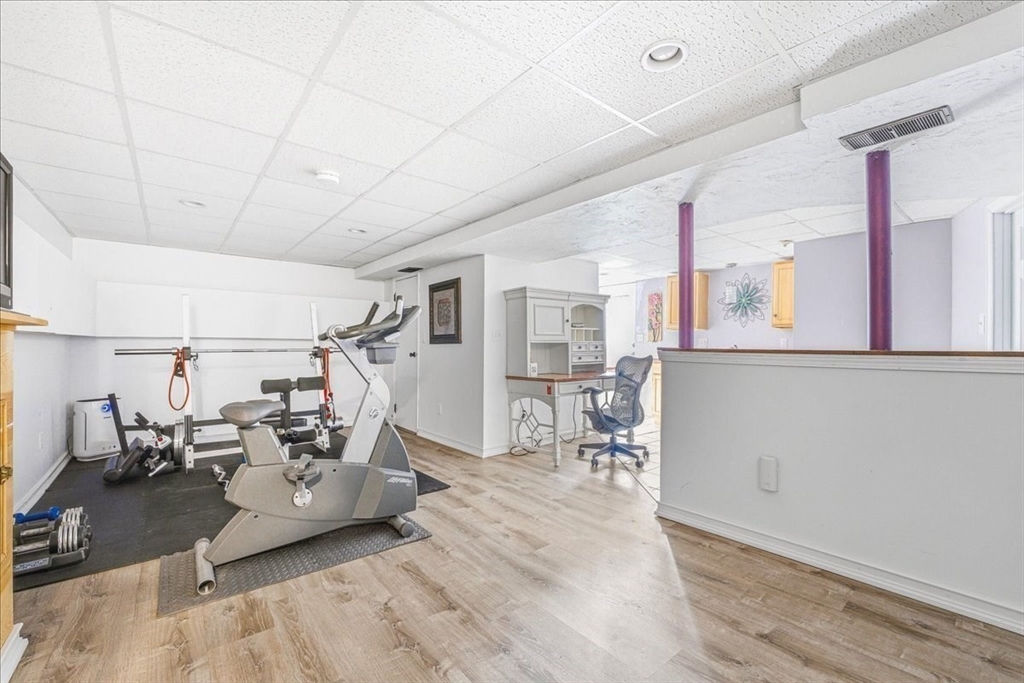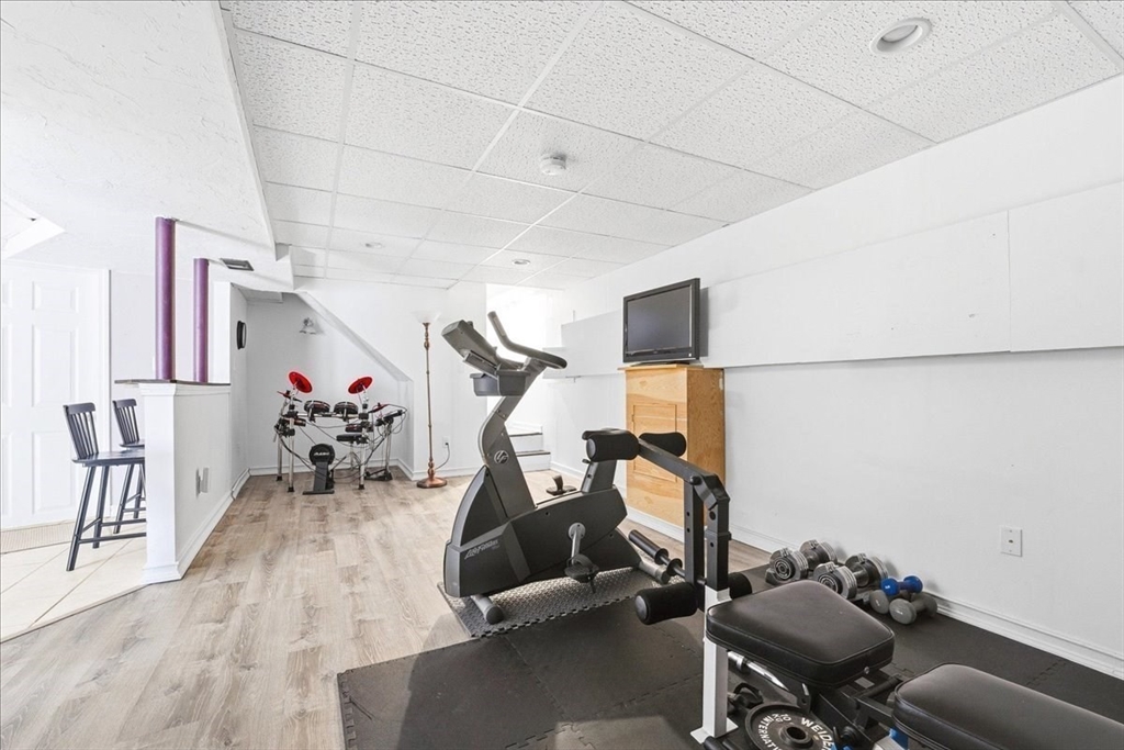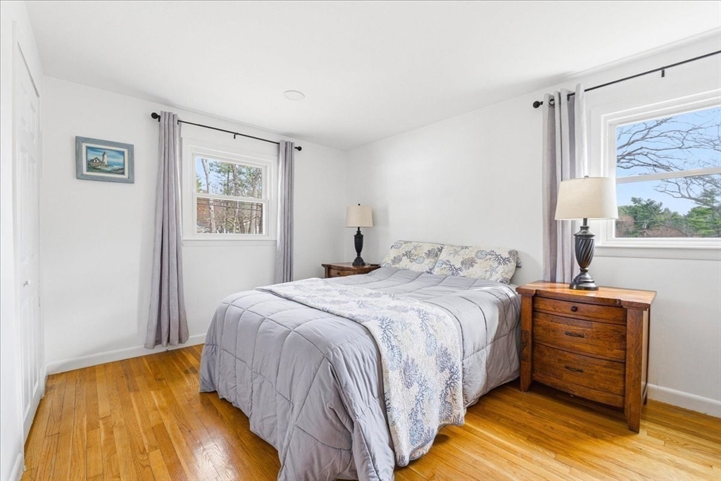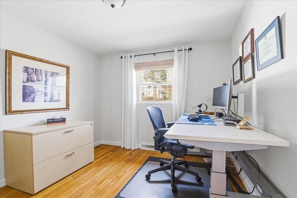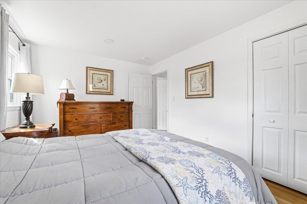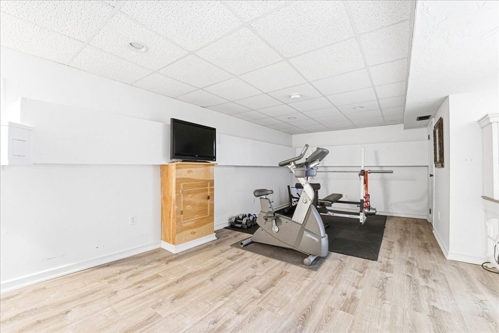 Turn-key home with a stunning custom gourmet kitchen featuring premium quartzite countertops, stainless steel appliances, drawer microwave, and center island with seating, open to a fireside dining room. The great room showcases a beamed vaulted ceiling, oversized windows, and slider leading to a patio overlooking 200 acres of serene conservation land. Updated baths with tiled flooring and new vanity in the first floor bathroom. Three bedrooms offer refinished hardwood floors and fresh interior paint. Walk-out lower level includes a spacious family room (currently used as a gym), office, and kitchenette, ideal for flexible living. Major updates include roof, windows, and doors (2016), furnace (2013), tankless water heater (2023), and new circular driveway (2025). Please see extensive list of home improvements on MLS paperclip. ~4 miles to Commuter Rail, award winning school system, and in immaculate pristine condition!