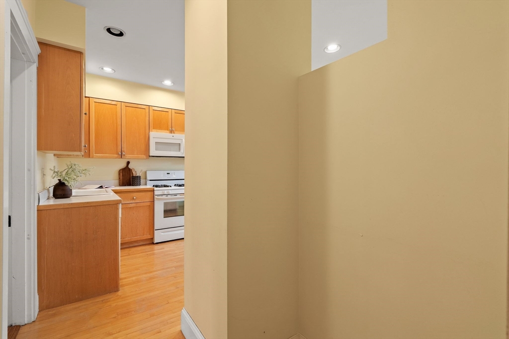 Bright and inviting 2-bedroom, 1-bath first-floor condo ideally located in East Watertown near vibrant restaurants, shops, Arsenal Yards, and the Watertown–Cambridge Greenway. This charming home features a sun-filled living room that flows into a dining room with a built-in hutch and gleaming hardwood floors, along with a spacious kitchen offering built-in shelving for added storage. High ceilings, beautiful woodwork, and elegant Hubbardton Forge lighting enhance the home’s timeless appeal. An enclosed, exclusive-use front porch provides versatile space, perfect as a mudroom or additional sitting area. Additional highlights include basement laundry, dedicated storage, and off-street parking. Convenient to Cambridge and Boston, this home offers a perfect blend of character, comfort, and location.