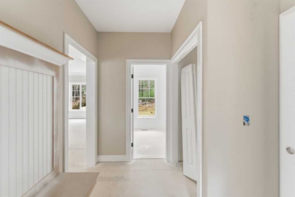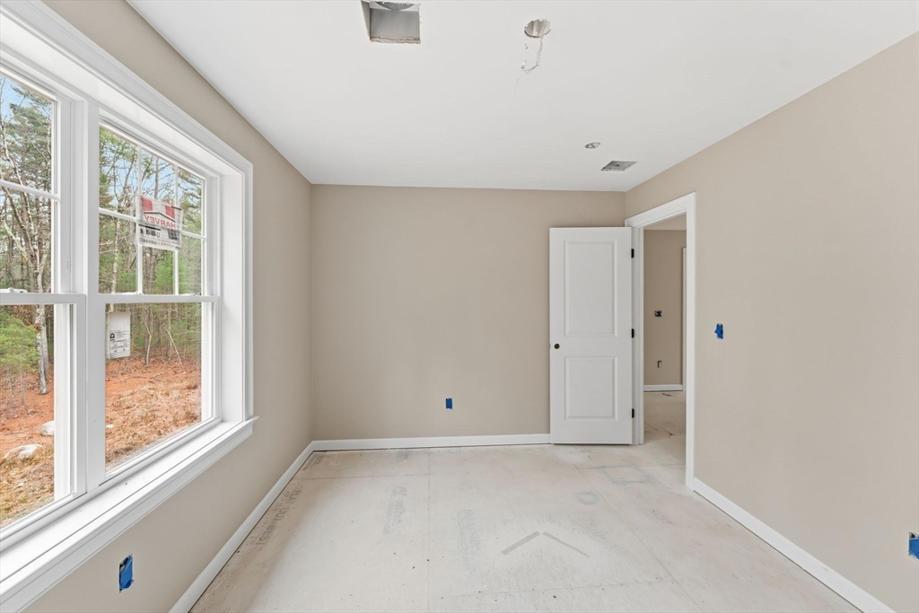 Welcome to your own private retreat! NEW CONSTRUCTION This stunning 4-bedroom Colonial set on just over 12 ACRES, set back from the road to offer unparalleled PRIVACY. Still time to MAKE IT YOUR OWN and pick out the final touches. The inviting farmers porch welcomes you inside, you’ll find 9’ ceilings, gorgeous hardwood floors, and detailed millwork. The bright kitchen, with its large island and breakfast nook, flows effortlessly into the expansive family room, which features a fireplace and elegant coffered ceilings. The primary suite is a comfortable haven with a windowed walk-in closet and a thoughtfully designed bath featuring dual vanities. Built with high-efficiency propane heat to exceed today’s energy standards, this home offers a perfect blend of elegance and tranquility. Plus, you’re just minutes from local hiking trails, Wallum Lake, and easy highway access for commuting to Boston, Providence, or Worcester.