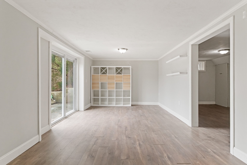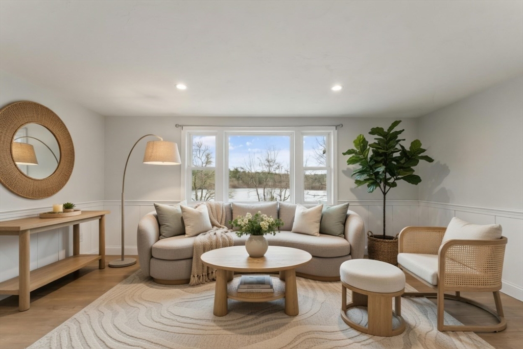 Welcome to your very own private waterfront home. Wake up every morning with beautiful overlooking views of Bartlett Pond. Ideally situated on the end of a cul-de-sac, this home is turn-key ready, with full renovations in 2019 including roof, windows, kitchen with granite countertops & kitchen island, bathroom, flooring, heating system & oil tank, and central air (2020). Brand new carpets (2026) were also just installed in all 3 spacious bedrooms. Expand your living space with over 500 SqFt of finished basement with exterior access to your backyard & firepit all overlooking the water. Do not miss out on this rare waterfront opportunity, book your private showing today to see it for yourself!