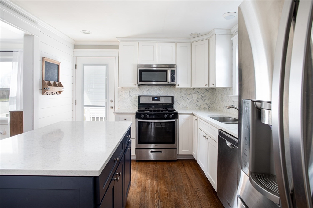 Welcome to the Highlands of Fall River! This charming 3-bedroom, 1.5-bath Dutch Colonial showcases a beautifully updated kitchen featuring sleek white cabinetry, stainless steel appliances, a center island, and quartz countertops, seamlessly connecting to the adjoining dining room. The fireplaced living room offers a warm yet refined setting and flows effortlessly to a spacious composite deck—perfect for outdoor entertaining. Mini splits offer cooling in the summer and alternate heating in the winter. Rich hardwood flooring extends throughout, enhancing the home’s timeless character and charm. The second level features three well-proportioned bedrooms, offering comfort and privacy. The private, fenced-in yard provides an ideal setting for relaxation, recreation, or outdoor entertaining featuring a cabana and spacious shed for storage.